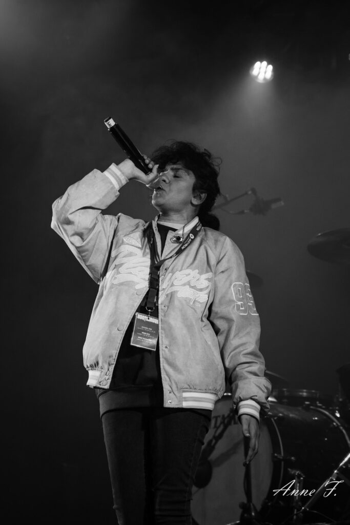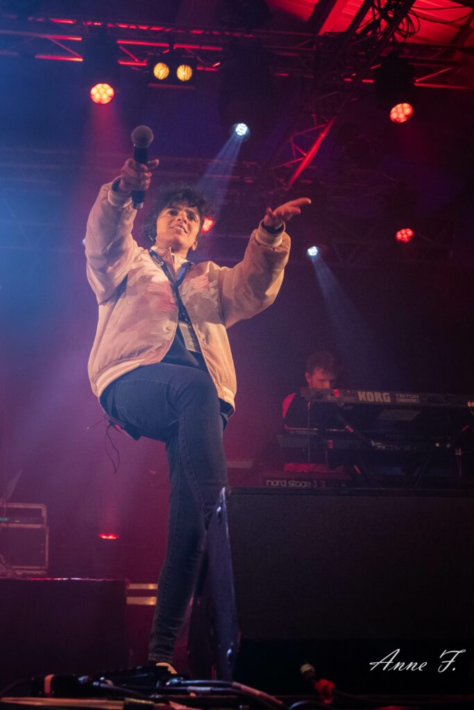 En cette fin d’après-midi, la salle est peu remplie, sans doute les festivaliers sont en train de se remettre de la nuit précédente et vont rater l’excellent set de Mama Said entre Rock Alternatif et Hip-Hop métissé de Blues et de Jazz.