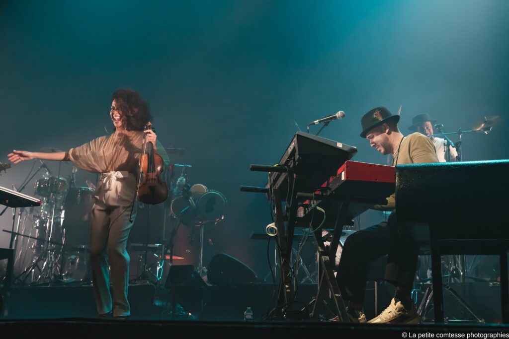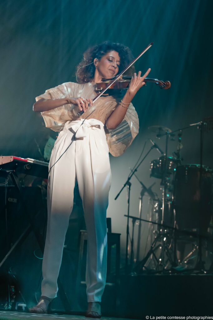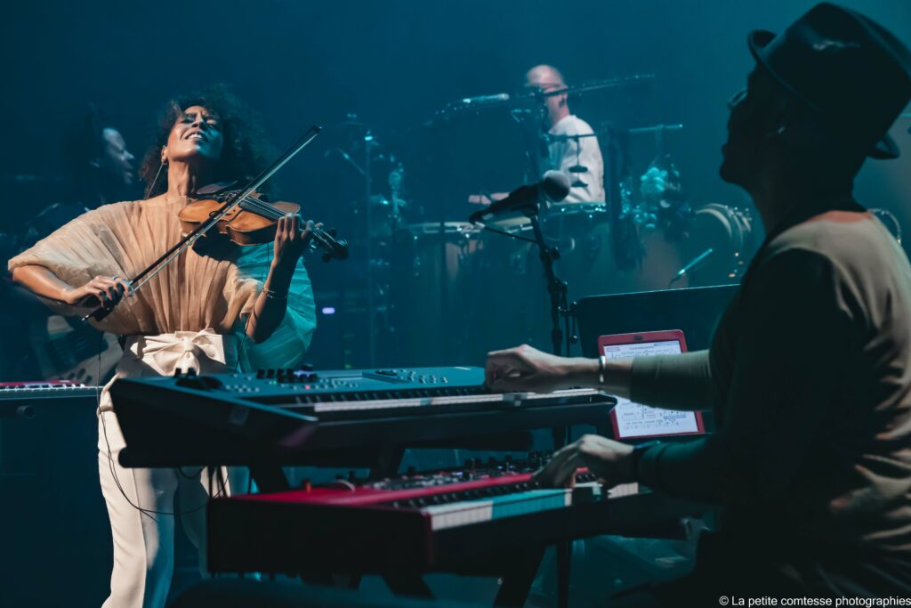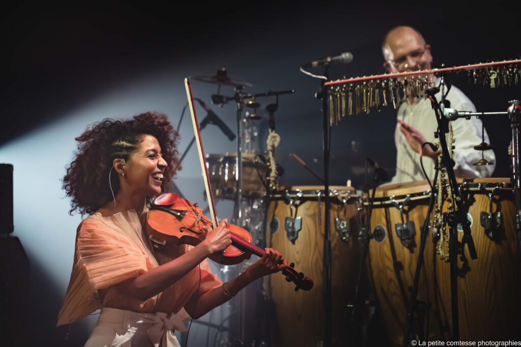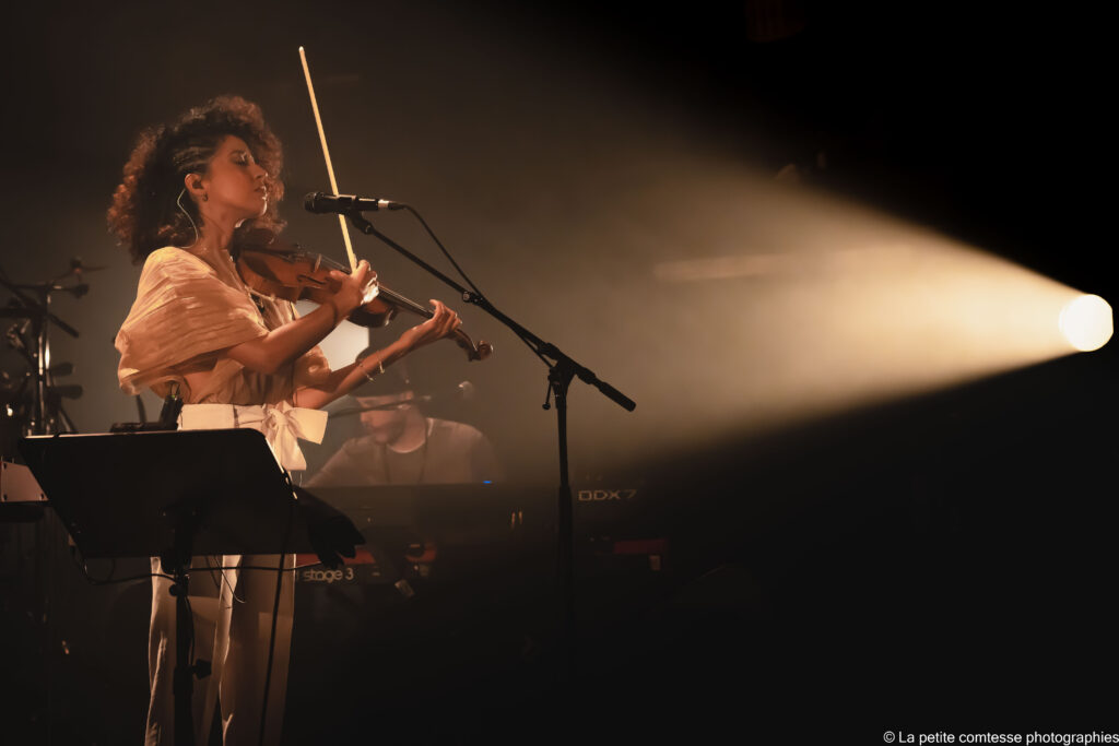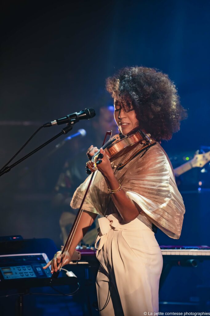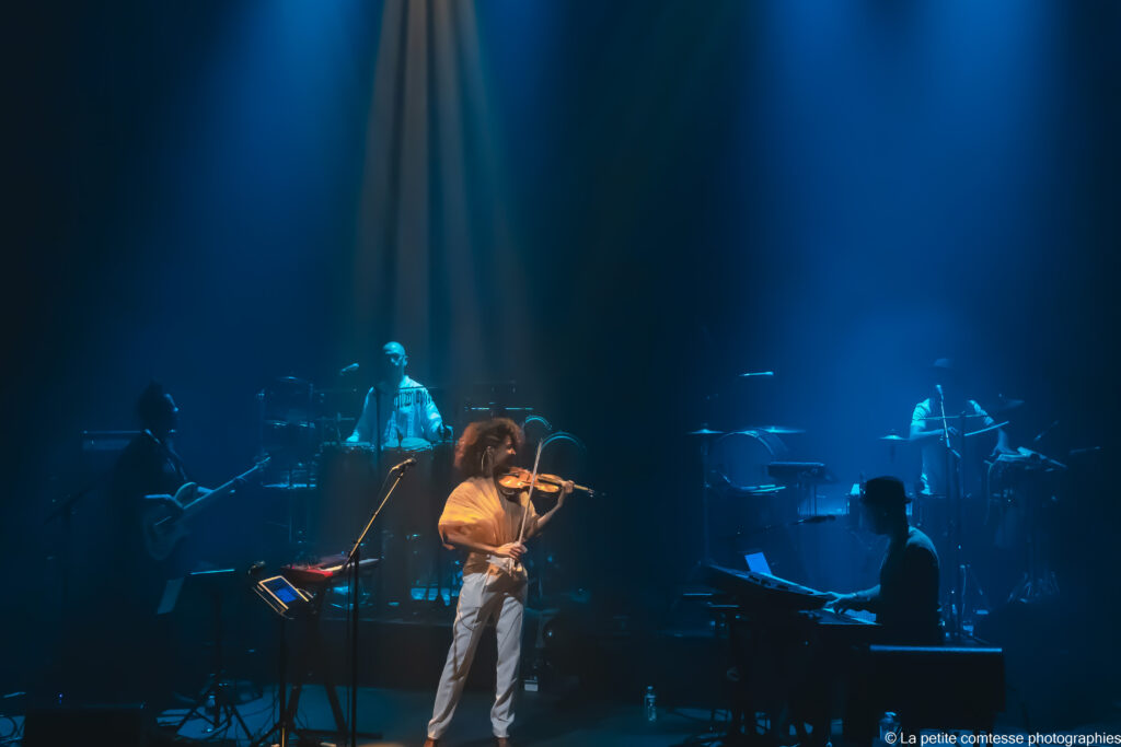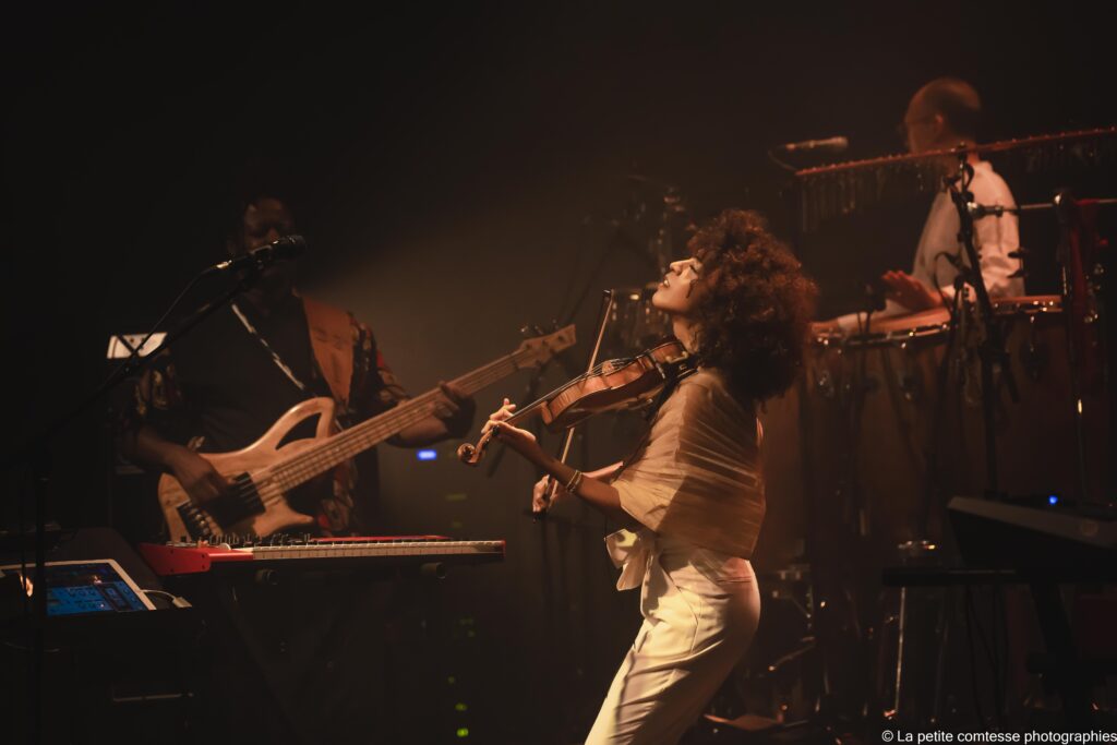 C’est accompagnée de son violon et de 4 musiciens qu’Yilian Cañizares fait son entrée en scène : Childo Tomas à la basse, Inor Sotolongo aux percussions, Yasser « El Gozo » aux claviers et Japa System aux percussions et beatmaker.