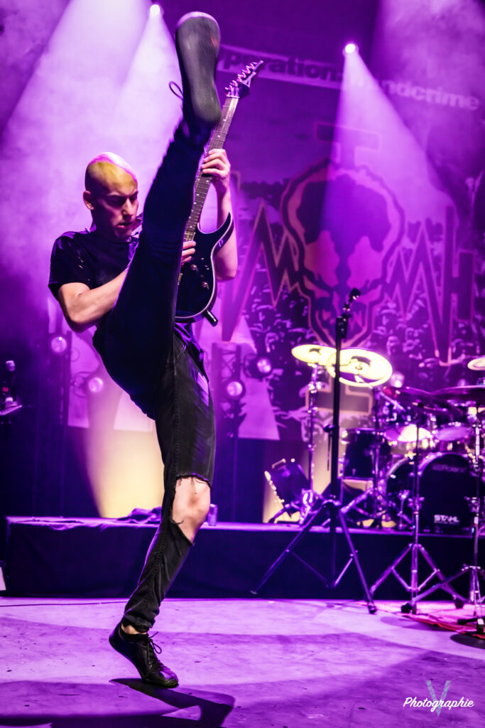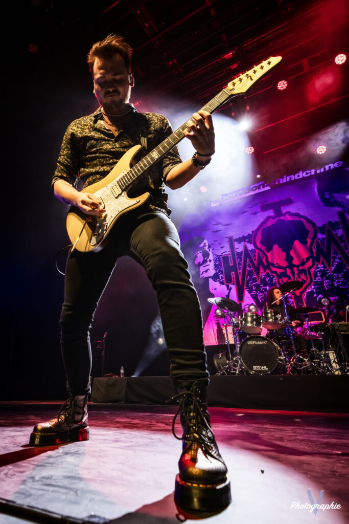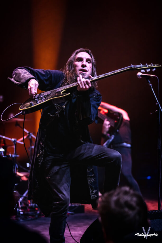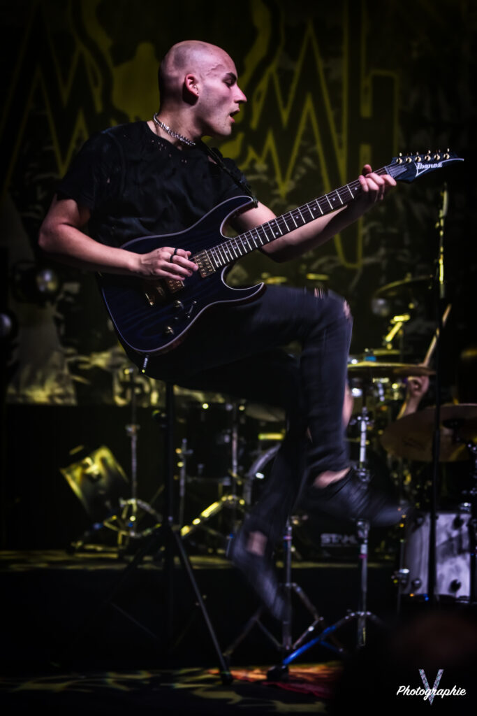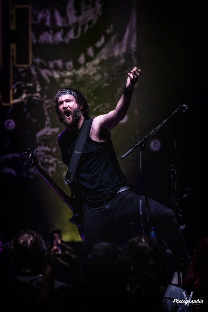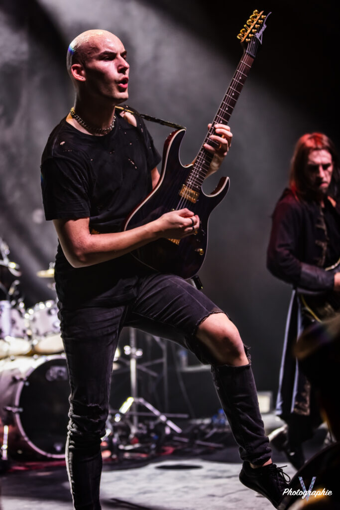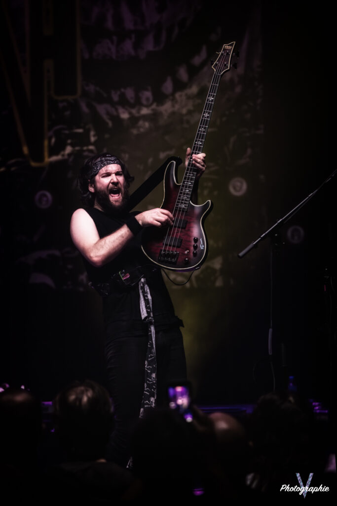 Mais ce sont les australiens de Darker Half qui vont ouvrir la soirée devant une salle déjà presque pleine. Le groupe joue un Heavy Metal technique et plutôt rapide. Sur scène c’est l’éclate, tout sourire, on a un guitariste danseuse étoile aux nombreux levés de jambe et sauts de cabri, au centre, un pirate qui chante derrière sa guitare, de l’autre côté, un bassiste qui ressemble à l’humoriste Xavier de Benoit en plus grand et au fond, un batteur qui paraît presque normal, ce qui comparativement au reste du groupe ne l’est pas. La salle apprécie le set qui n’a rien d’original mais qui a le mérite d’être de qualité. Comme c’est la dernière date de la tournée pour eux, le groupe à droit à un petit bizutage dans les formes à l’aide de tarte à la crème (sûrement de la mousse à rasé en fait) et le scotch pour ligoter le chanteur. Tout ça se termine dans la bonne humeur, on saluera l’exploit de continuer à jouer parfaitement bien malgré la tronche pleine de mousse.
