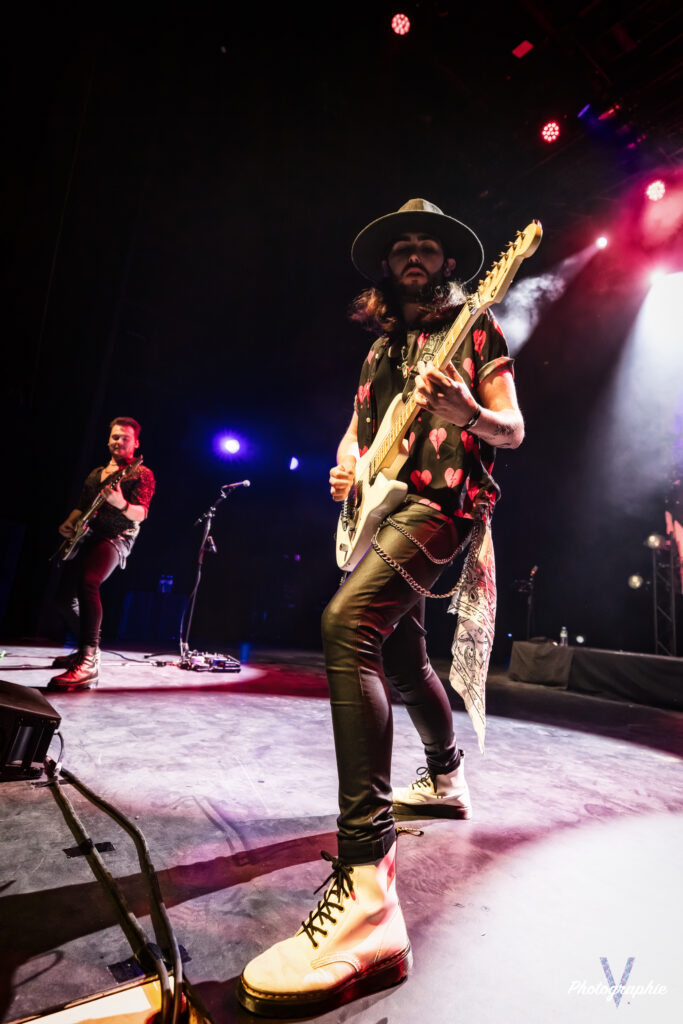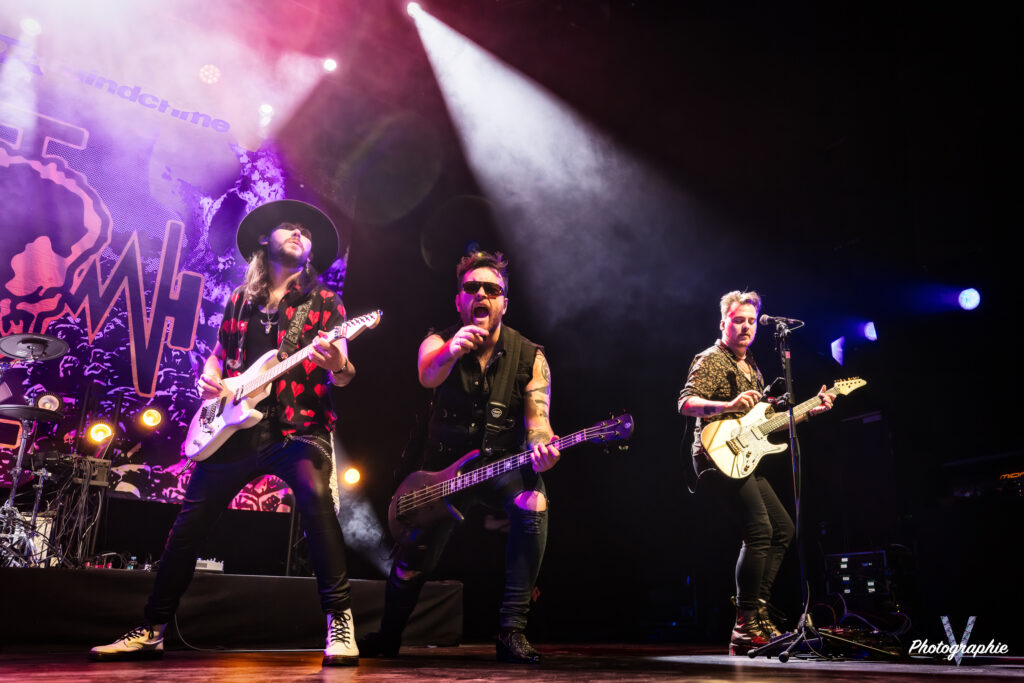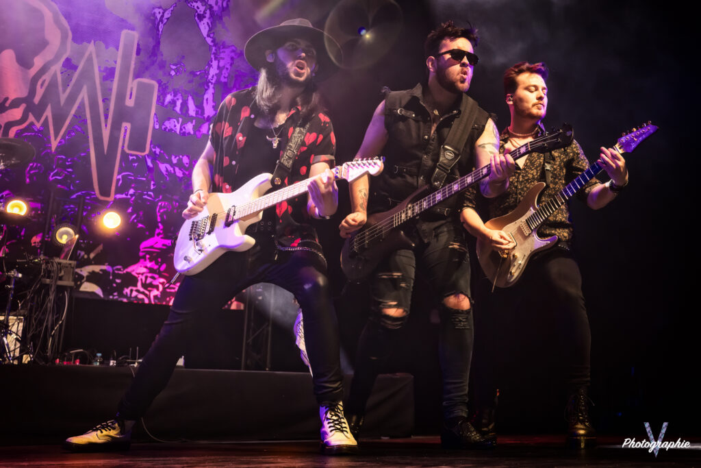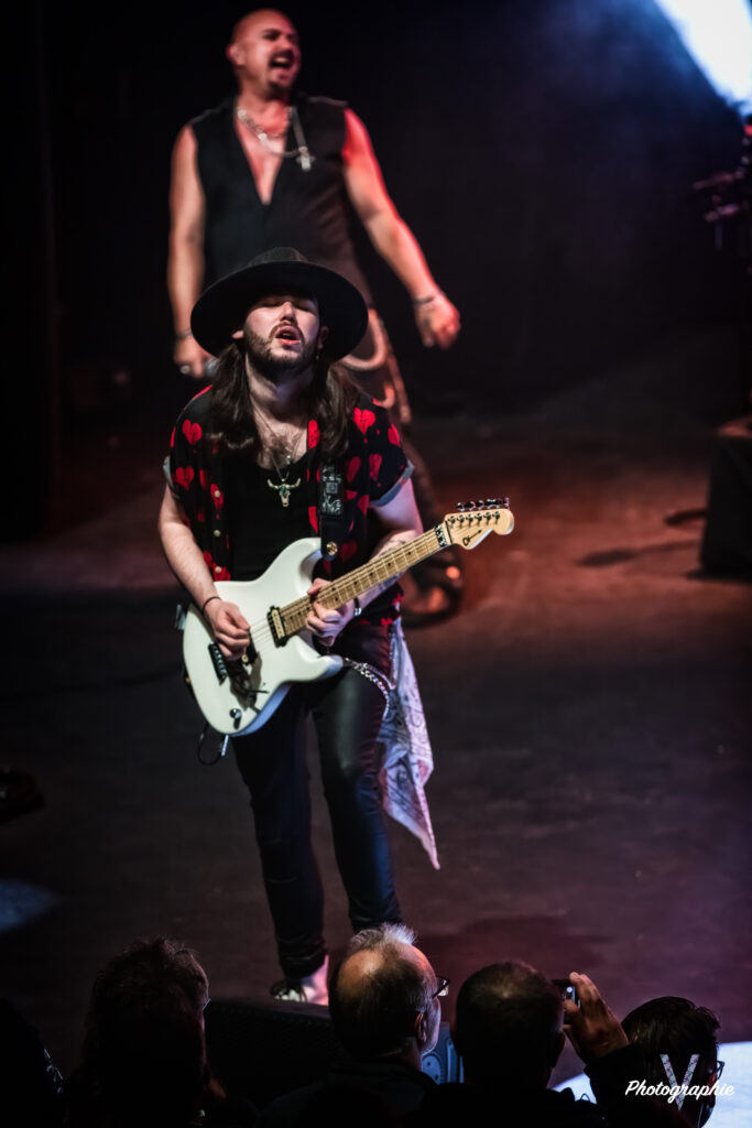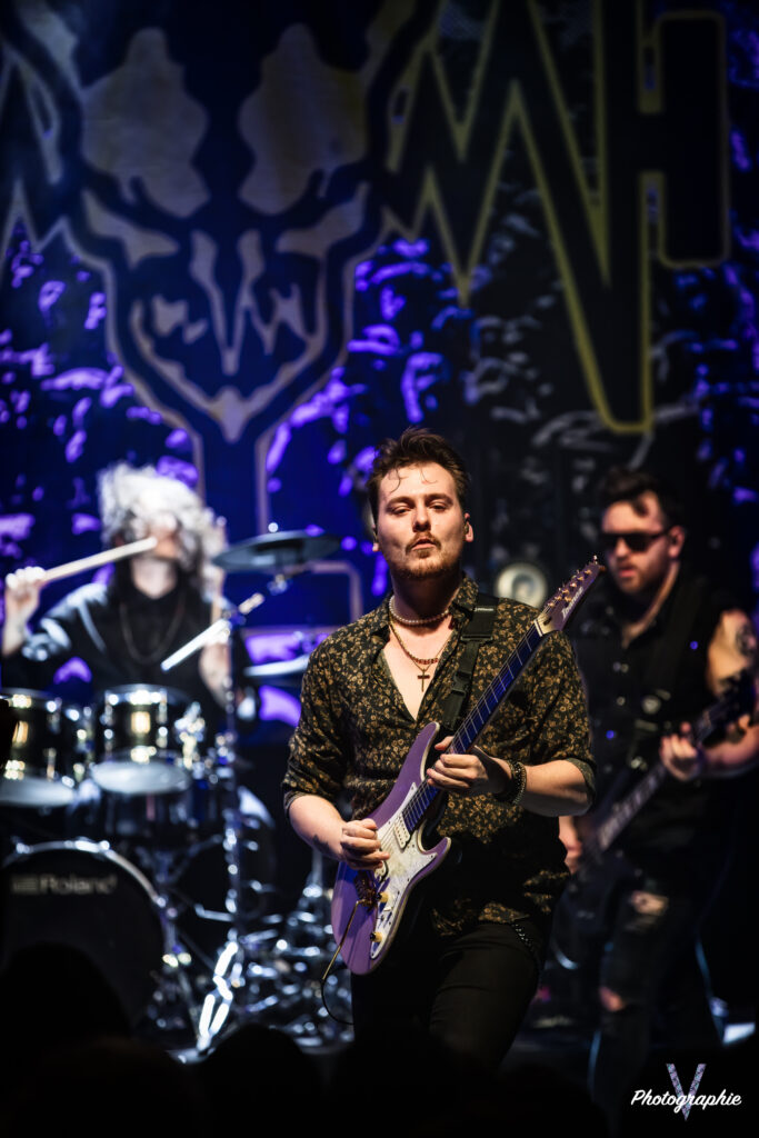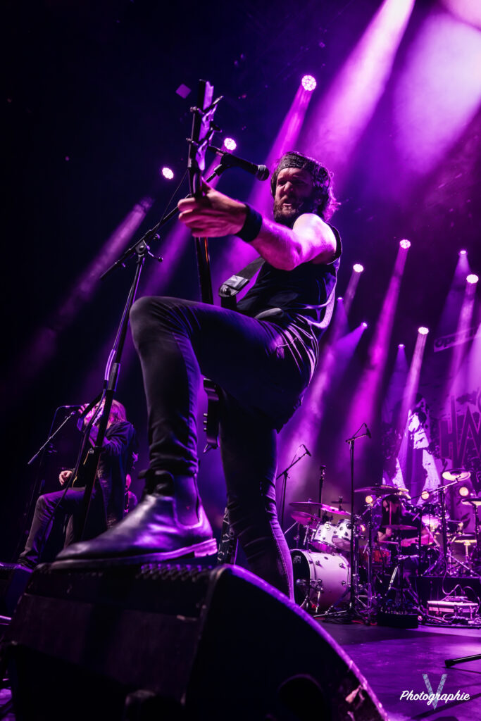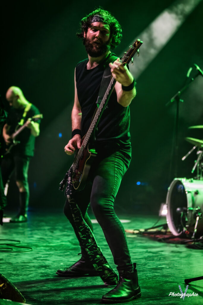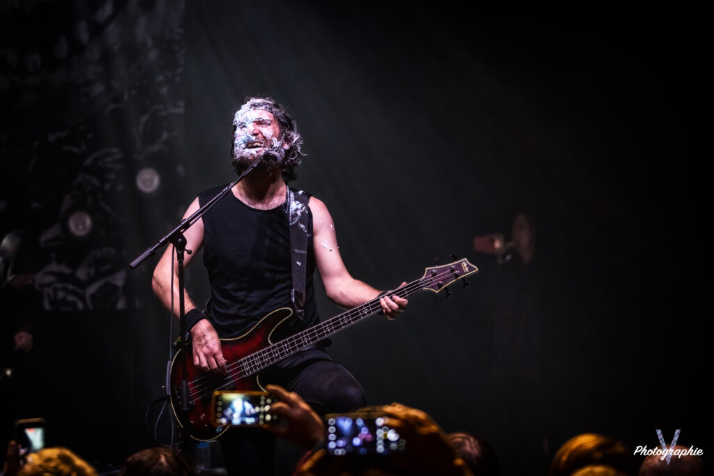 Mais ce sont les australiens de Darker Half qui vont ouvrir la soirée devant une salle déjà presque pleine. Le groupe joue un Heavy Metal technique et plutôt rapide. Sur scène c’est l’éclate, tout sourire, on a un guitariste danseuse étoile aux nombreux levés de jambe et sauts de cabri, au centre, un pirate qui chante derrière sa guitare, de l’autre côté, un bassiste qui ressemble à l’humoriste Xavier de Benoit en plus grand et au fond, un batteur qui paraît presque normal, ce qui comparativement au reste du groupe ne l’est pas. La salle apprécie le set qui n’a rien d’original mais qui a le mérite d’être de qualité. Comme c’est la dernière date de la tournée pour eux, le groupe à droit à un petit bizutage dans les formes à l’aide de tarte à la crème (sûrement de la mousse à rasé en fait) et le scotch pour ligoter le chanteur. Tout ça se termine dans la bonne humeur, on saluera l’exploit de continuer à jouer parfaitement bien malgré la tronche pleine de mousse.