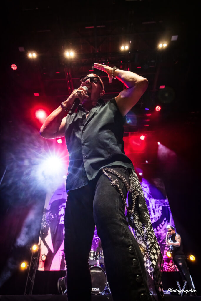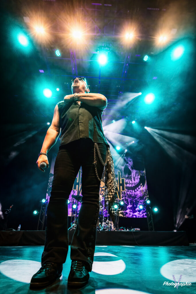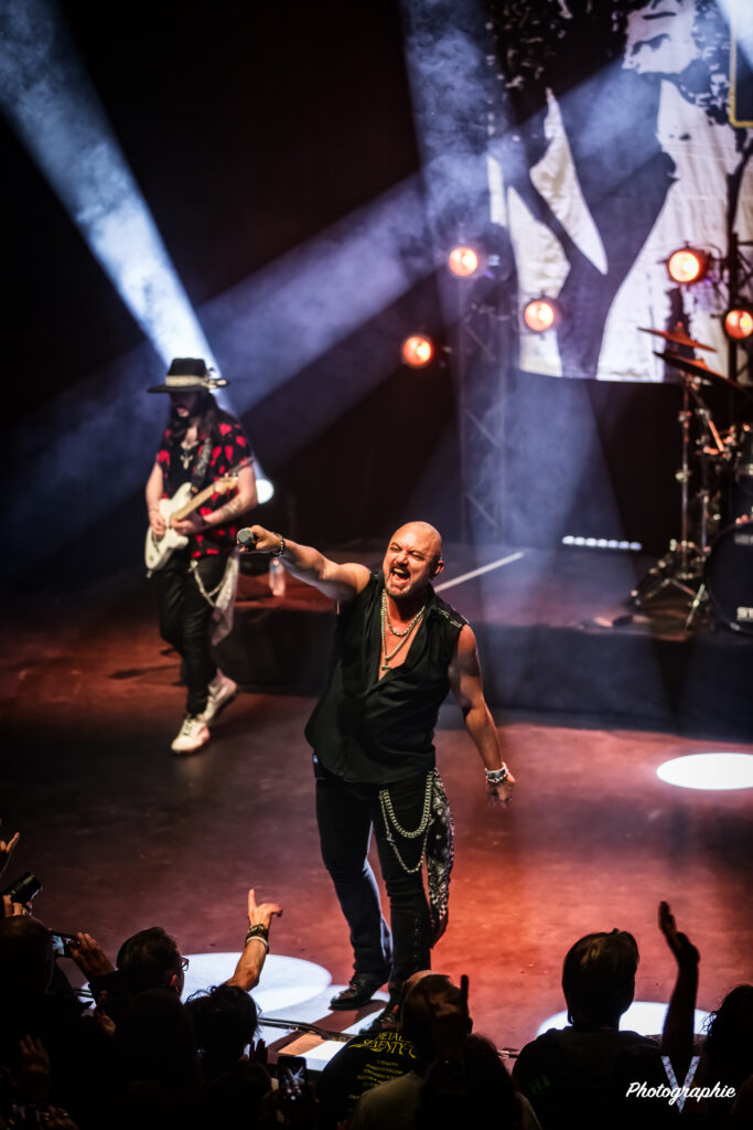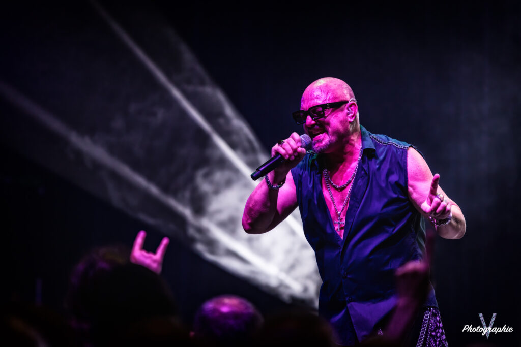 64 ans ! C’est l’âge de Geoff Tate. Et quand on le voit et qu’on l’écoute chanter, on a peine à imaginer son âge vu la performance du monsieur ce soir. Comme il s’agit d’une tournée anniversaire de l’album, le groupe va jouer tout l’album Operation: Mindcrime. Ce soir, Geoff est entouré de jeunes musiciens, deux guitaristes très doués qui ressemblent plus à des musiciens de studios capables de tout jouer qui se seraient déguisés en rockeur, un bassiste qui lui pour le coup a tout du métalleux jusque dans les pauses et un batteur qui a la particularité de jouer sur une batterie électronique. Du coup tout ça sonne très bien, mais c’est très propre, voir lisse… A aucun moment on sent que ça transpire le Rock. Pour jouer le rôle de Sister Marie auparavant assuré par Pamela Moore, c’est la fille du chanteur qui s’y colle. Avec Tate, la famille n’est jamais très loin… La prestation de la jeune fille est tout à fait honorable, mais les plus exigeants regretteront sûrement Pamela.