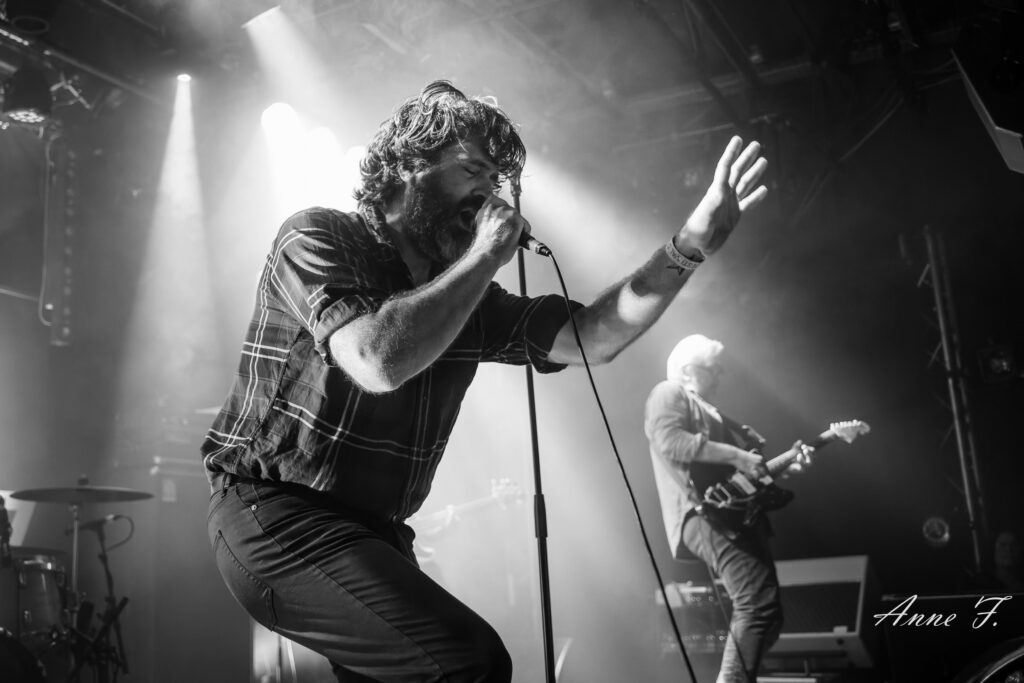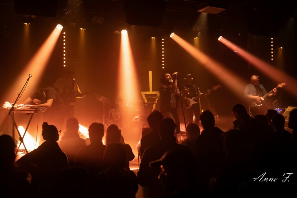 La salle s’est malheureusement un peu vidée car il est temps pour certains de reprendre les transports en commun mais les six musiciens d’Animal Triste vont nous proposer un superbe set Rock, intense et habité, émouvant car c’est la dernière date de tournée Night of the loving dead. Mais au final, ls nous annonceront avoir presque fini d’écrire leur prochain album. Nous les retrouverons donc bientôt pour notre plus grand plaisir.