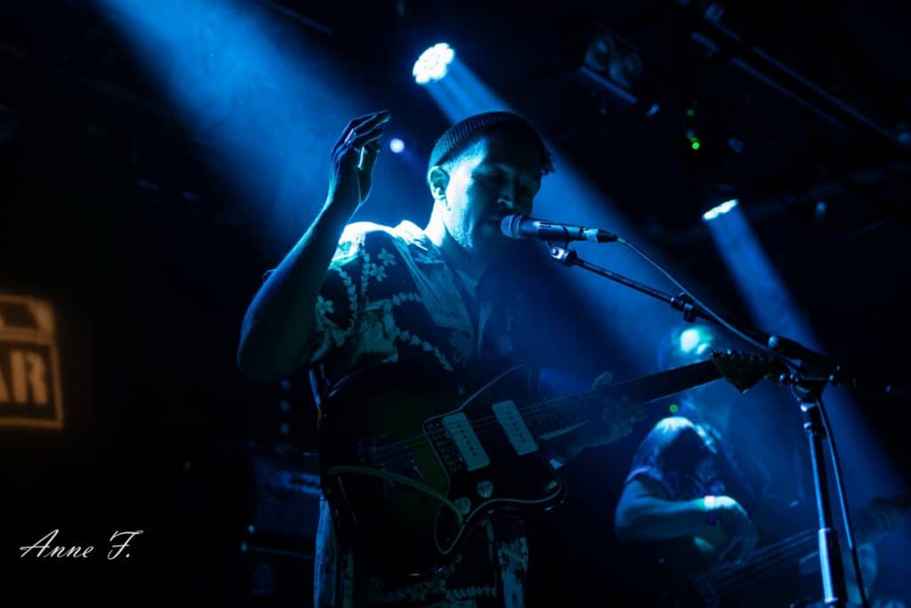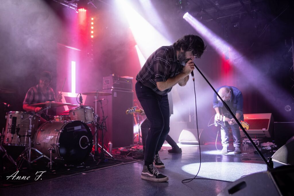 Cette soirée démarre dans la salle du Hangar avec Palatine et leur poésie Rock . Avec une scène quasi tout le temps en contre-jour, ils installent une ambiance planante, envoûtante et mélancolique, plus rythmée dans un deuxième temps, qui embarquera le public dans leur voyage.