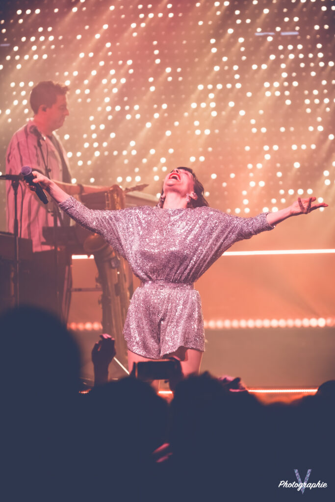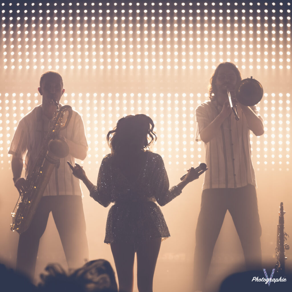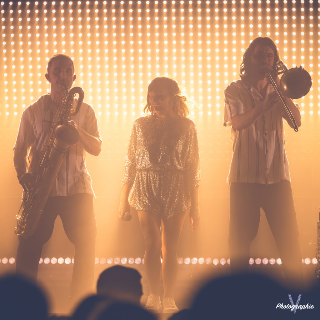 Sur scène, les cuivres font le show, c’est réglé au millimètre, chacun est à sa place au bon moment. La chanteuse change de tenue pendant un passage instrumental et ça repart de plus belle.