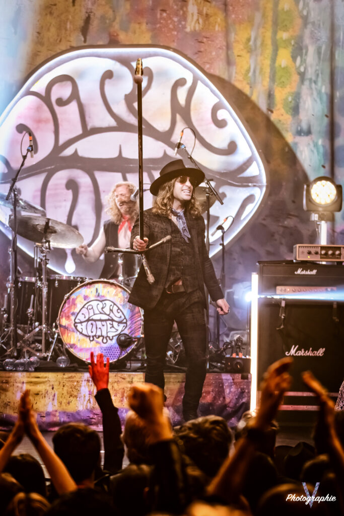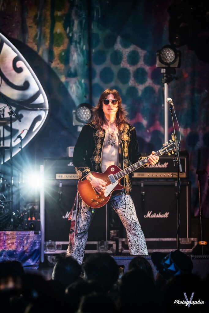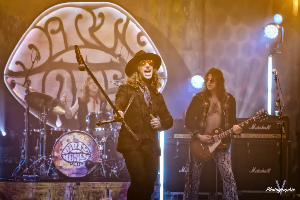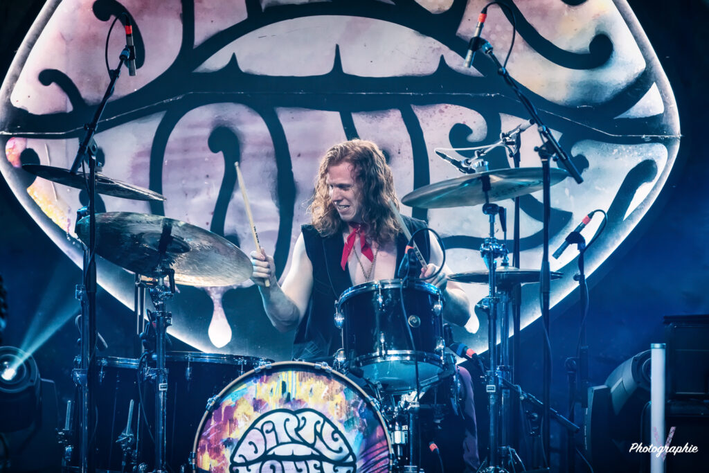 Après cet amuse-bouche de luxe, le plat de résistance débarque sur scène et c’est comme on se l’était imaginé ! Dirty Honey nous replonge dans le temps où le Hard Rock se jouait à quatre avec un chanteur charismatique à la voix haute et un guitare héro ténébreux qui balance ses solos d’un air nonchalant sans jamais en mettre une à côté (sur ce dernier point on est plutôt dans le présent en fait, parce qu’à l’époque le jeu en live était quand même nettement plus approximatif). Forcément on pense à Led Zeppelin mais c’est un peu comme une version realoded de ce dernier. Les compositions dont on vous parlait dans notre chronique font mouche en live. Le groupe n’a pas besoin d’en faire des tonnes, tout le monde dégage une présence naturelle. La section rythmique nous régale de son groove ronflant pour le plus grand bonheur d’une Machine bien pleine. Le public en redemande, il fait chaud mais tout le monde s’en cogne. Alors oui, si un jeune passait dans le coin il penserait qu’on assiste à une messe nostalgique pour boomers. Mais putain, quel pied! Dirty Honey confirme son hégémonie sur ce revival musical, il vient se placer à droite de Greta Van Fleet et s’il continue sur sa lancée il pourrait bien leur voler la vedette. En tout cas, niveau guitare, les guitaristes respectifs des deux formations ne jouent tellement pas dans la même cour qu’on se demande s’ils pratiquent le même sport. Chez les Dirty, les deux mains sont toujours synchronisées, l’air de rien ça compte.