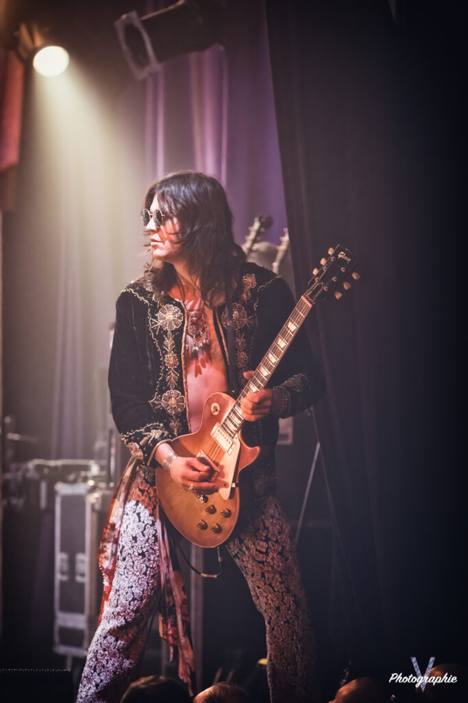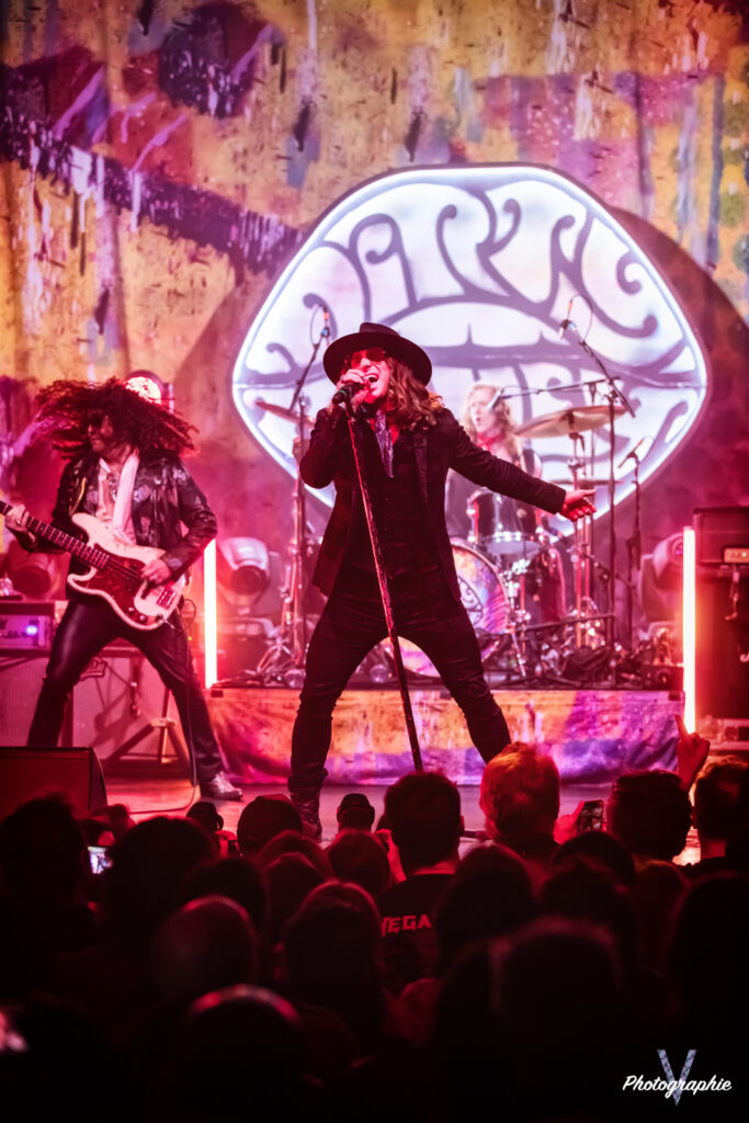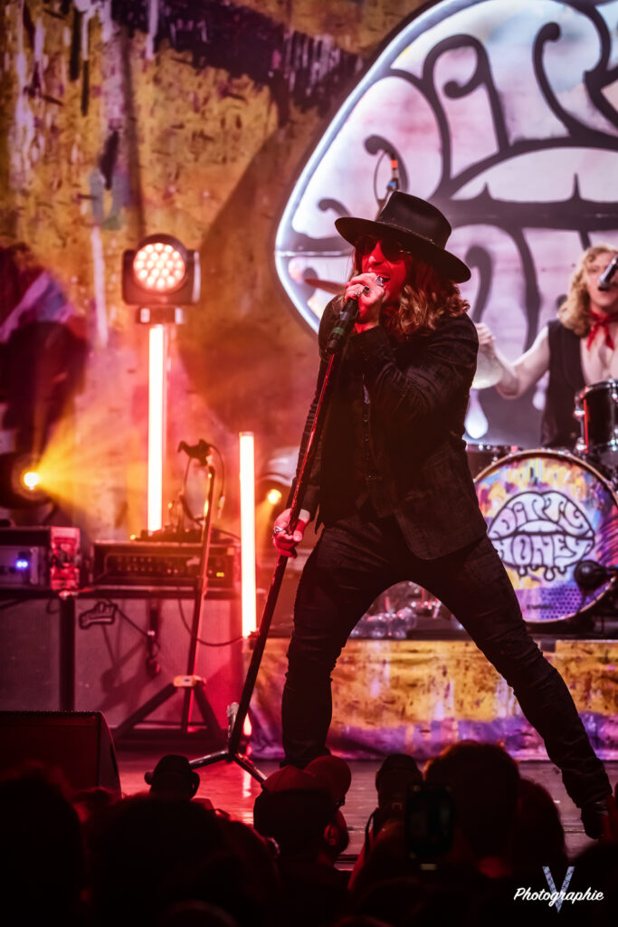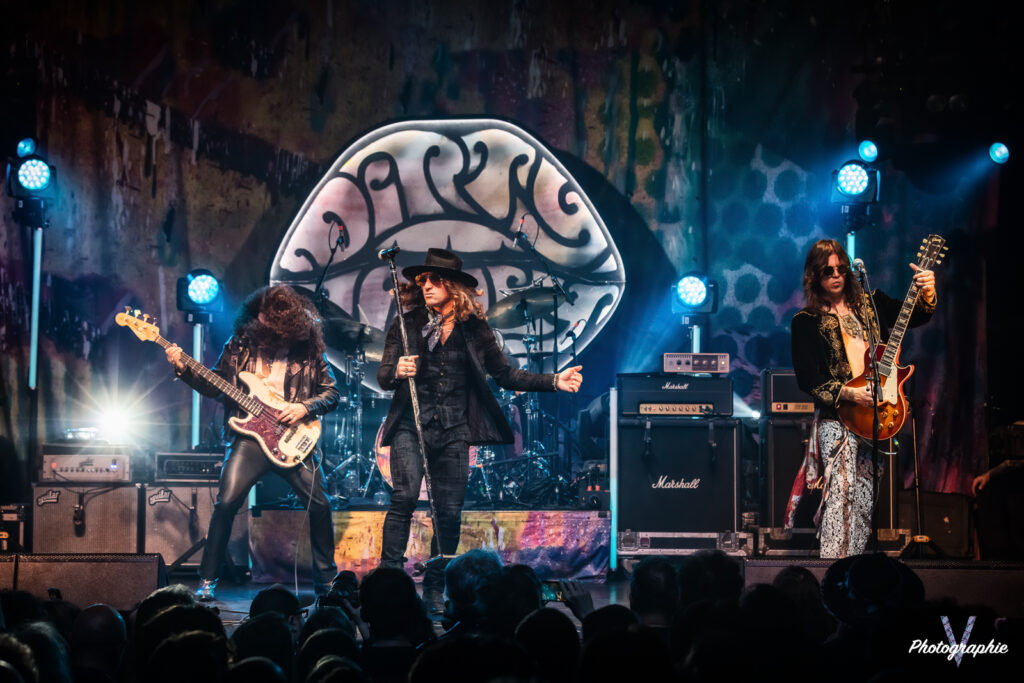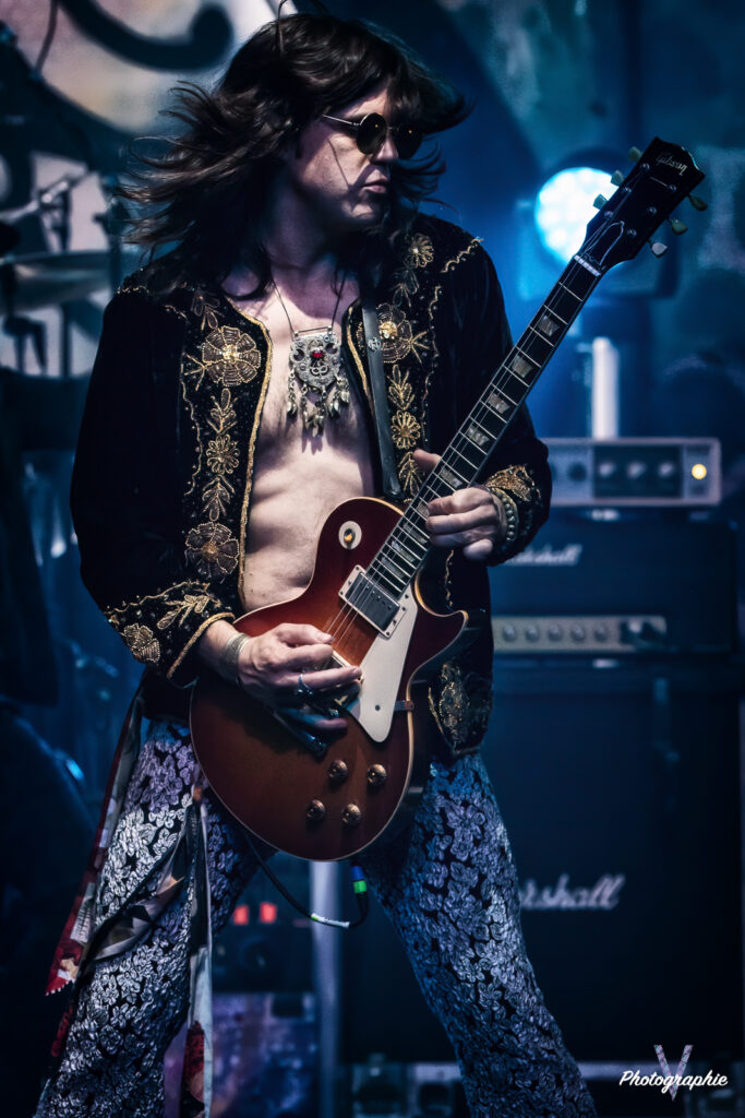 Après cet amuse-bouche de luxe, le plat de résistance débarque sur scène et c’est comme on se l’était imaginé ! Dirty Honey nous replonge dans le temps où le Hard Rock se jouait à quatre avec un chanteur charismatique à la voix haute et un guitare héro ténébreux qui balance ses solos d’un air nonchalant sans jamais en mettre une à côté (sur ce dernier point on est plutôt dans le présent en fait, parce qu’à l’époque le jeu en live était quand même nettement plus approximatif). Forcément on pense à Led Zeppelin mais c’est un peu comme une version realoded de ce dernier. Les compositions dont on vous parlait dans notre chronique font mouche en live. Le groupe n’a pas besoin d’en faire des tonnes, tout le monde dégage une présence naturelle. La section rythmique nous régale de son groove ronflant pour le plus grand bonheur d’une Machine bien pleine. Le public en redemande, il fait chaud mais tout le monde s’en cogne. Alors oui, si un jeune passait dans le coin il penserait qu’on assiste à une messe nostalgique pour boomers. Mais putain, quel pied! Dirty Honey confirme son hégémonie sur ce revival musical, il vient se placer à droite de Greta Van Fleet et s’il continue sur sa lancée il pourrait bien leur voler la vedette. En tout cas, niveau guitare, les guitaristes respectifs des deux formations ne jouent tellement pas dans la même cour qu’on se demande s’ils pratiquent le même sport. Chez les Dirty, les deux mains sont toujours synchronisées, l’air de rien ça compte.