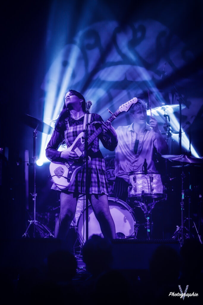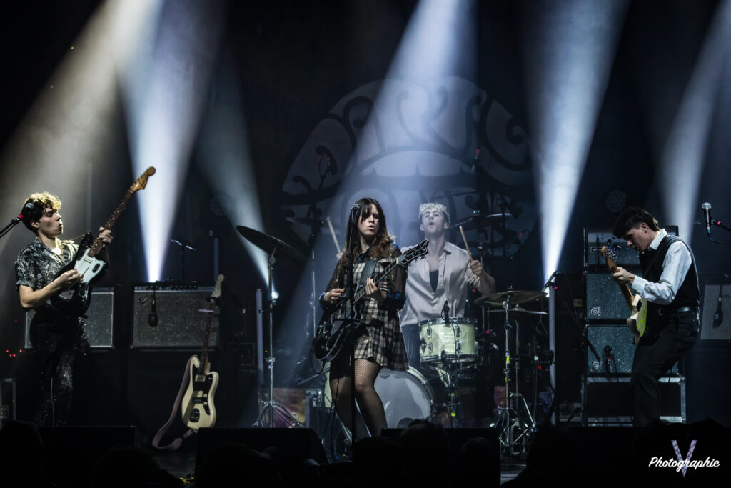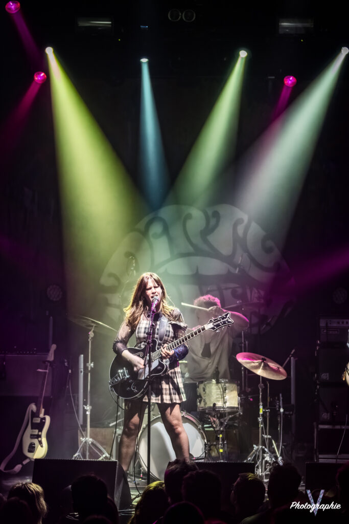 Autour de nous personne ne l’a vu venir lorsque Send Me Love Letters est monté sur scène, mais après un ou deux titres, le groupe français qu’on a d’abord cru anglais jusqu’à ce que la chanteuse parle au public, avait toute notre attention. Avec son Rock Garage typiquement UK, la chanteuse et sa bande nous ont fait une démonstration de savoir-faire assez bluffant. Derrière sa guitare avec un faux air d’enfant sage, la fille de la bande balance son texte avec une voix entre Aretha et Janis Joplin. Sur scène, le groupe est totalement charismatique avec des attitudes très étudiées. Chaque titre installe des ambiances différentes avec parfois un peu de Punk, de la Soul ou ce bon Rock UK. C’est pro, super efficace et on ne voit pas le temps passer. Assurément la bonne surprise de la soirée qu’on n’attendait pas.