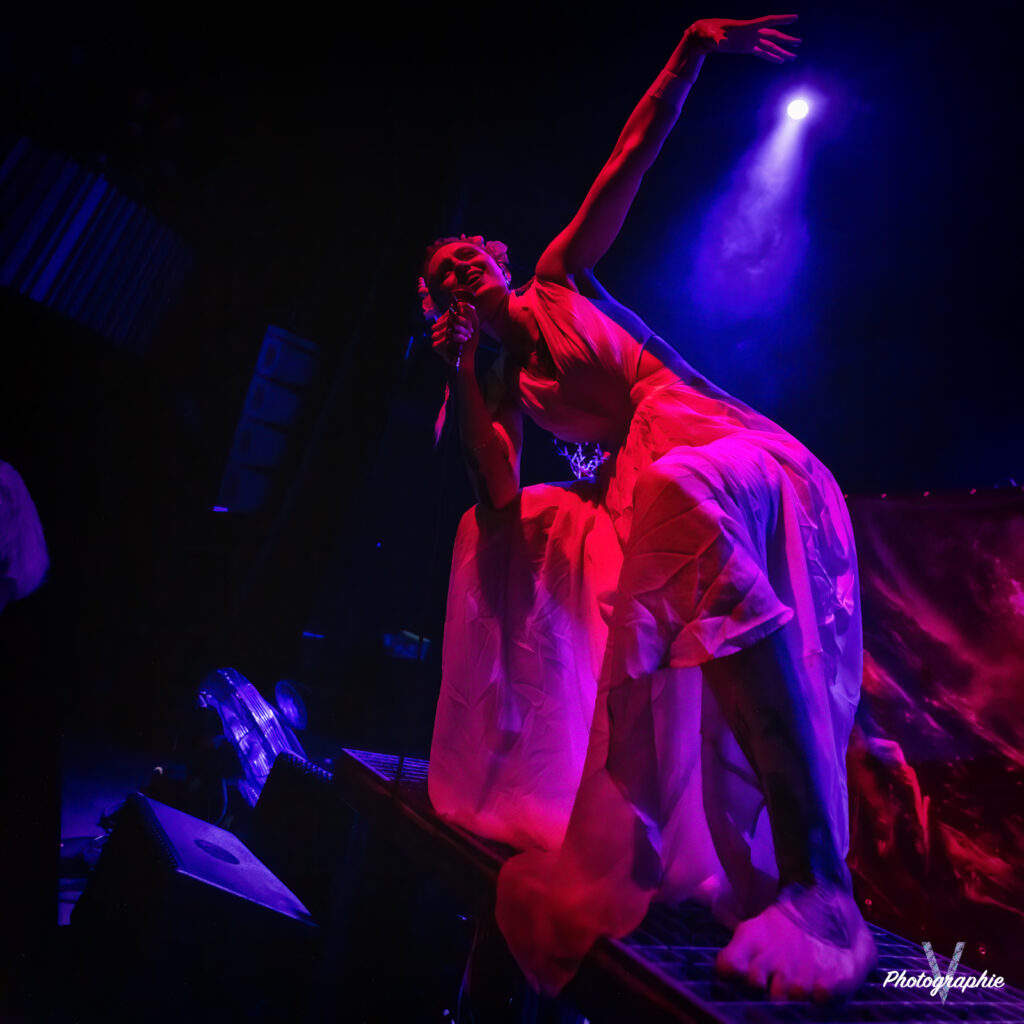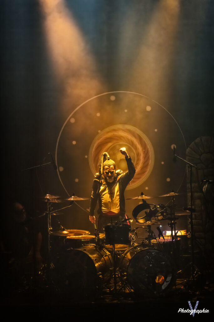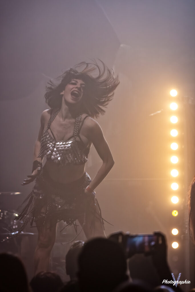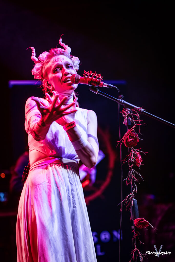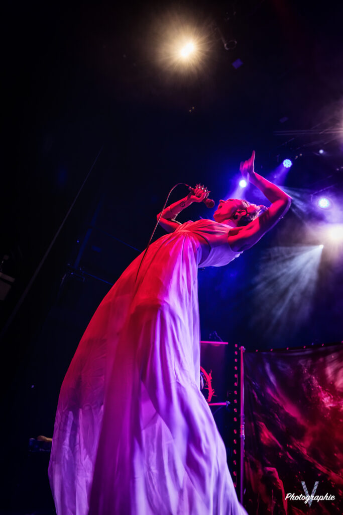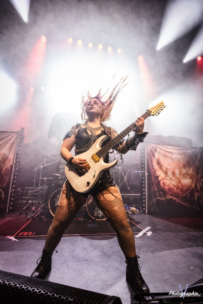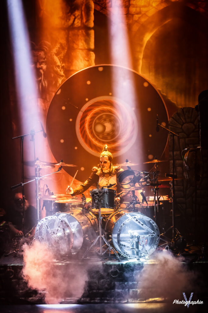 Pour Crimson Veil cette tournée c’est un peu une première expérience puisqu’on apprend que le groupe joue aujourd’hui son troisième concert depuis sa création. Et quelque part ça nous rassure un peu car même si on sent une grosse implication de la chanteuse du quatuor tout n’est pas encore vraiment au point. On ne jugera pas des compositions ce soir mais de la manière de les mettre en scène. On sent encore un groupe fragile avec une batteuse qui s’applique tellement qu’on perçoit comme une retenue dans sa manière de jouer. D’un côté de la scène, nous avons une violoncelliste qui joue dans son coin et semble un peu s’ennuyer. Même si le style musical n’a rien de festif, un peu plus d’engagement serait bienvenu. De l’autre côté de la scène on a un guitariste encapuchonné avec une guitare de shredder qui a gardé ses lunettes. On dirait presque qu’il s’est trompé de groupe. Pourtant sur les photos officielles, il a un maquillage et pas de lunettes. Problème de timing dans les loges ? Flemme ? Dans un groupe où tout le monde est looké et où cet aspect semble primordial c’est dommage de jouer les vilains petits canards en ne jouant pas le jeu.