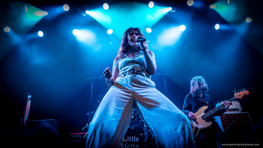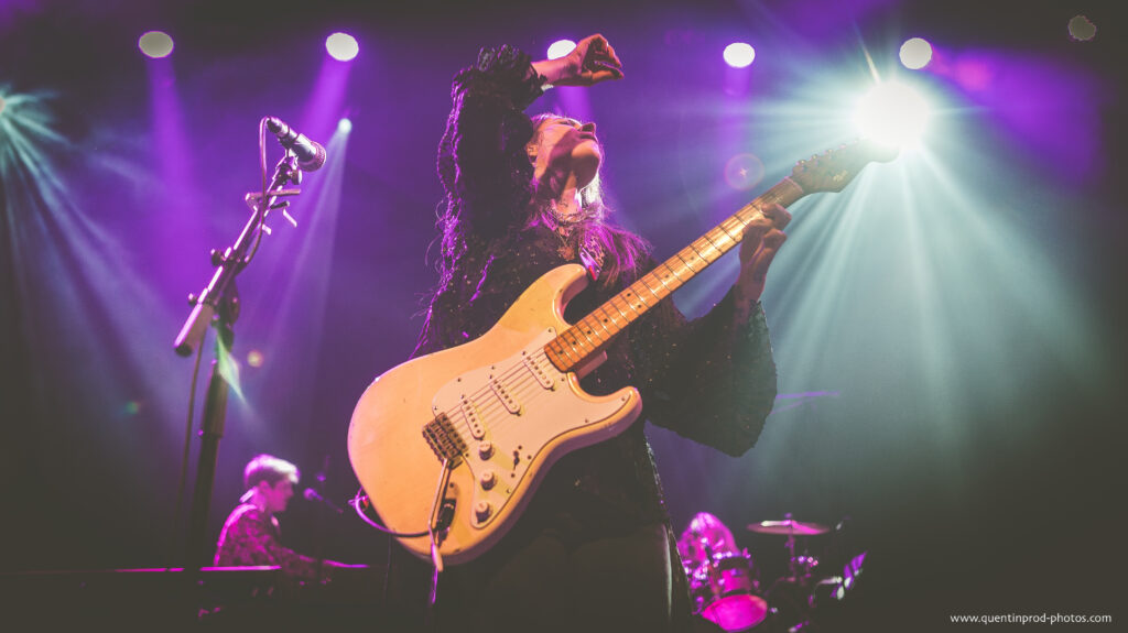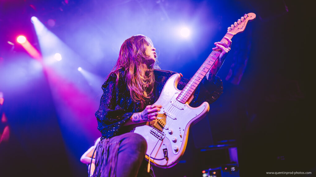 Avant de plonger dans l’univers du mythique Jimi, Little Odetta nous balance son single Shake en pleine face histoire de donner le ton d’entrée de jeu pour démarrer la soirée. Ce groupe à la solide expérience nous emmène dans son univers Rock et Blues à grand renforts de riffs et d’une Audrey Lurie au chant qui s’approprie la scène comme personne. Après avoir écumé nombre de scènes françaises pour défendre leur premier album sorti en 2021, le quintet francilien nous fait le très grand plaisir de glisser dans la setlist quelques morceaux issus du prochain album à paraitre en juin, dont le tout premier single Struck. Audrey électrise le Plan et ravie les nombreux fans – T-shirt du groupe en avant – pour faire chauffer la salle comme il se doit en attendant leurs amies d’Electric Ladyland. On ne pouvait rêver mieux pour lancer les hostilités !