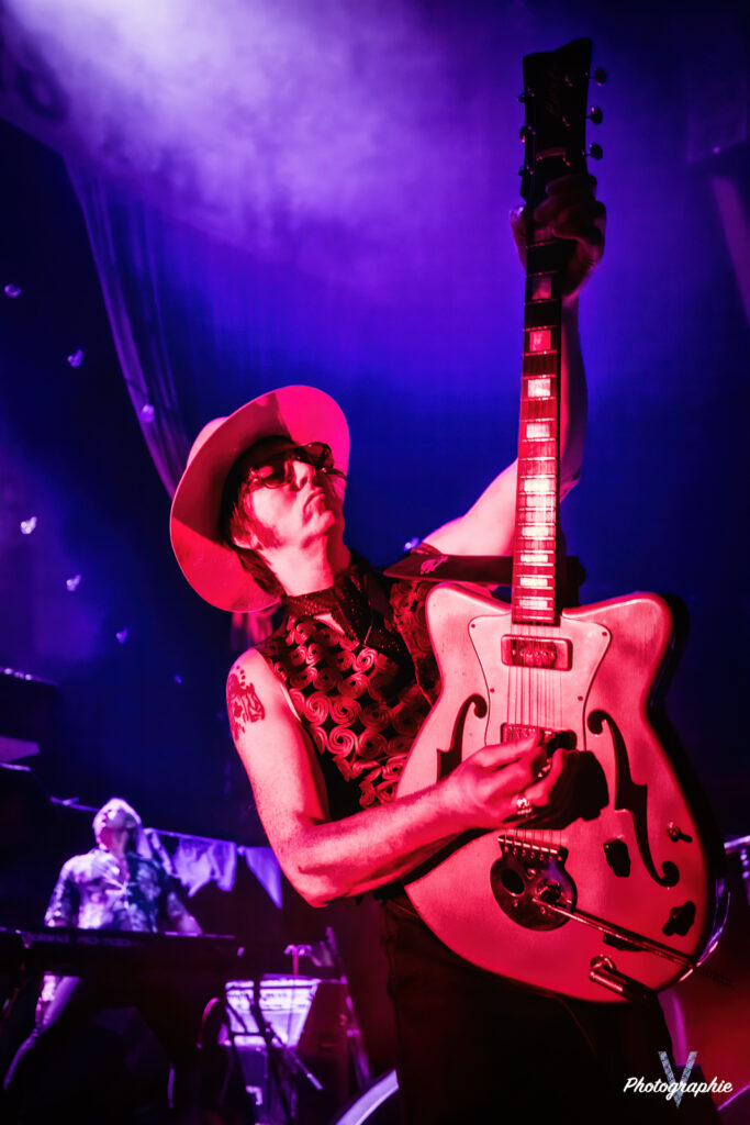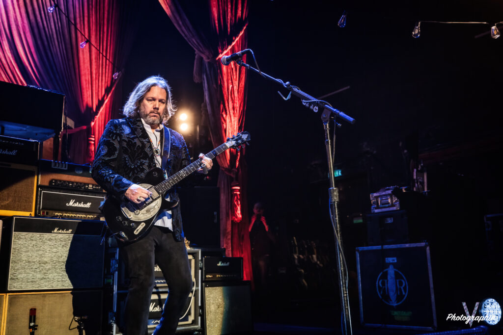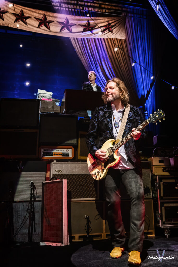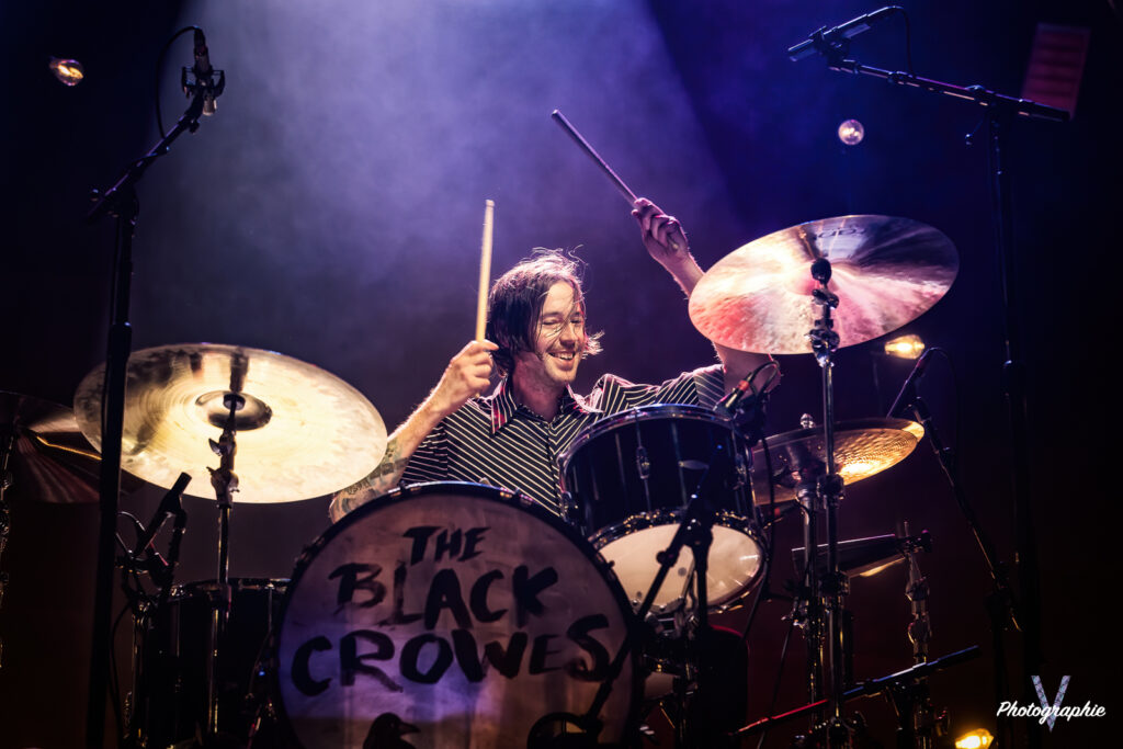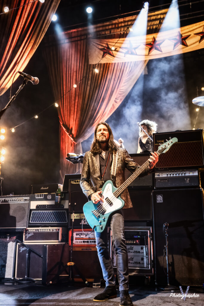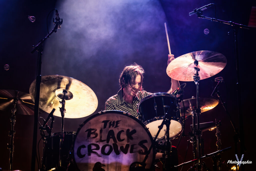 Sur scène comme dans le public, c’est la bonne ambiance, les bonnes vibes. Les frangins n’ont jamais semblé aussi proches, Rich va même sourire quelque fois !! Si si ! Le son défonce tout dans tous les sens du terme. Les oreilles prennent cher car le groupe joue à l’ancienne, comme son Rock. Avec Les Black Crowes, les amplis saturent au volume, ça oblige à jouer fort. Il s’agit de ne pas oublier les protections d’oreilles si on vise les premiers rangs ! Par contre ça sonne la mort ! Chris toujours en mouvement va danser toute la soirée, toujours sur un pieds à la limite de l’équilibre sans jamais basculer complètement. Mais il va chanter aussi et sans jamais être pris en défaut.
