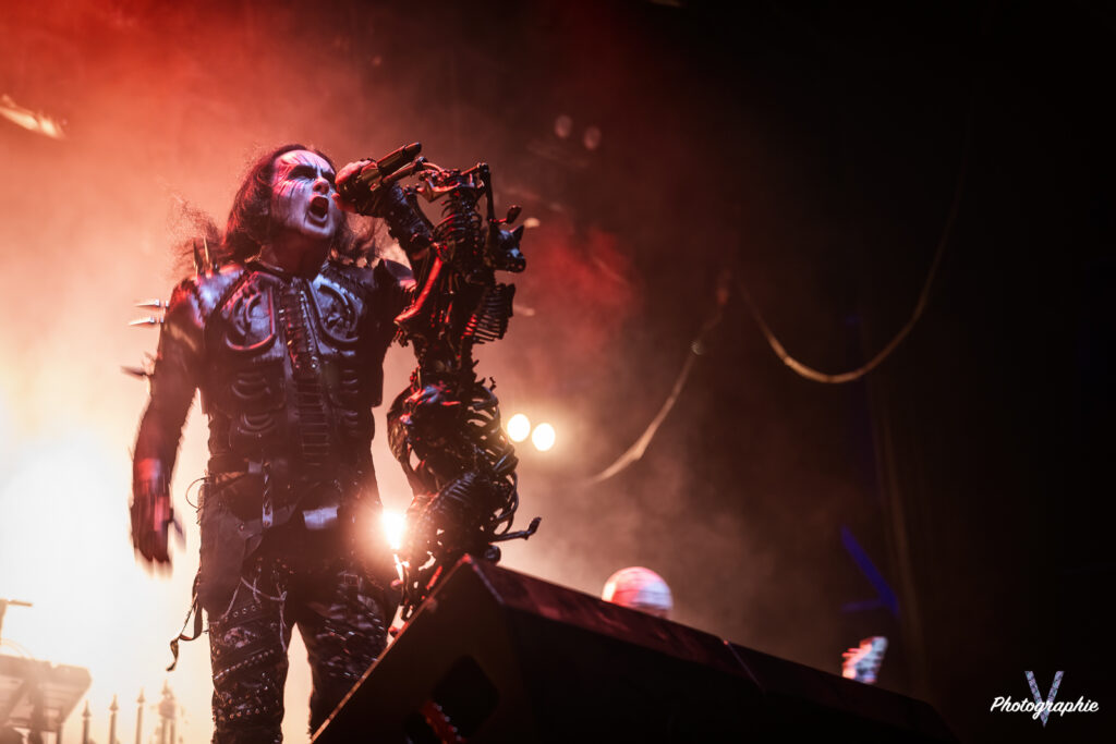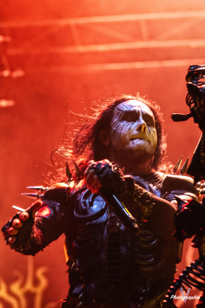 Dernier concert de la journée avec du lourd dans le domaine du Black Symphonique par les Britanniques de Cradle of Filth. Si vos oreilles commencent à siffler à ce stade, gare au scream strident de Dani Filth. Vous êtes toujours là et il vous manque maintenant l’ouïe, qu’à cela de ne tienne, Cradle ça se regarde aussi très bien avec leur mise en scène soignée et diabolique, menée par leur démon de poche.