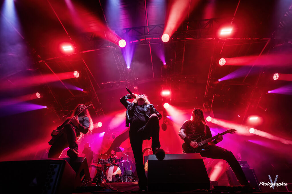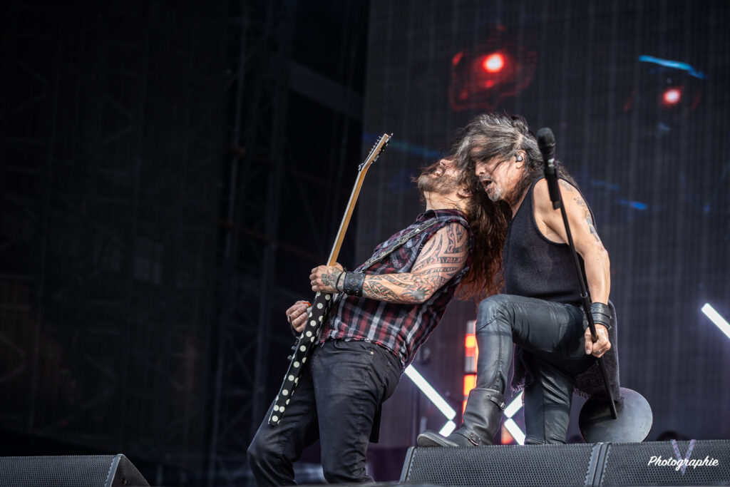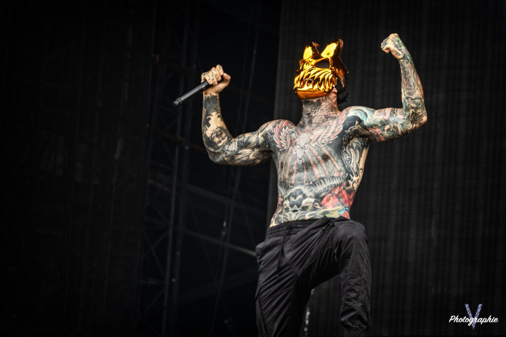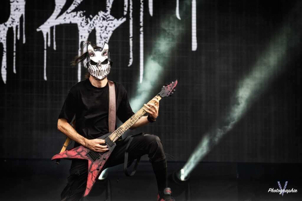 L’édition 2024 continue le projet d’ouverture du Hellfest vers les groupes issus du Rock. L’année dernière il s’agissait de Machine Gun Kelly, cette année ce sont les Foo Fighters et Shaka Ponk qui représentent cet élargissement. Les vieux de la vieille crient au scandale, le public veste à patch campe sur ses positions, le Hellfest doit être Metal, mais on sent bien que cette ouverture d’esprit colle déjà bien plus au public plus jeune. En ouvrant ainsi son affiche à des groupes plus mainstream, le Hellfest ne fait que suivre la tendance de son public de plus en plus à même d’apprécier les vieilles gloires qui trustent toujours le haut de l’affiche tout en laissant la place à ses groupes qui gardent un pieds dans le Rock pendant que l’autre se pose sur le Metal. Et puis il faut aussi se rendre à l’évidence, les groupes de pure Metal qui peuvent prétendre à jouer en tête d’affiche en attirant 60 000 festivaliers tend à se raréfier et le sang neuf n’est clairement pas à la hauteur en termes de notoriété. La faute aux nouveaux modes de consommation qui pousse plus à picorer partout plutôt qu’à miser gros sur un seul artiste. La preuve en est que deux groupes en tête d’affiche de cette année font débat parmi le public malgré leurs indéniables qualités. Machine Head qui aura parfaitement rempli le contrat reste un groupe pourtant plutôt second couteau dans le Thrash des 90’s et Avenged Sevenfold n’est pas le genre de groupe qui remplit des stades en France. Leur place sur l’affiche ne pourrait se justifier sous leur seule bannière et ils profitent indéniablement de l’aura du Hellesft et du reste de la programmation pour remplir. En tout cas c’est une programmation très musclée et bien Metal qui nous attend sur ce premier jour. Melolive aura réussi à couvrir une grande partie de l’affiche en espérant que notre article vous fera vivre ou revivre ce Hellfest.
