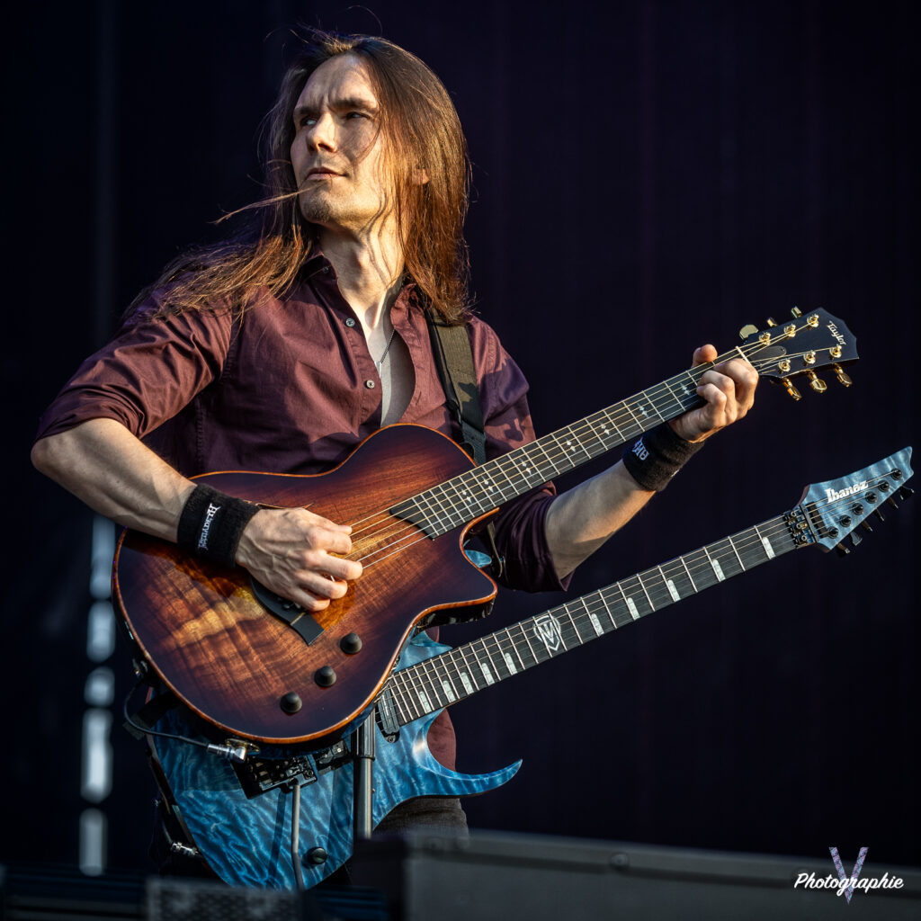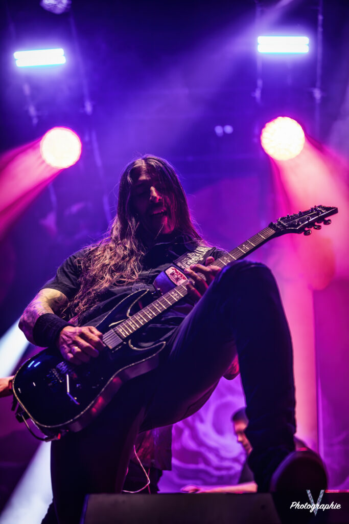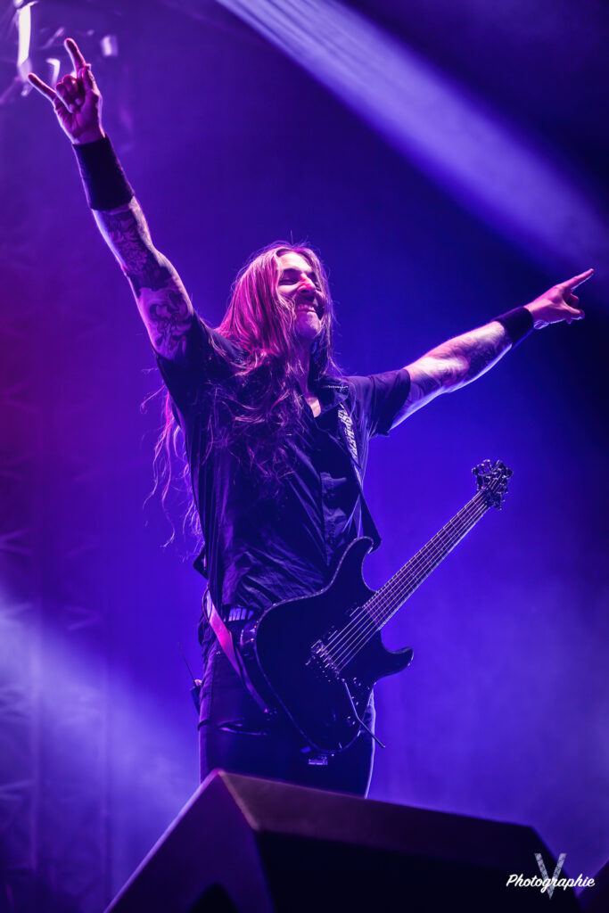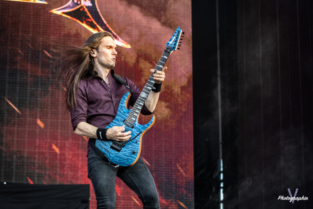 Changement de lieu pour l’Altar. On y retrouve les Suédois de Dark Tranquillity et leur Death Mélodique, combo gagnant qui perdurent depuis plus de 35 ans avec à la clef bientôt 13 albums dont le dernier, Endtime Signals, est prévu pour le 16 août prochain avec notamment une équipe rythmique Basse/Batterie renouvelée pour l’occasion. Ainsi, en 2024, Mikael Stanne, (Voix et Guitar rythmique) est le seul rescapé du line-up originel.