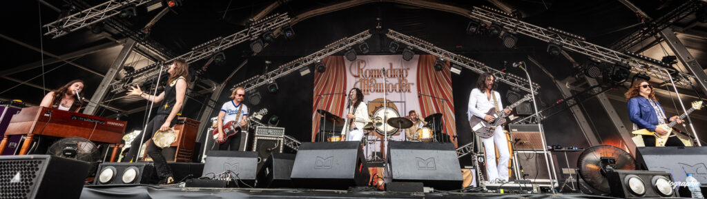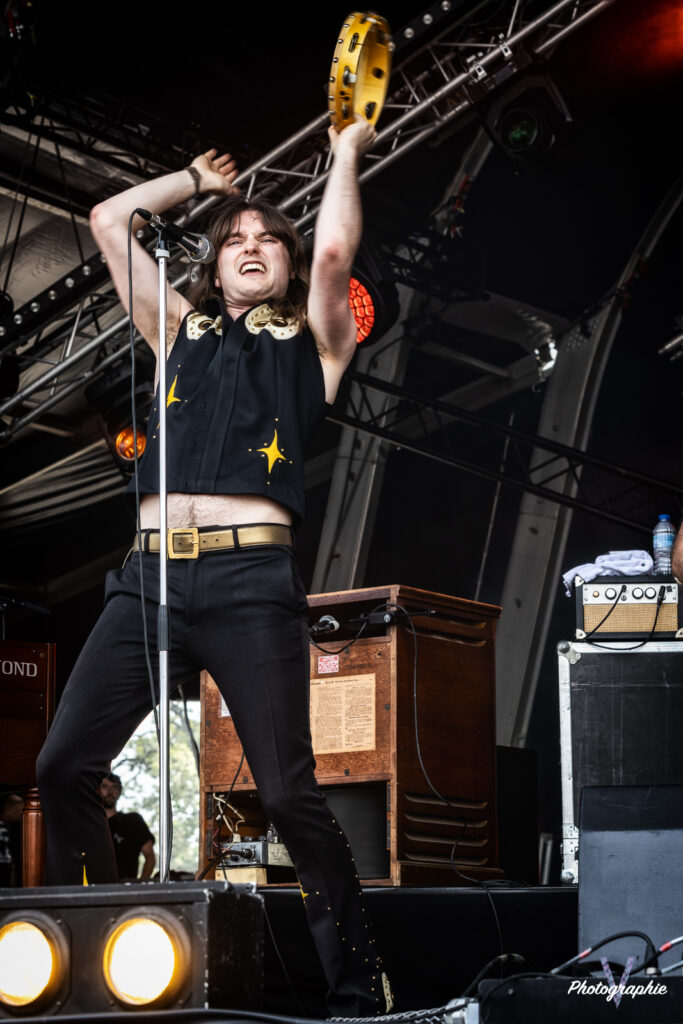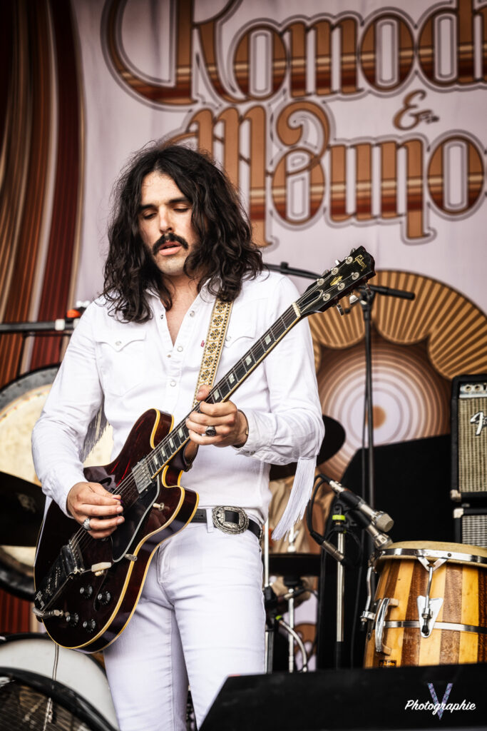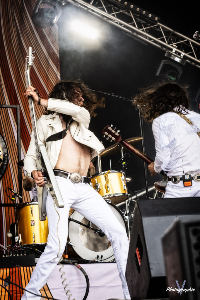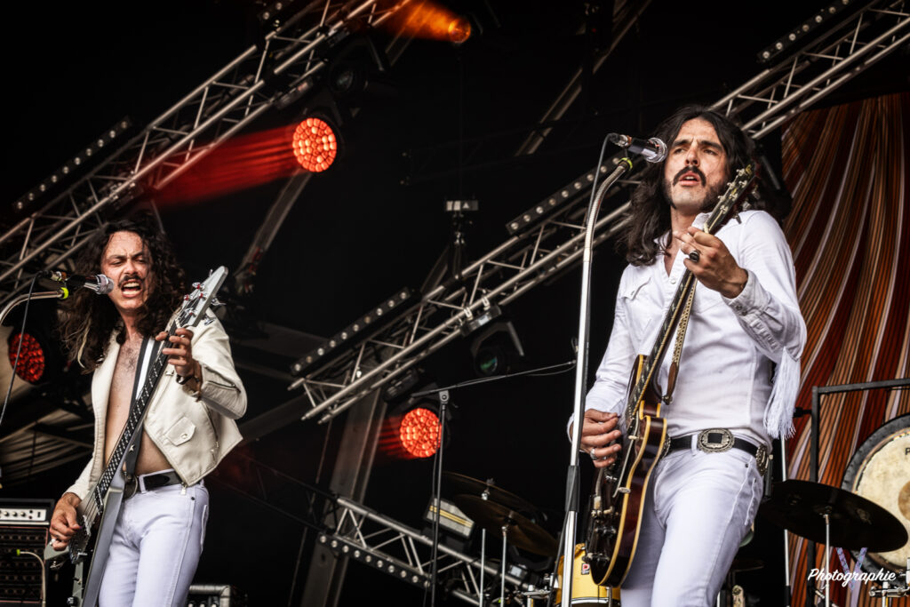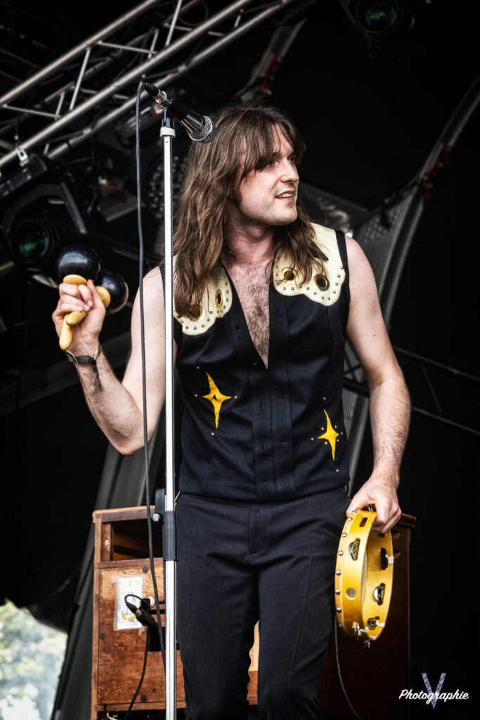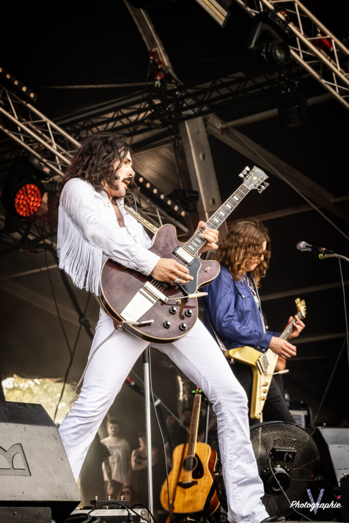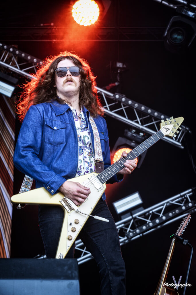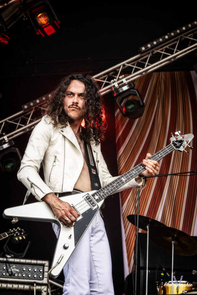 Pour le tout premier concert du tout premier jour sur la Valley, le choix de Komodrag & The Mounodor était plutôt intéressant et on s’y est précipité très vite. Le groupe issue de la fusion de Moundrag et de Komodor propose un Rock teinté 70’s en allant jusqu’au bout de l’idée en reproduisant tous les codes de l’époque. Les bretons vont littéralement plier le game devant un public venu en masse pour les découvrir en live. La Valley est aussi pleine que si nous étions devant sa tête d’affiche alors que nous ne sommes qu’en milieu de journée et que c’est le premier concert. Un groupe à suivre !