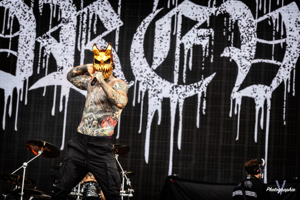 Le set est sur le point de commencer mais le public est présent en masse pour l’heure. Vrais fans, curieux ou détracteurs, les petits russes rassemblent. Arrivés avec leurs masques plus qu’identifiables, ils déroulent gentiment (pour leur répertoire), Alex se chauffe encore. Ça abuse aussi pas mal du pad basse. Arrive forcément Demolisher et une petite réaction du public. Annoncé sur les réseaux, arrive ensuite une petite requête, faire le plus gros Wall of death afin de battre le record installé par Dagoba. Le public est difficile à bouger et cela prend une bonne dizaine de minute et l’implication directe d’Alex dans le pit (déjà que le mec s’est ouvert la gueule en se fracassant le micro à X reprises quelques instants avant). Le résultat n’est pas à la hauteur des attentes et ce wall of death fera pshitt. On salue néanmoins le groupe de démontrer que la performance de Dagoba en son temps n’était pas anodine.