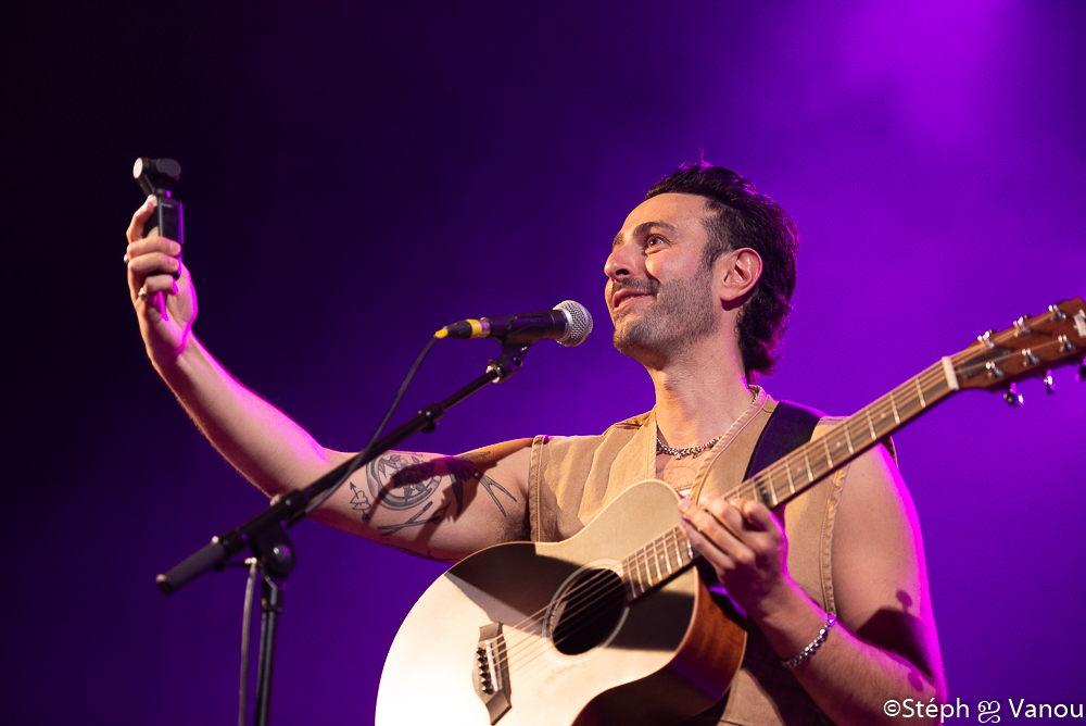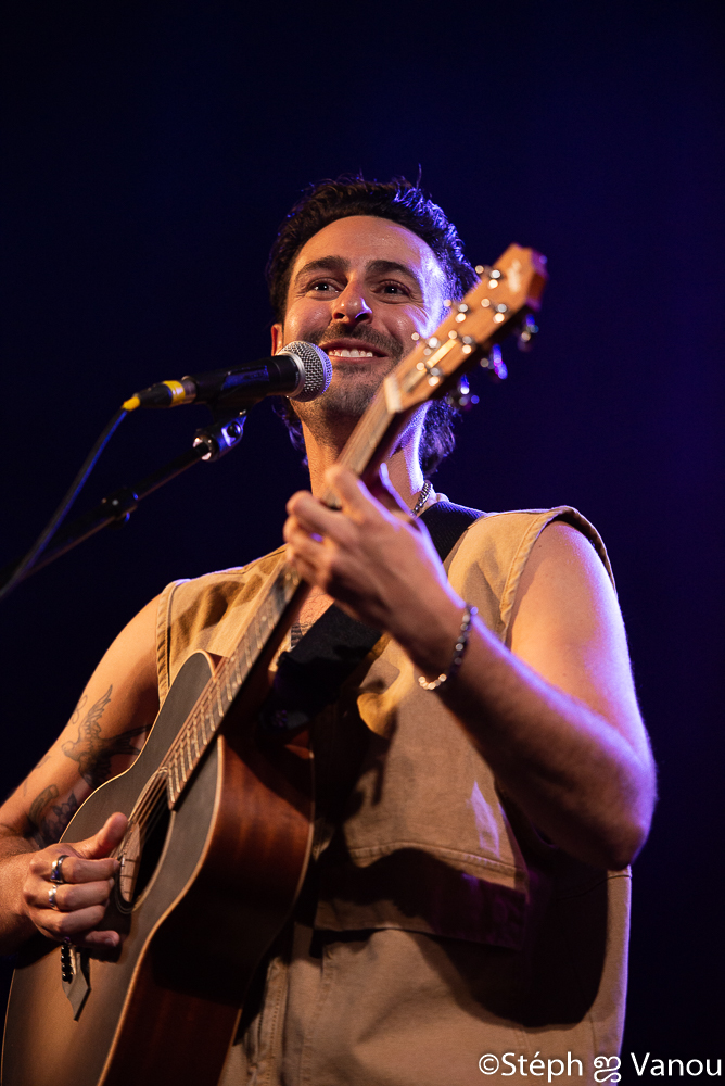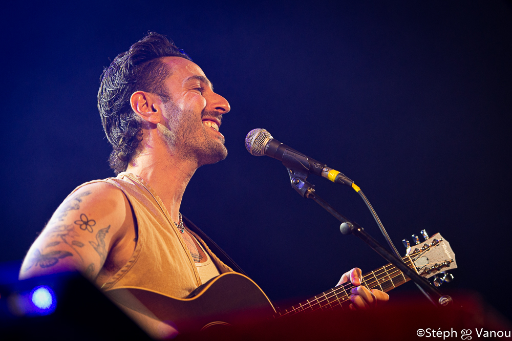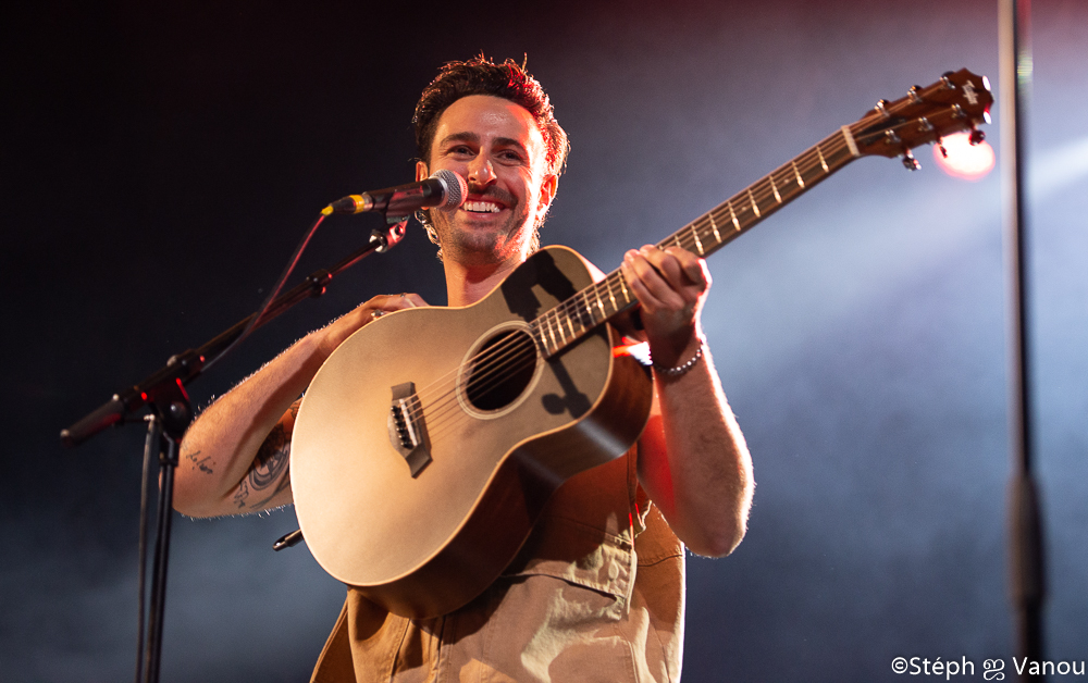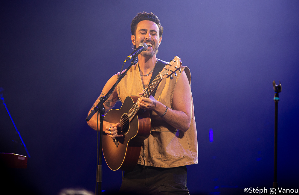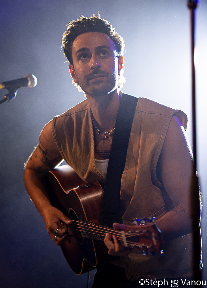 En 1ère partie, nous avons découvert Jesse Gold, un jeune artiste de 20 ans, basé à Toronto, au Canada. Il est chanteur, auteur-compositeur et guitariste. Il nous indique que son rôle ce soir est de chauffer la salle et il a réussi avec brio. Dès le début du show, il relève le challenge et fait bouger tout le public et tout le monde semble avoir grandement apprécié. Il nous raconte qu’une personne de son entourage lui a dit qu’il ne réussirait pas à avoir de succès à Paris, il filme alors le public en train de l’acclamer (mais il semble faire cela dans chaque ville).