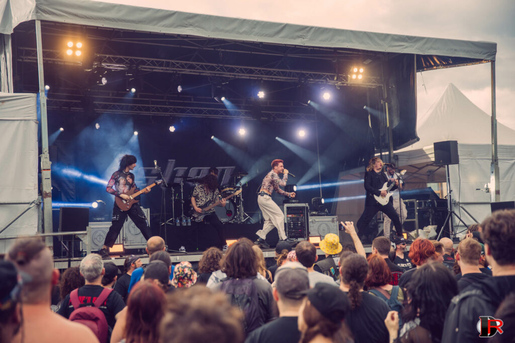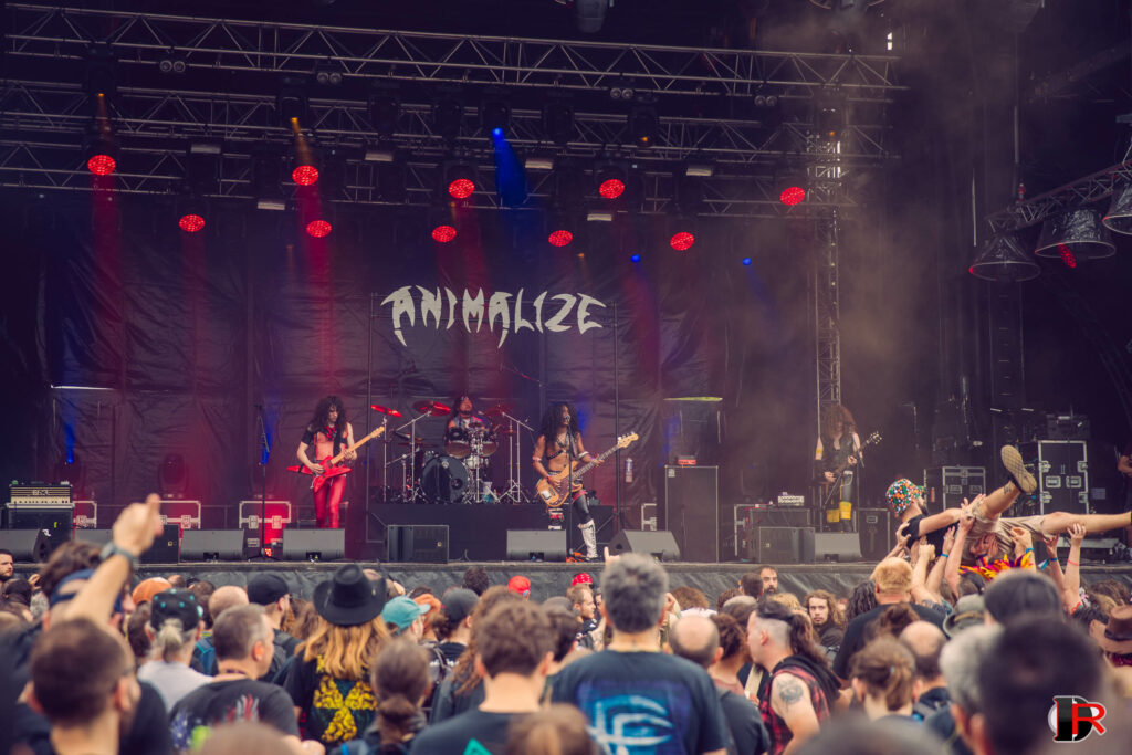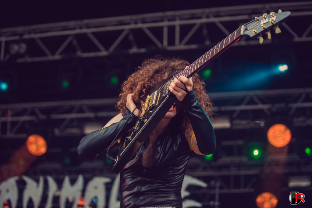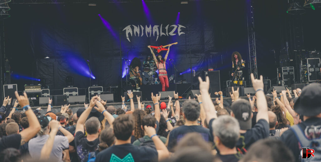 Après cette mise en jambes, direction le terminal 1, pour aller écouter Animalize. Le groupe, vainqueur du tremplin du Plane’R’Fest, capture l’essence vibrante et captivante de l’âge d’or du Heavy/speed Metal des années 80. Le groupe offre un voyage à travers un monde déjanté et mémorable, idéal pour les nostalgiques de cette ère où le grand spectacle et l’Epicness était au centre des préoccupations. Et on doit bien le dire, ils sont totalement déjantés, totalement lookés, et ils n’ont pas hésité à prendre la pose pour les photographes présents, un pur régal.