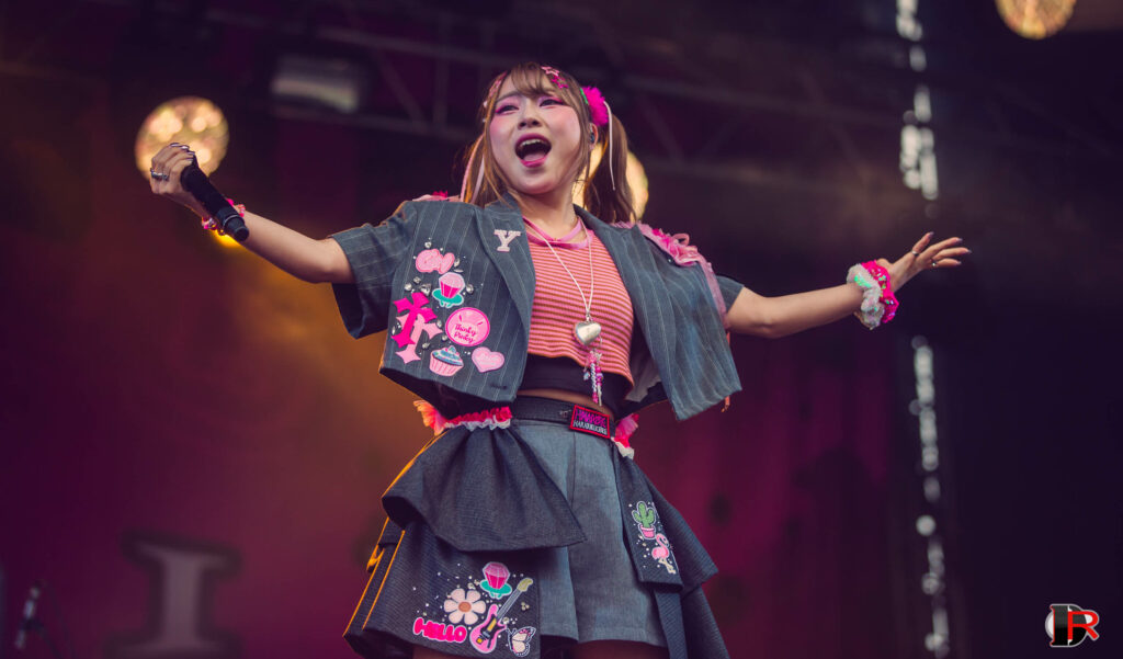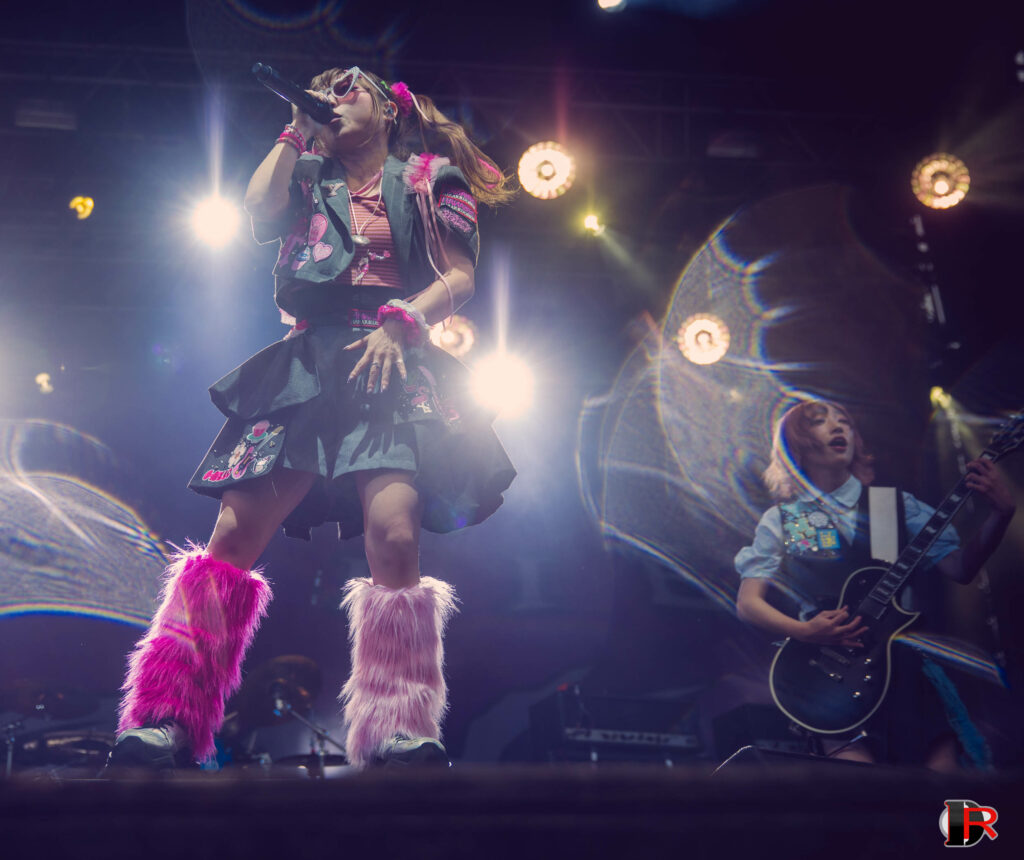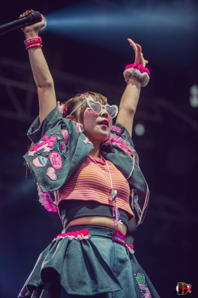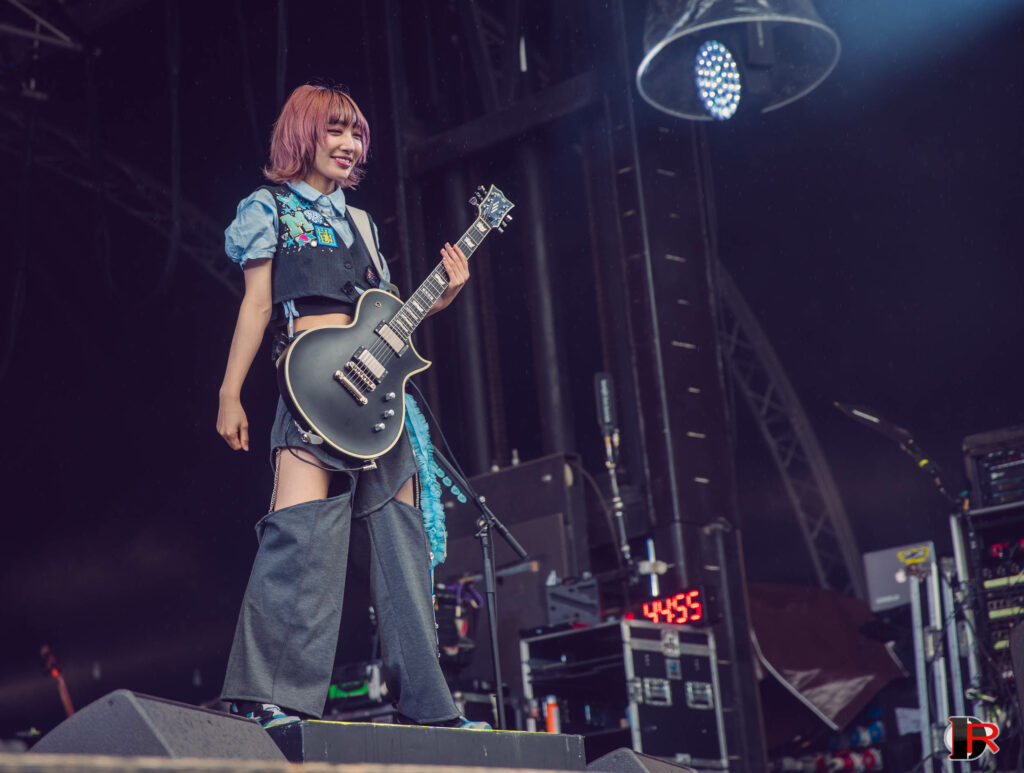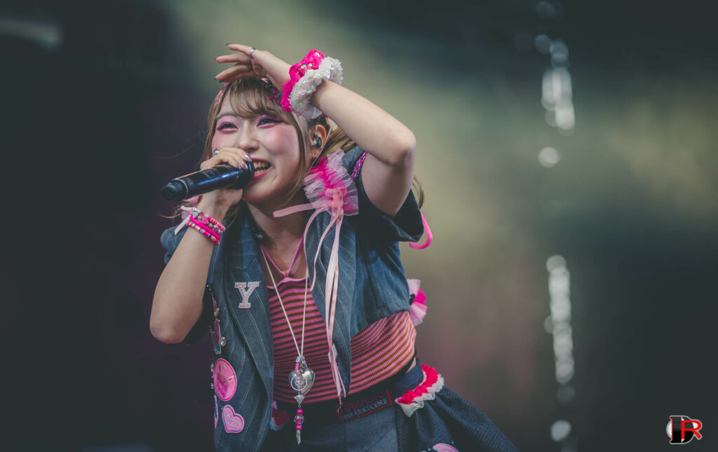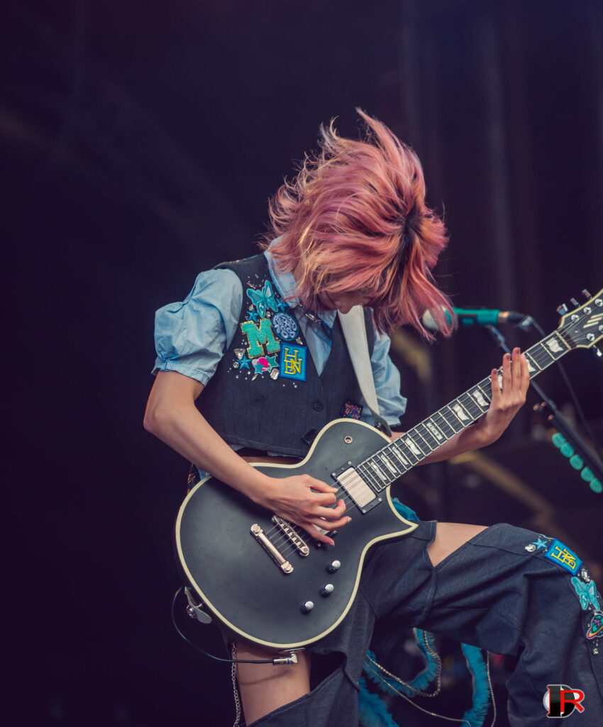 Place maintenant à l’un des groupes les plus attendus par le public, Hanabie. Le groupe japonais de Metalcore, originaire de Tokyo, se compose de Yukina (voix), Matsuri (guitare et voix), Hettsu (basse et chœurs), et Chika (batterie). C’est sous une pluie battante, que la chanteuse fera son apparition, drapeau français en main. Avec un groupe looké en mode Kawaii, on rentre dans un univers à part, celui du « Harajuku-core », un mélange de sonorités Metal intenses et d’éléments visuels inspirés de ce quartier de Tokyo. Ce fut une vraie découverte pour nous, à l’inverse du public qui les attendait en masse, mais aura passé un excellent concert, grâce à leur énergie débordante et un live de qualité, et ce malgré la pluie incessante.