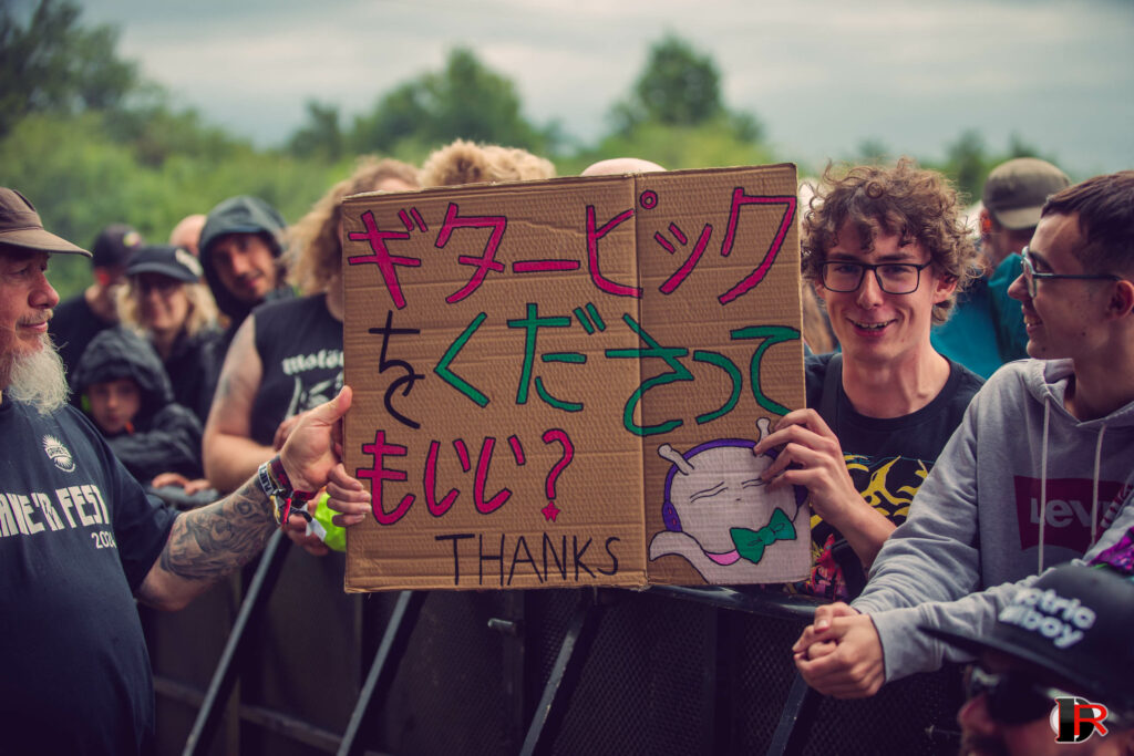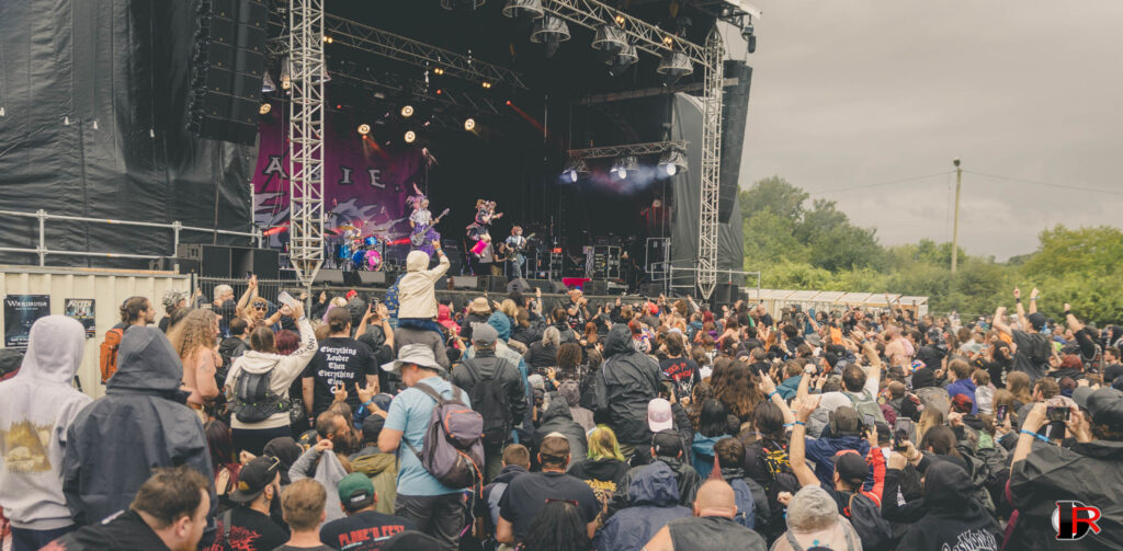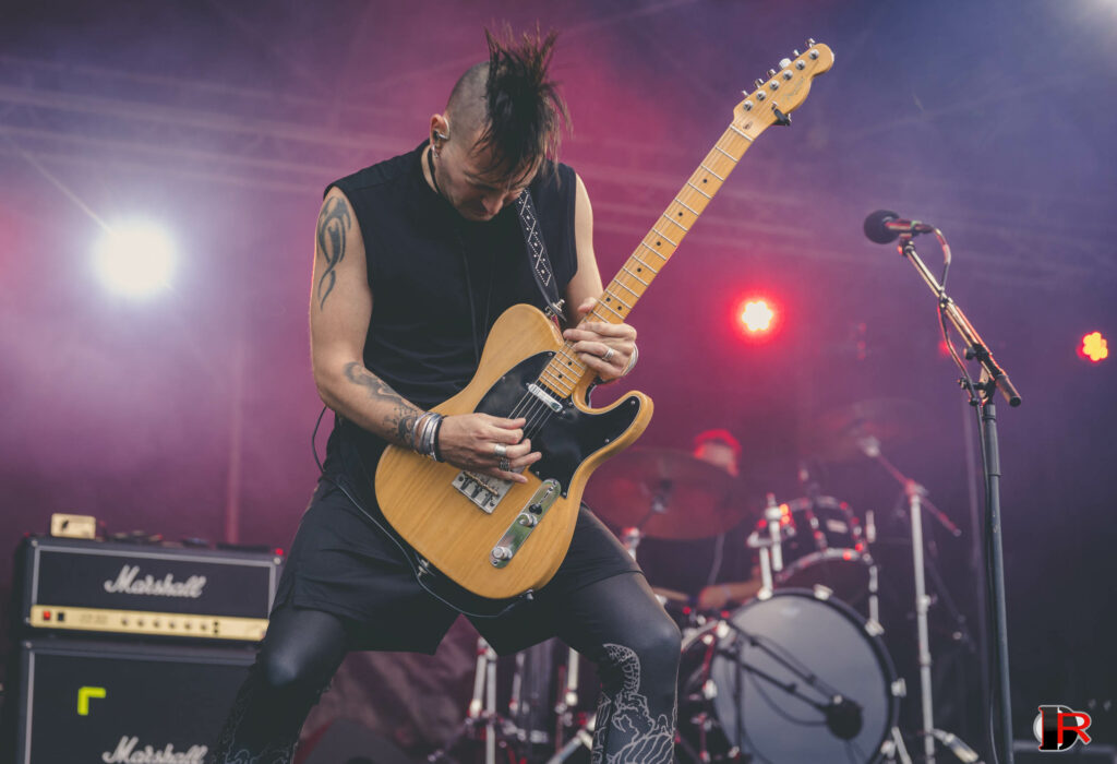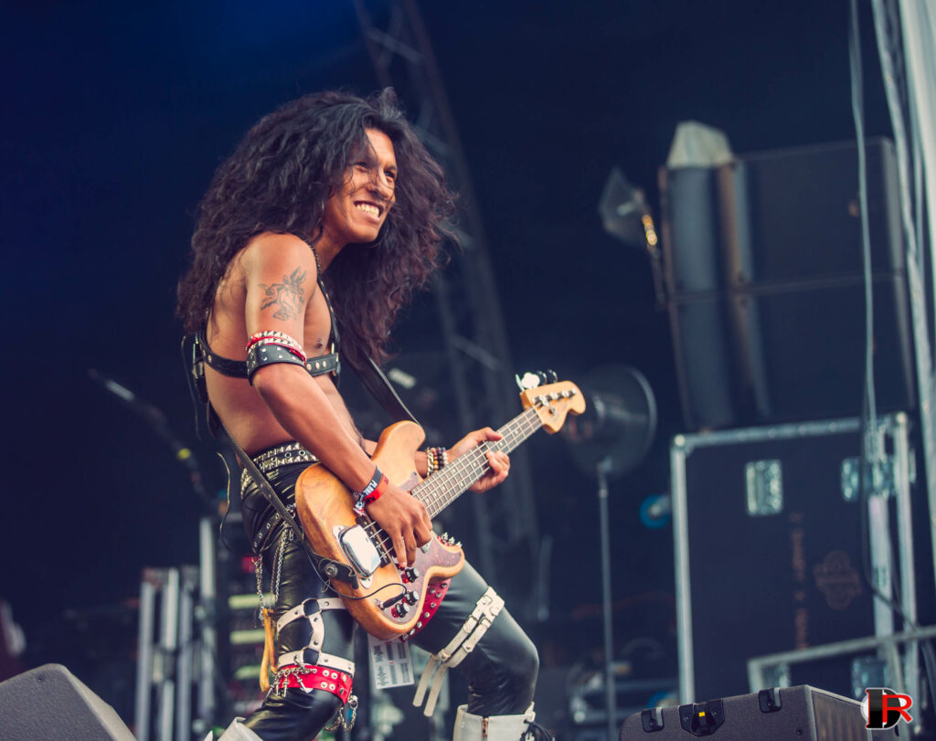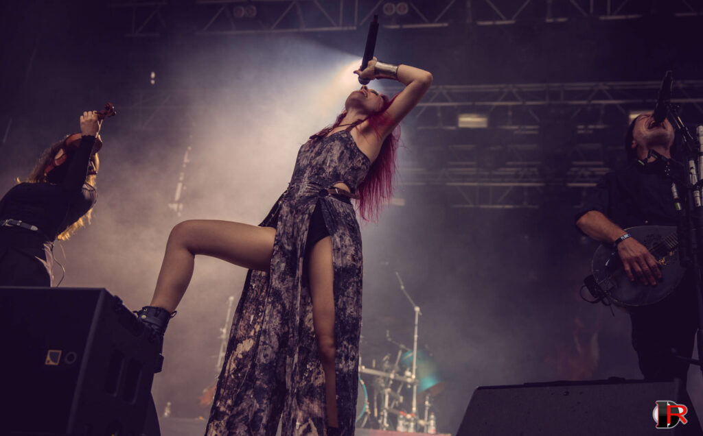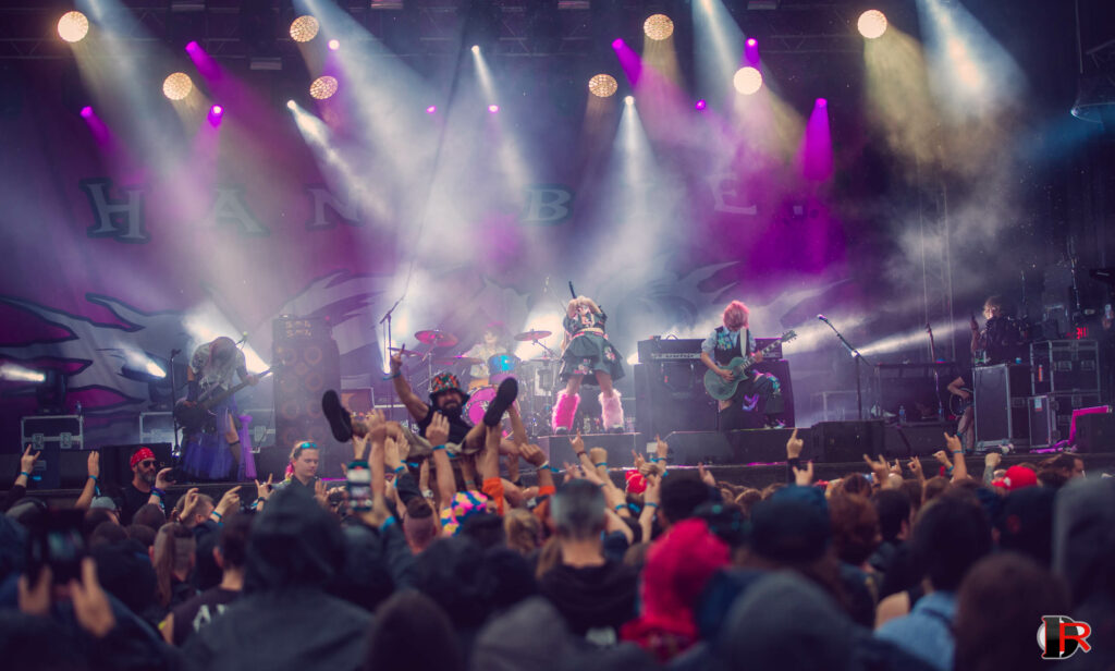 Place maintenant à l’un des groupes les plus attendus par le public, Hanabie. Le groupe japonais de Metalcore, originaire de Tokyo, se compose de Yukina (voix), Matsuri (guitare et voix), Hettsu (basse et chœurs), et Chika (batterie). C’est sous une pluie battante, que la chanteuse fera son apparition, drapeau français en main. Avec un groupe looké en mode Kawaii, on rentre dans un univers à part, celui du « Harajuku-core », un mélange de sonorités Metal intenses et d’éléments visuels inspirés de ce quartier de Tokyo. Ce fut une vraie découverte pour nous, à l’inverse du public qui les attendait en masse, mais aura passé un excellent concert, grâce à leur énergie débordante et un live de qualité, et ce malgré la pluie incessante.