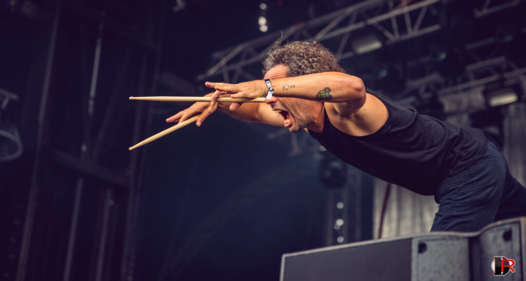 Alors que l’orage s’abat de plein fouet sur le site du festival, il est l’heure pour Smash Hit Combo d’entrer sur scène. Le groupe de Rap/Metal français originaire de Cernay, en Alsace, s’est démarqué par sa fusion unique de Metal et de Rap, intégrant des éléments de musique Hardcore et des influences de la culture geek, notamment des références aux jeux vidéo et aux mangas. Malgré la pluie battante, le groupe aura donné de sa personne, tout comme les festivaliers, qui auront bien dansé dans la gadoue….