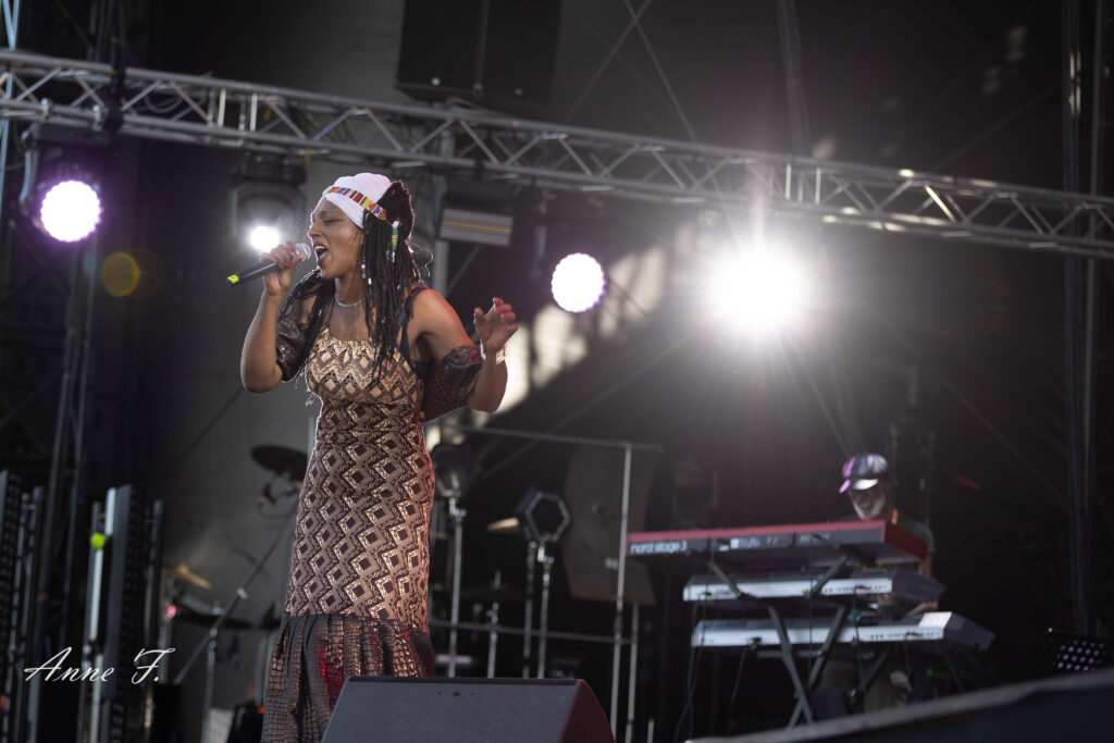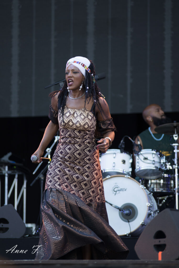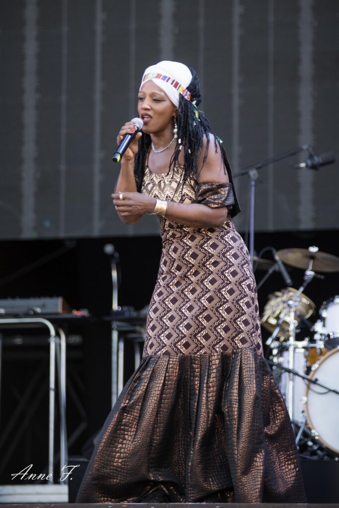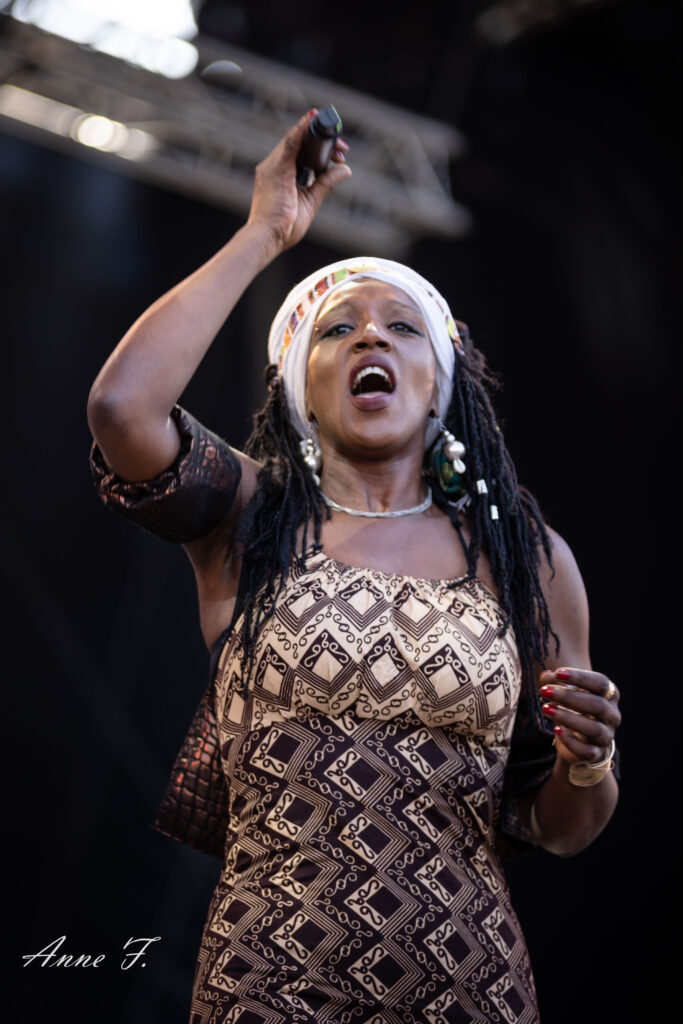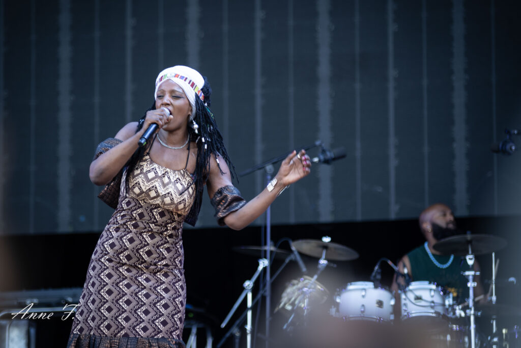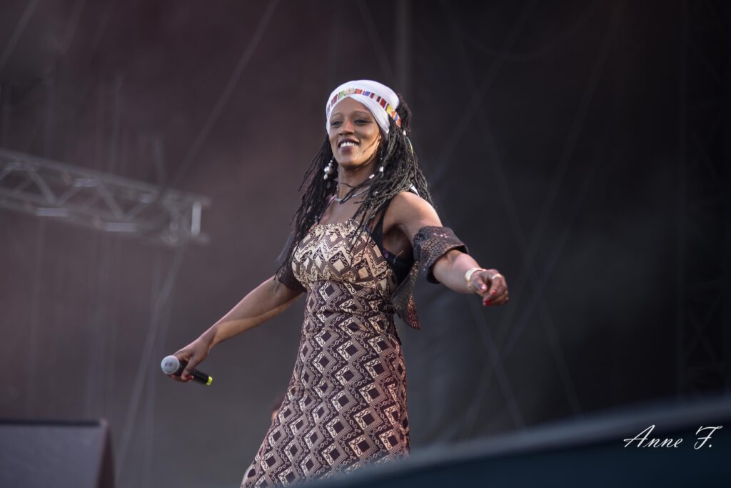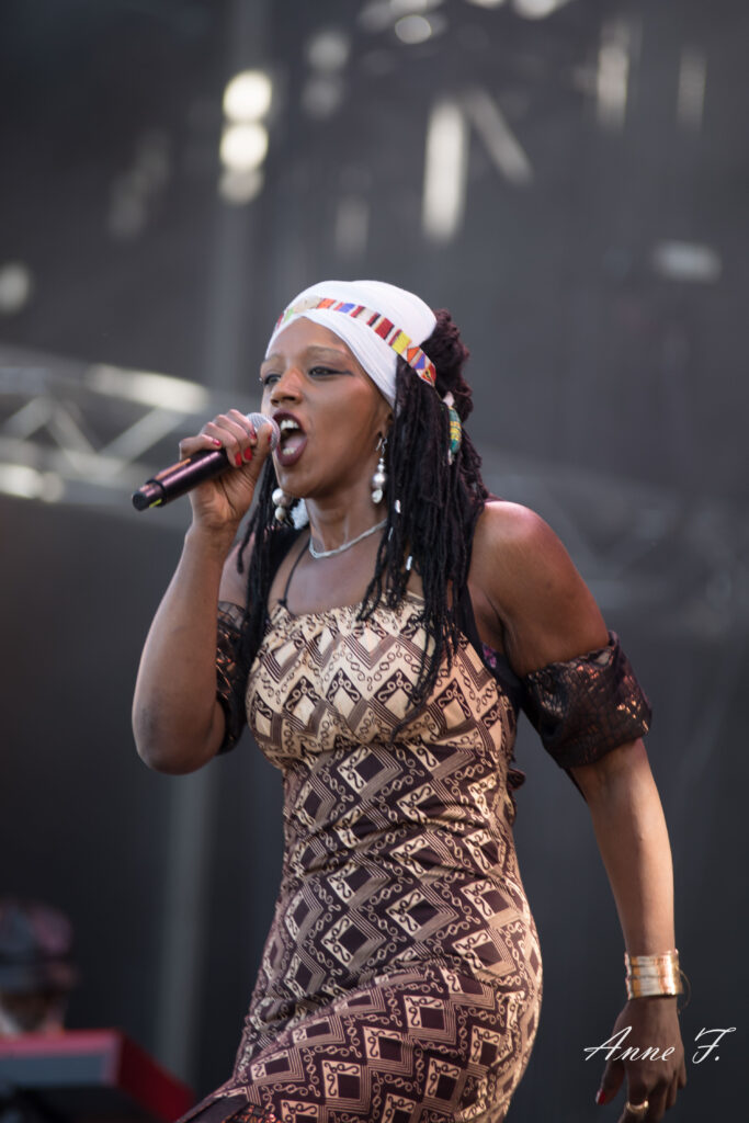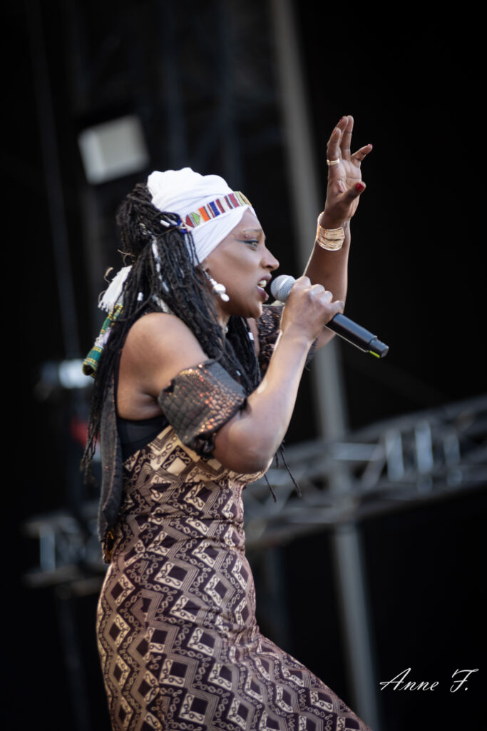 On ouvre la scène Monts avec la présence envoûtante de Mo Kalamity et de ses musiciens pour un moment de Reggae, idéal pour débuter cet après-midi. Elle réussit à embarquer le public avec ses morceaux spirituels et engagés.