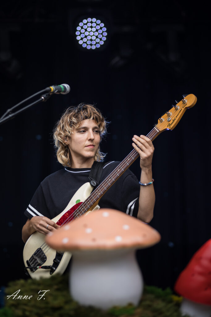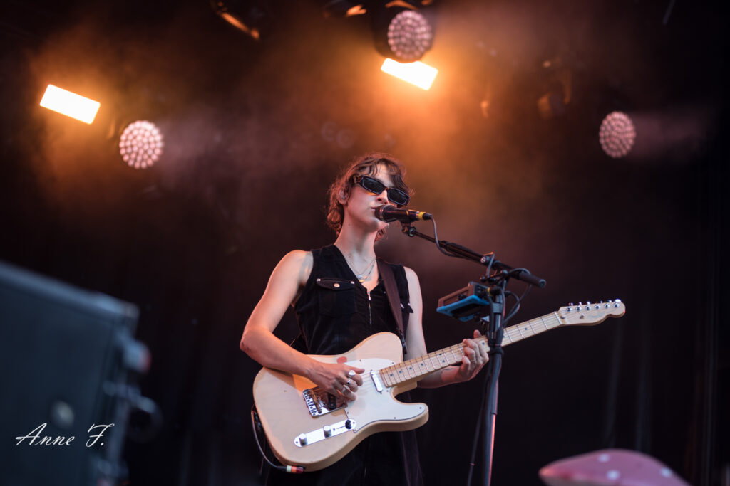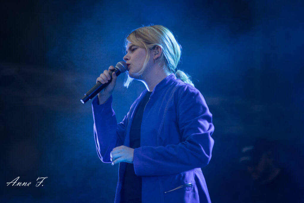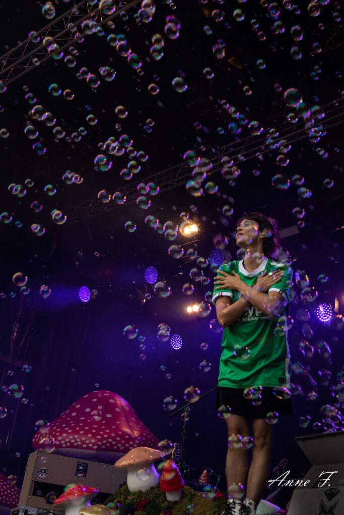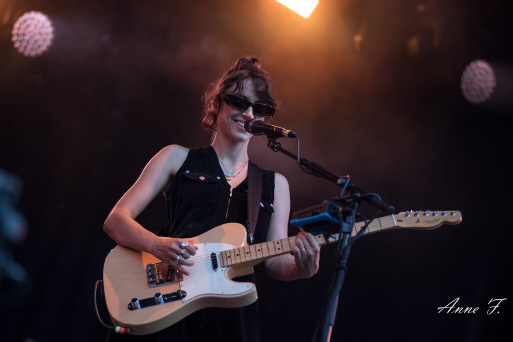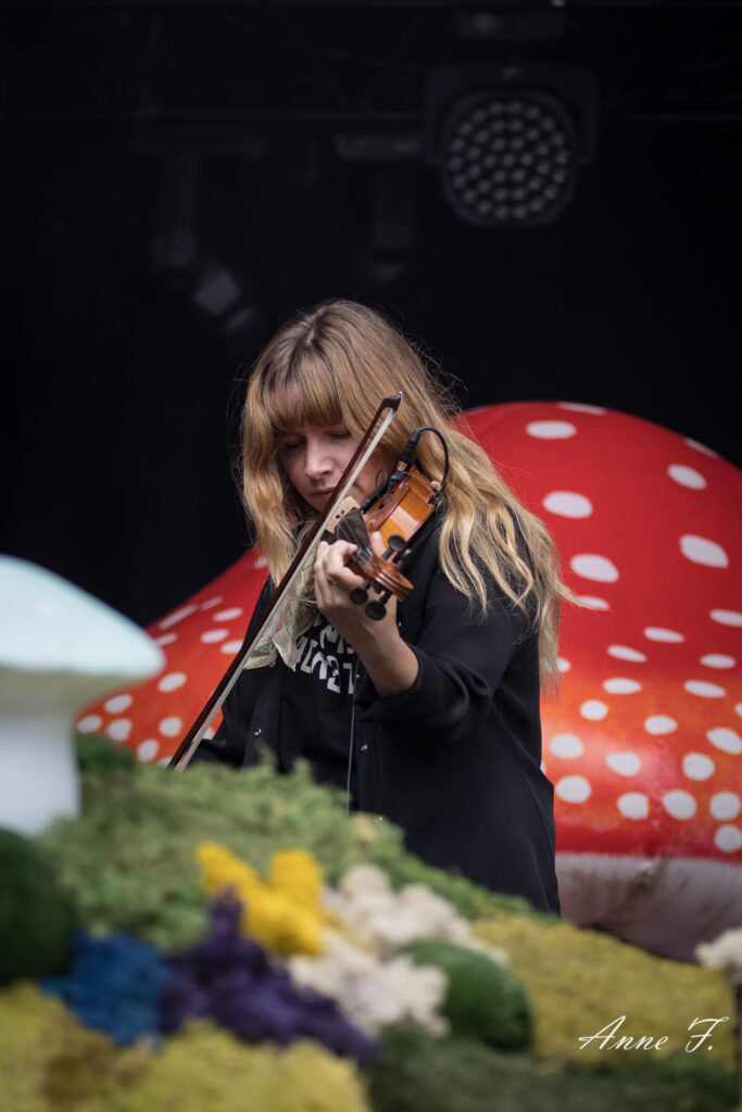 Après la séquence émotion d’une demande en mariage depuis la scène (spoiler : elle a dit oui !), c’est dans un magnifique décor champêtre que Pomme commence son concert qui ressemble à une voyage poétique mené en douceur par sa très jolie voix. Elle s excuse de chanter des chansons tristes dans un festival mais le public est bercé par le spectacle tout aussi visuel que mélodique..