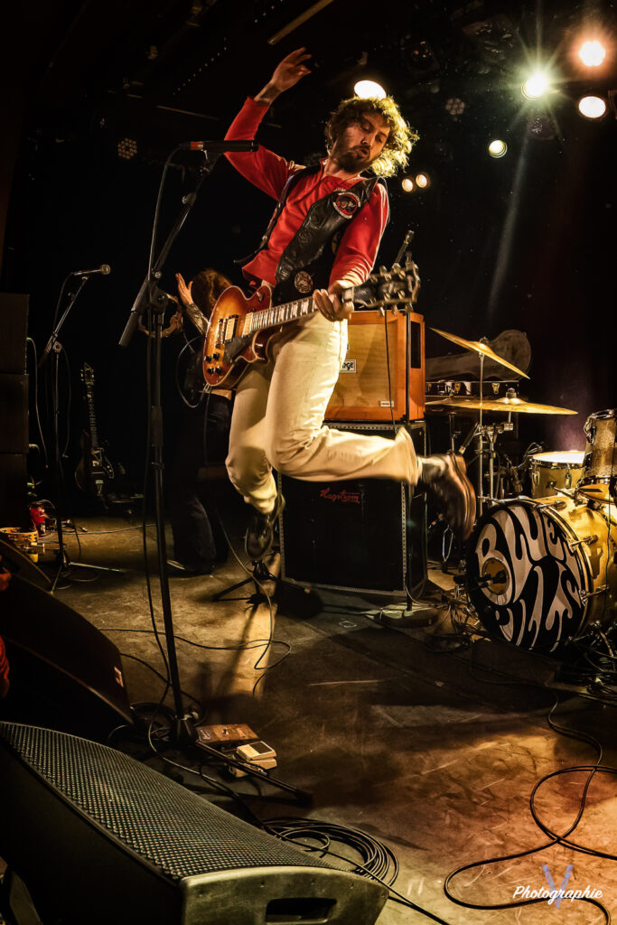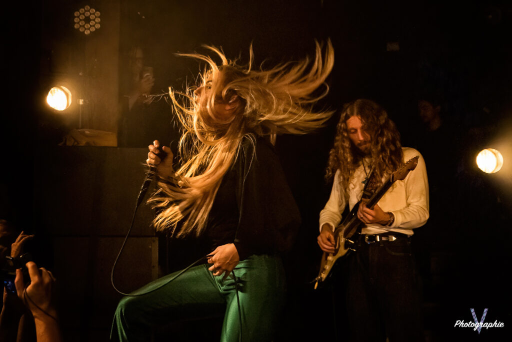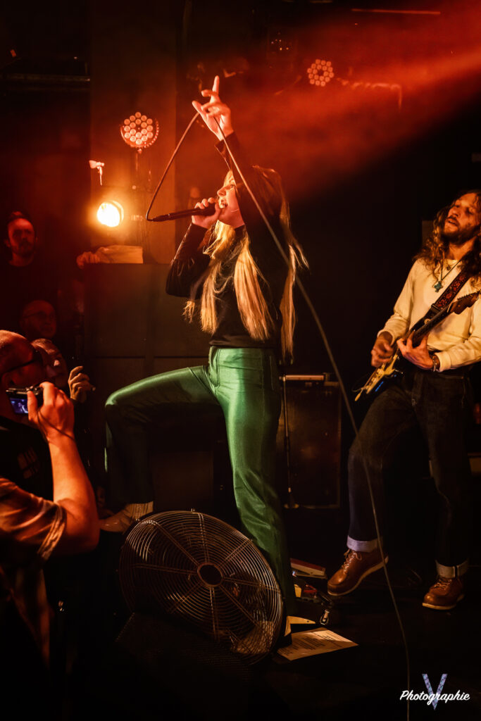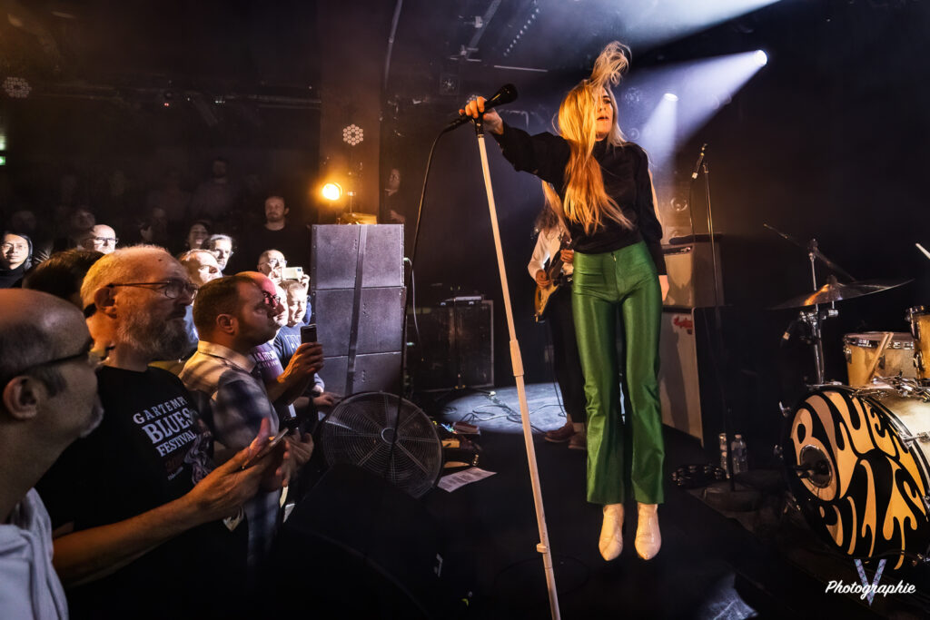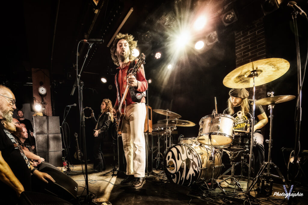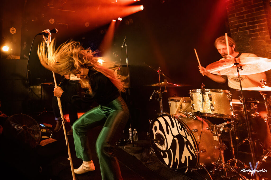 Une salle plus grande c’est ce qu’il aurait fallu à Elin Larrson des Blues Pills. Elle bouge tellement qu’elle a usé le parquet de la scène à force de passer d’un côté à l’autre de la salle. Le reste des musiciens étant assez statique, voire même transparent, le contraste était assez saisissant. On dirait une chanteuse avec des musiciens qui l’accompagne plutôt qu’un groupe visuellement. C’est une impression qu’on avait moins eu sur les grandes scènes, mais l’étroitesse des lieux et le fait que votre serviteur est au premier rang aura mis en exergue cette particularité du groupe. A ce propos, il faut savoir que lorsqu’on se place au premier rang d’un concert de Blues Pills, il ne faut pas être timide car Elin vient parfois chanter à deux centimètres de votre visage en vous regardant dans les yeux. C’est un moment assez intimidant même lorsqu’on est difficile à intimider. Et puis ça permet de sentir que malgré la dépense d’énergie Elin sent toujours bon même à la fin du concert. On veut bien sa marque de déo, c’est du genre efficace !