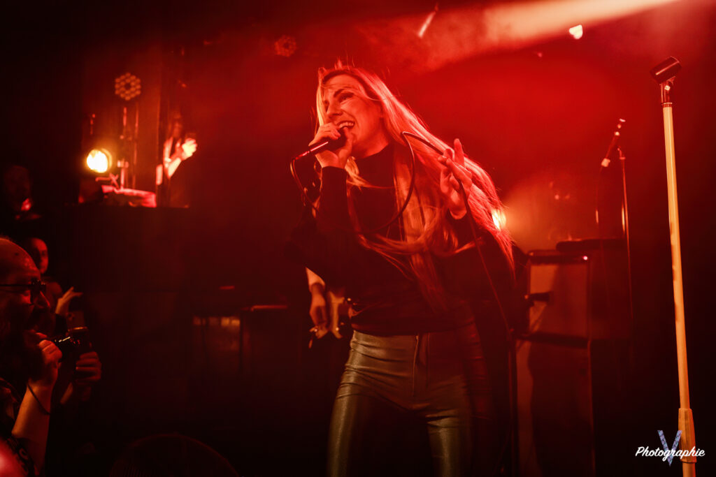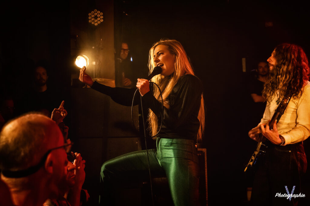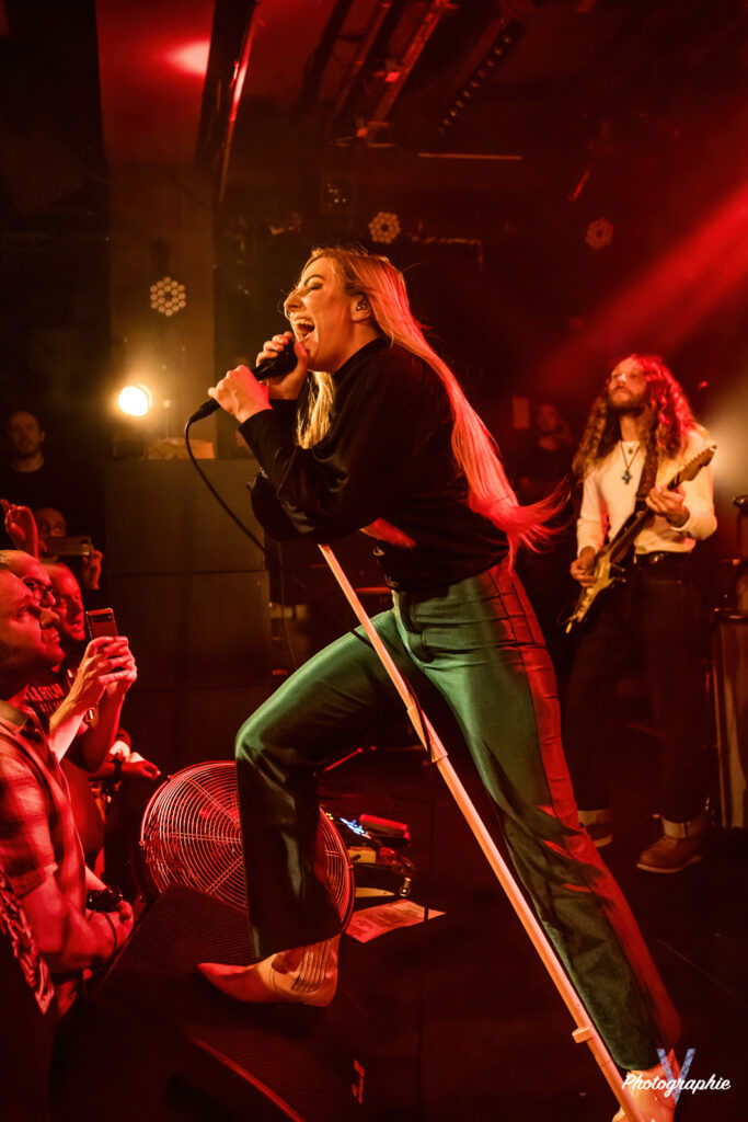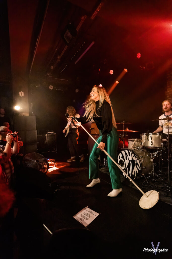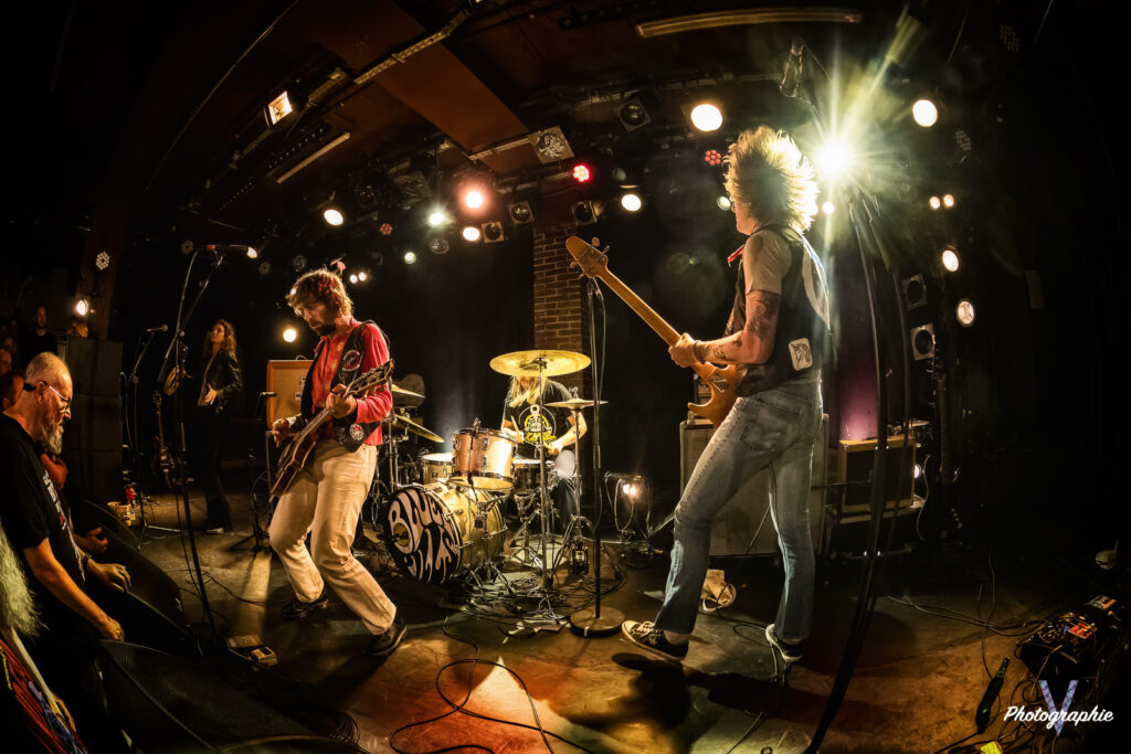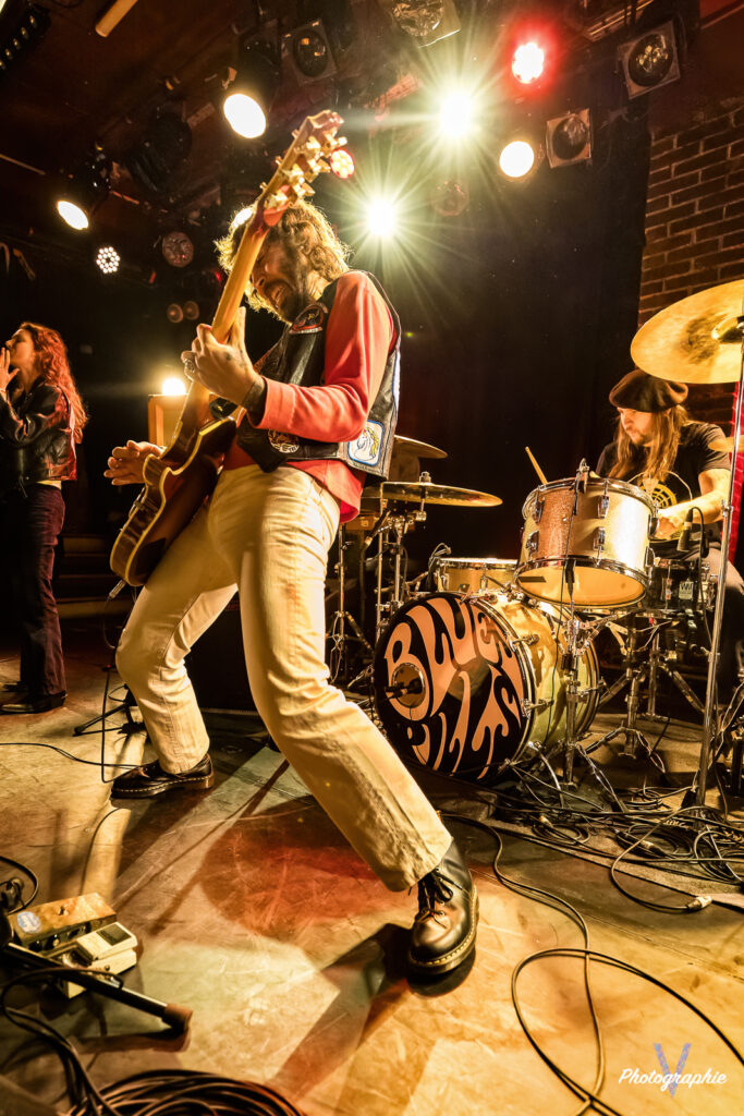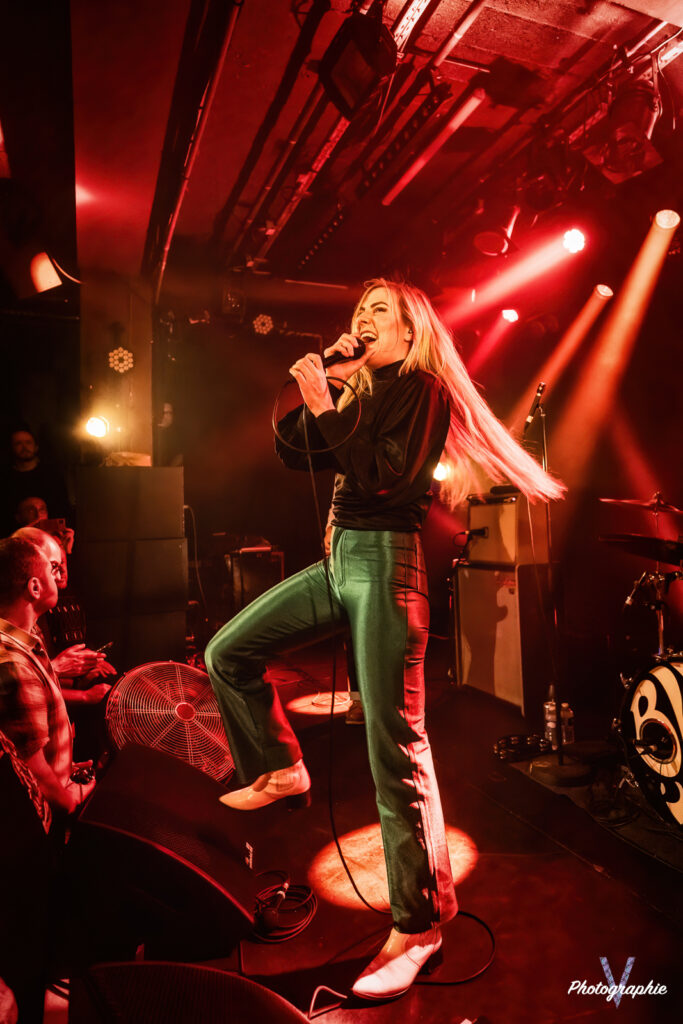 Une salle plus grande c’est ce qu’il aurait fallu à Elin Larrson des Blues Pills. Elle bouge tellement qu’elle a usé le parquet de la scène à force de passer d’un côté à l’autre de la salle. Le reste des musiciens étant assez statique, voire même transparent, le contraste était assez saisissant. On dirait une chanteuse avec des musiciens qui l’accompagne plutôt qu’un groupe visuellement. C’est une impression qu’on avait moins eu sur les grandes scènes, mais l’étroitesse des lieux et le fait que votre serviteur est au premier rang aura mis en exergue cette particularité du groupe. A ce propos, il faut savoir que lorsqu’on se place au premier rang d’un concert de Blues Pills, il ne faut pas être timide car Elin vient parfois chanter à deux centimètres de votre visage en vous regardant dans les yeux. C’est un moment assez intimidant même lorsqu’on est difficile à intimider. Et puis ça permet de sentir que malgré la dépense d’énergie Elin sent toujours bon même à la fin du concert. On veut bien sa marque de déo, c’est du genre efficace !