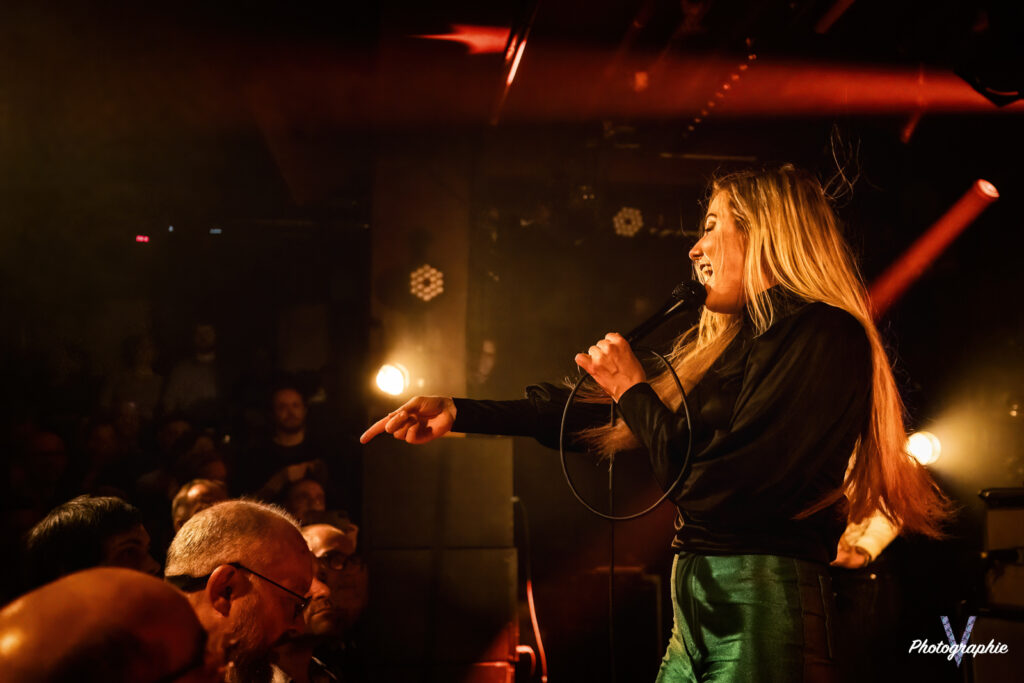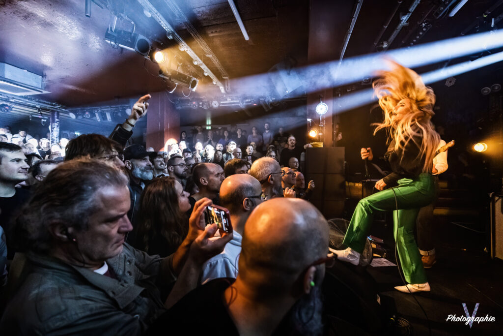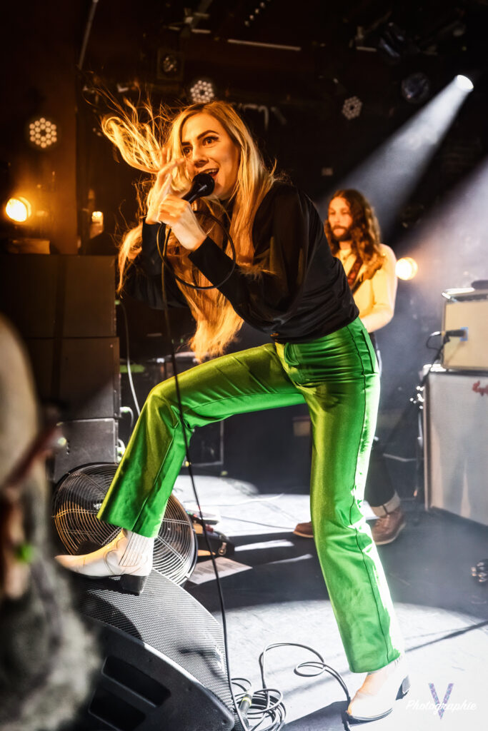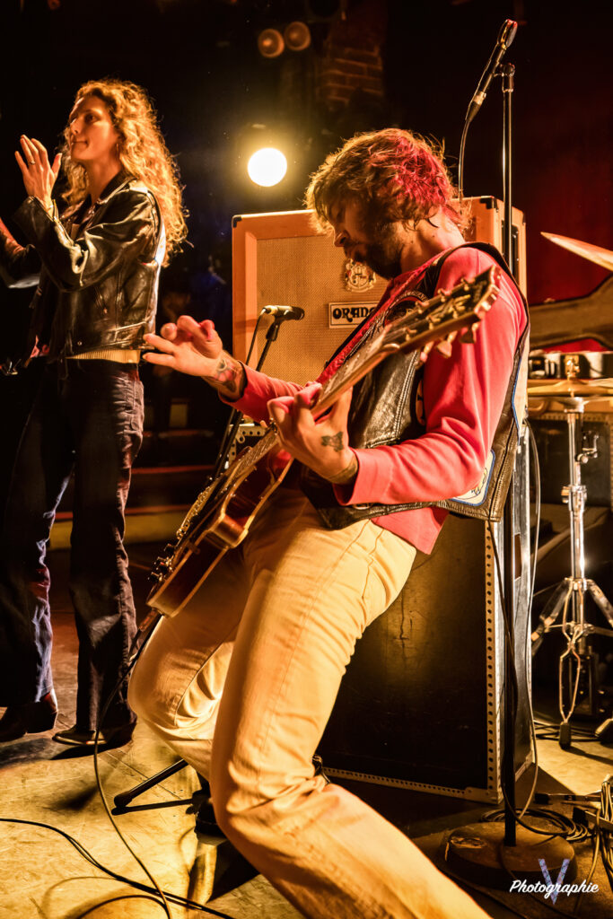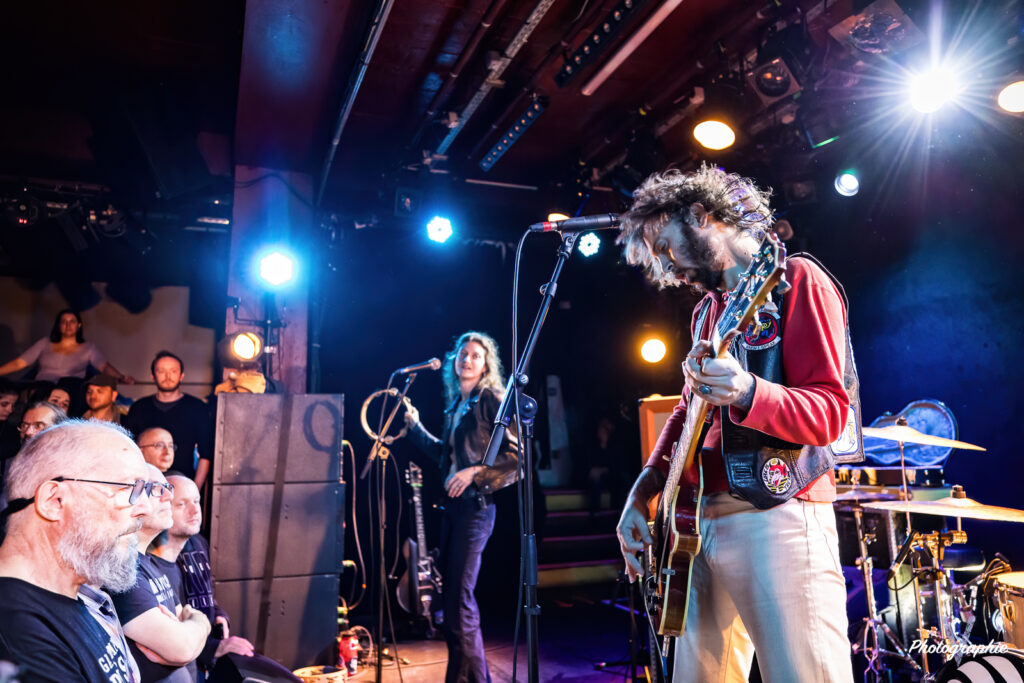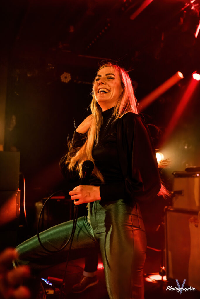 Une salle plus grande c’est ce qu’il aurait fallu à Elin Larrson des Blues Pills. Elle bouge tellement qu’elle a usé le parquet de la scène à force de passer d’un côté à l’autre de la salle. Le reste des musiciens étant assez statique, voire même transparent, le contraste était assez saisissant. On dirait une chanteuse avec des musiciens qui l’accompagne plutôt qu’un groupe visuellement. C’est une impression qu’on avait moins eu sur les grandes scènes, mais l’étroitesse des lieux et le fait que votre serviteur est au premier rang aura mis en exergue cette particularité du groupe. A ce propos, il faut savoir que lorsqu’on se place au premier rang d’un concert de Blues Pills, il ne faut pas être timide car Elin vient parfois chanter à deux centimètres de votre visage en vous regardant dans les yeux. C’est un moment assez intimidant même lorsqu’on est difficile à intimider. Et puis ça permet de sentir que malgré la dépense d’énergie Elin sent toujours bon même à la fin du concert. On veut bien sa marque de déo, c’est du genre efficace !