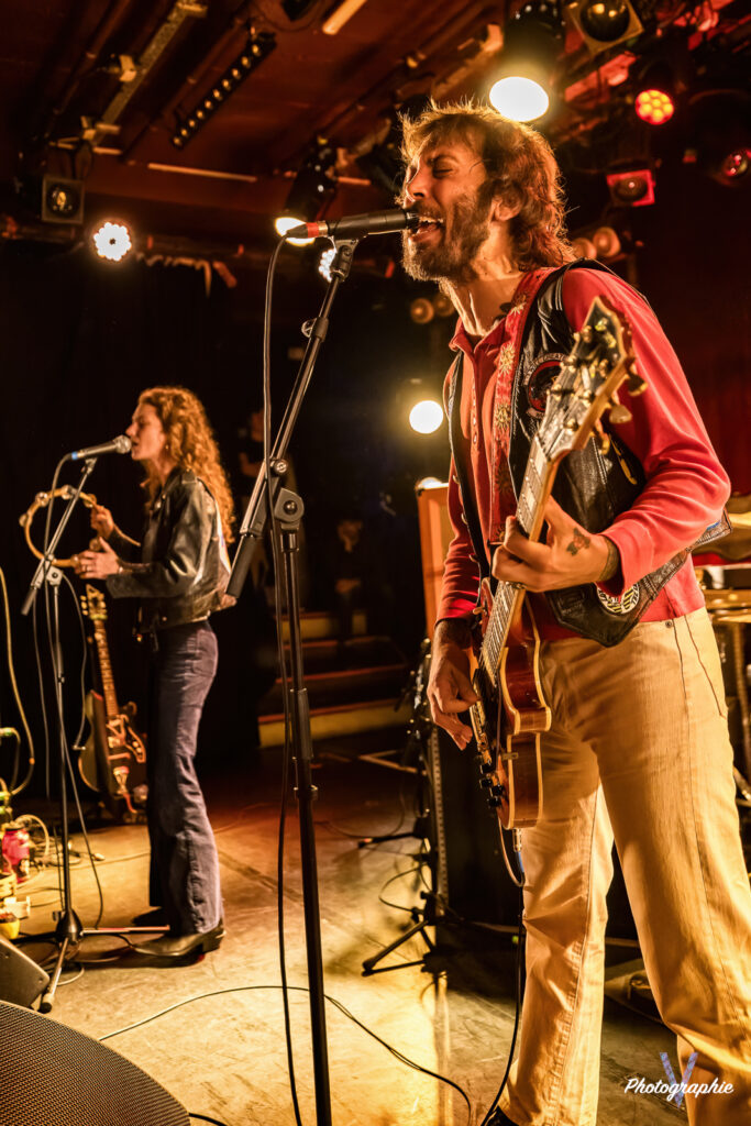 Plaisanterie mise à part, ce soir la Maroquinerie est pleine à craquer et le public est chaud bouillant ! On est quand même face à un genre de Blues Rock un peu énergique, et pourtant les attitudes Metal ne sont pas loin ! Elin headbangue, fait le signe de la bête avec ses doigts, pousse quelques cris rocailleux… du coup le public finit par pogoter. C’est quand même curieux de voir des gens pogoter sur des titres de Blues Rock. L’ambiance est donc à son comble et la setlist passe crème.