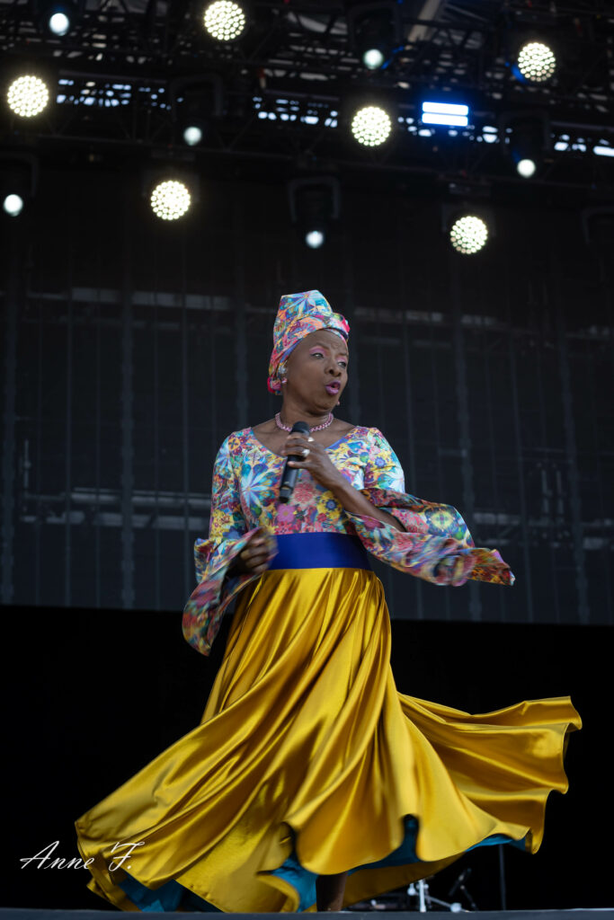 Retour sur la grande scène où la charismatique Angélique Kidjo et ses musiciens nous livrent un concert mélodique et humaniste, avec des sons afro-cubains aux influences multiples qui font danser la foule.