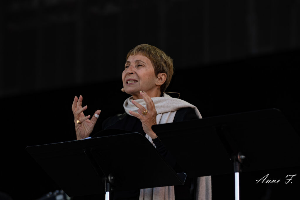 On commence avec le projet Jaurès, Le Bal Républicain sur la scène Angela Davis proposé par Les Grandes Bouches et l’orchestre Colonne avec au programme : un concert symphonique, de la poésie entre autres… le tout ponctué par des textes de Jean Jaurès déclamés par les acteurs  Ariane Ascaride et Patrick Bonnel devant une foule nombreuse.