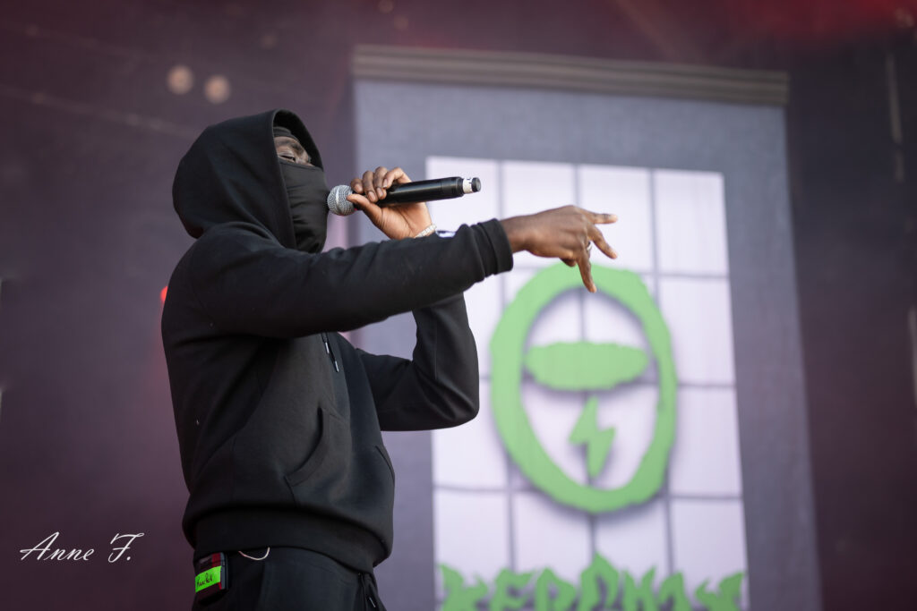 C’est ensuite un concert tout autant énergique qui nous attend sur la scène Joséphine Baker avec Kerchak et son flow rapide et rythmé. Très attendu par ses fans, le rappeur, caché derrière une cagoule, va mettre le feu à la scène pour un concert intense.