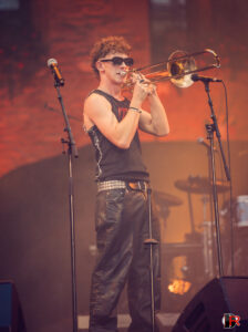 L’ouverture de cette dernière journée du festival est assurée par Ezza. Jeune rappeur et musicien caladois, sélectionné lors du tremplin du festival, il a proposé un concert qui mêle la technique en openmic et la mélancolie en concert, notamment accompagné par son trombone.