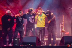 Il est temps de passer aux choses sérieuses, avec l’un des groupes les plus attendus de cette édition, en la personne de 47 Ter ! Pierre-Paul, Blaise et Lopes, les trois complices de Bailly (dont le nom fait référence à l’adresse de la salle des fêtes de leur quartier), ont su dès le départ imposer leur style original, ni tout à fait Rap ni complètement chanson, un mix inédit de mots et de mélodies avec un irrésistible arôme Pop. Face à un public acquis à sa cause, le groupe a déroulé une playlist composée de morceaux de leur dernier album Au bon endroit, mais aussi quelques-uns de leurs tubes comme Côte Ouest. On a senti le groupe, en très grande forme pour cette dernière date de leur tournée, n’hésitant pas à jouer avec le public, où à inviter sur scène une future mariée et sa famille pour danser un slow…