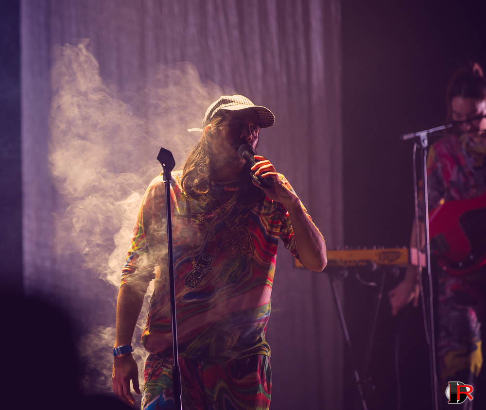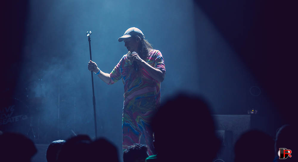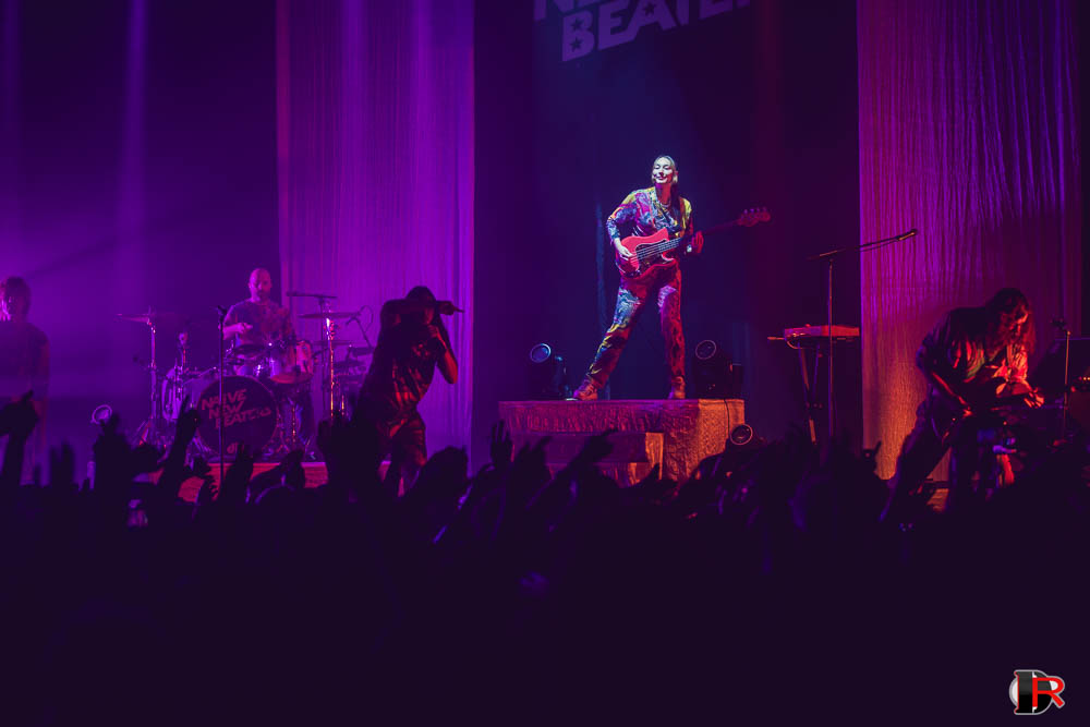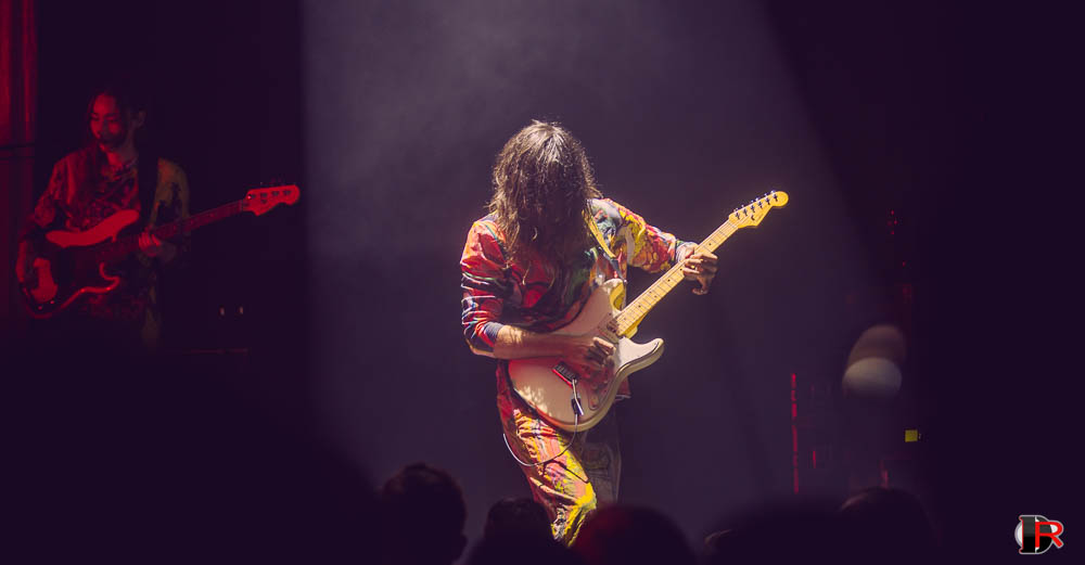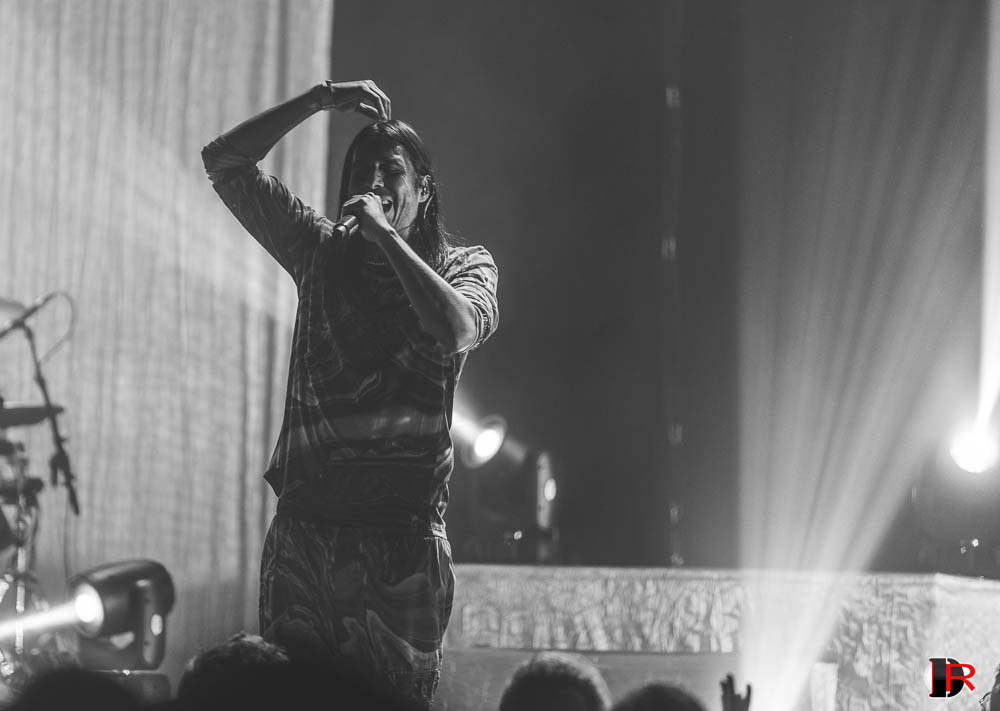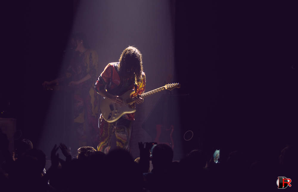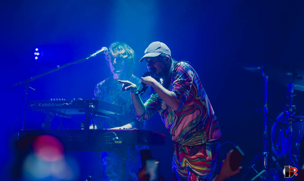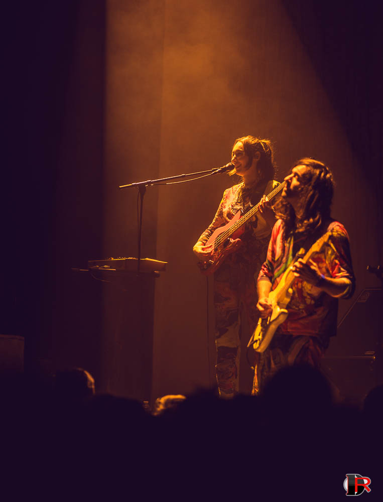 C’est à l’occasion de la sortie de leur dernier album FVTVRVM, que le groupe a fait escale dans la capitale des Gaules. Les 5 musiciens (le trio est accompagné par une bassiste et un batteur), habillés par une combinaison multicolore, ont évolué sur une scène à la décoration minimaliste, avec simplement le nom du groupe en led.