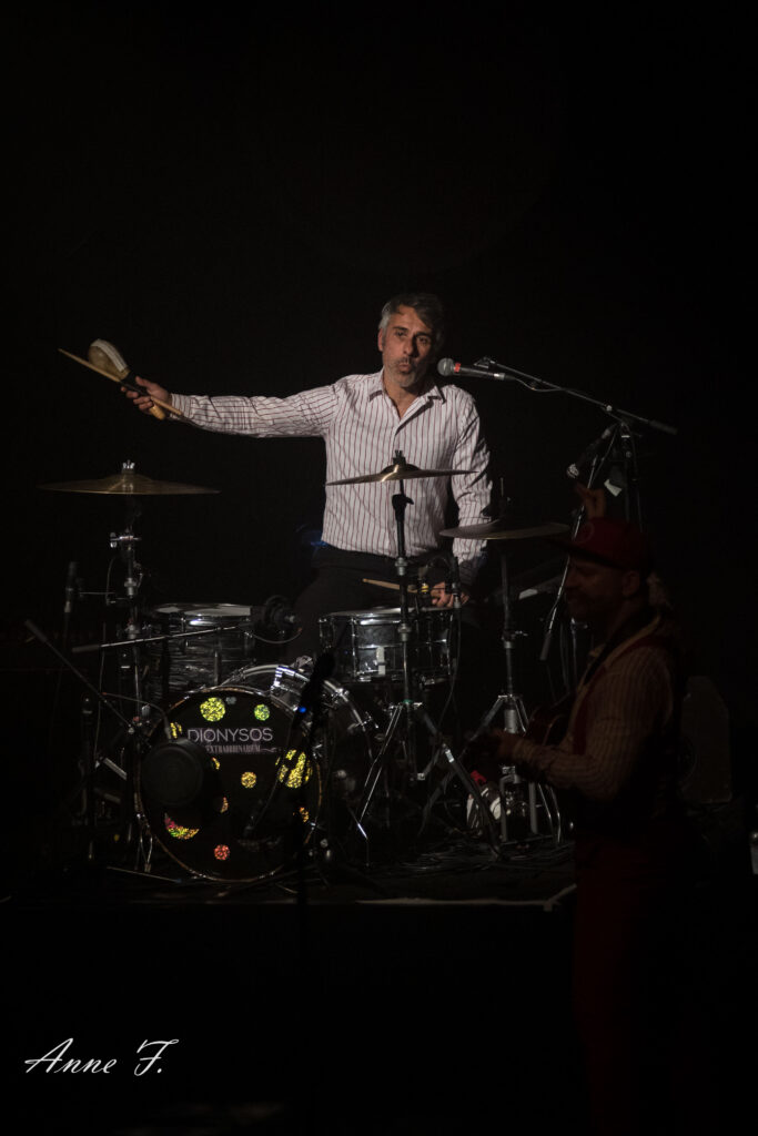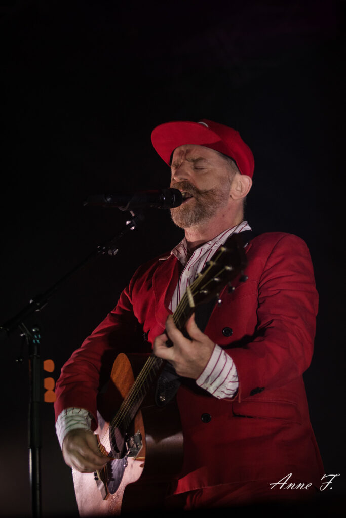 Durant deux heures, le groupe alterne entre moments très Rock et d’autres acoustiques et intimistes. Avec une énergie débordante, le chanteur saute et court sans cesse sur la scène. Et se jette dans la fosse pour slammer, accompagné par des personnes du public. Les premiers rangs sautent dans tous les sens et la foule connait les paroles par cœur. On pourra dire que ce soir, Dionysos a renversé le Charabia Festival !