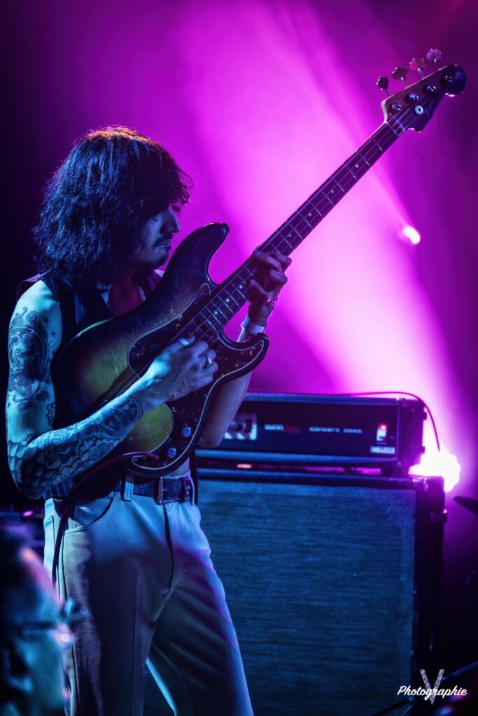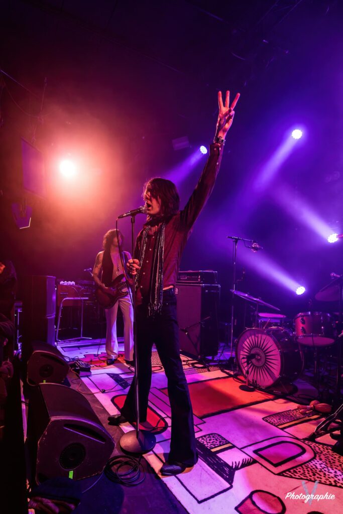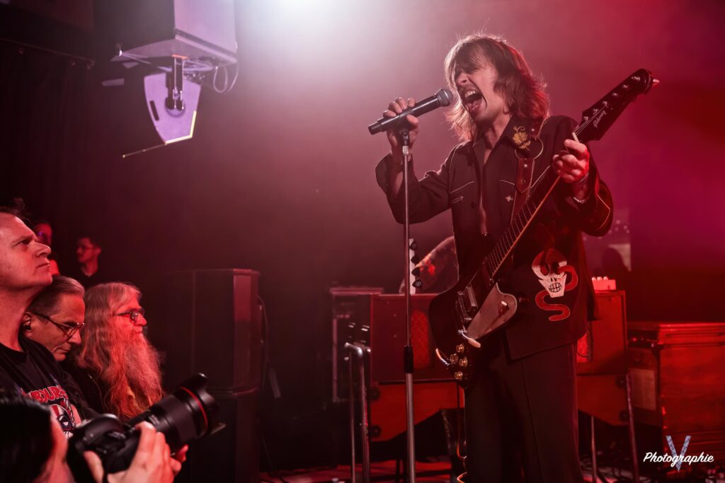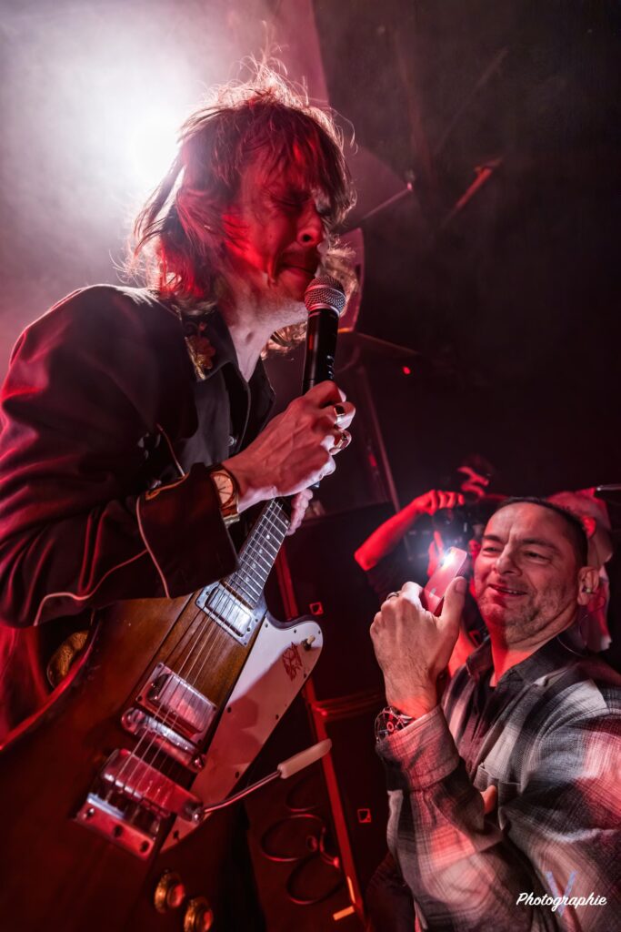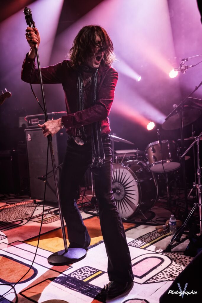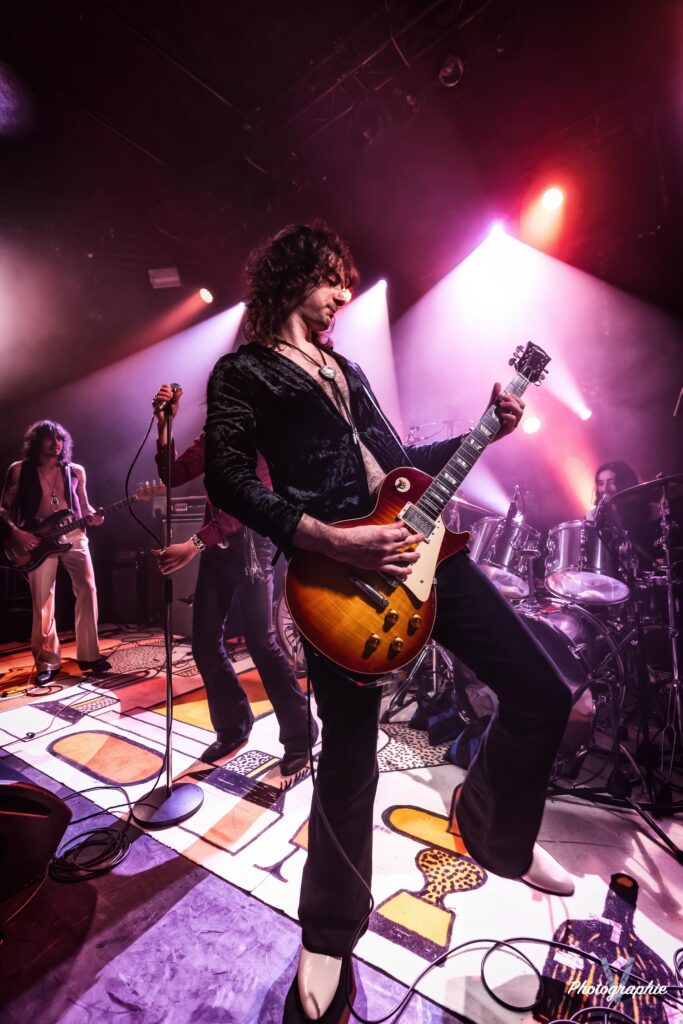 Mais ce sont les Français bien de chez nous de Tal Rasha qui ont la lourde tâche de lancer la soirée. Bien de chez nous, c’est quand même vite dit, le chanteur a quand même l’air plus anglais que français même s’il fait l’effort de passer d’une langue à l’autre sur certaines phrase, ça sent l’import ! Mais peu importe du moment qu’il a les compétence pour nous faire passer un bon moment, ce qui est le cas. Le groupe pratique un Rock très proche de celui d’un certain Led Zeppelin. On va retrouver des similitudes musicales, mais l’inspiration va se retrouver jusque dans le line up, les fringues, voire même les coupes de cheveux. Tal Rasha aurait pu faire un tribute, mais il a choisit de proposer des compositions et c’est tant mieux ! Le public déjà présent semble passer un bon moment, comme nous.