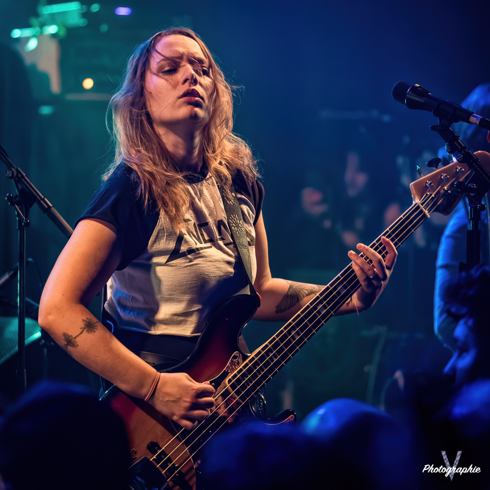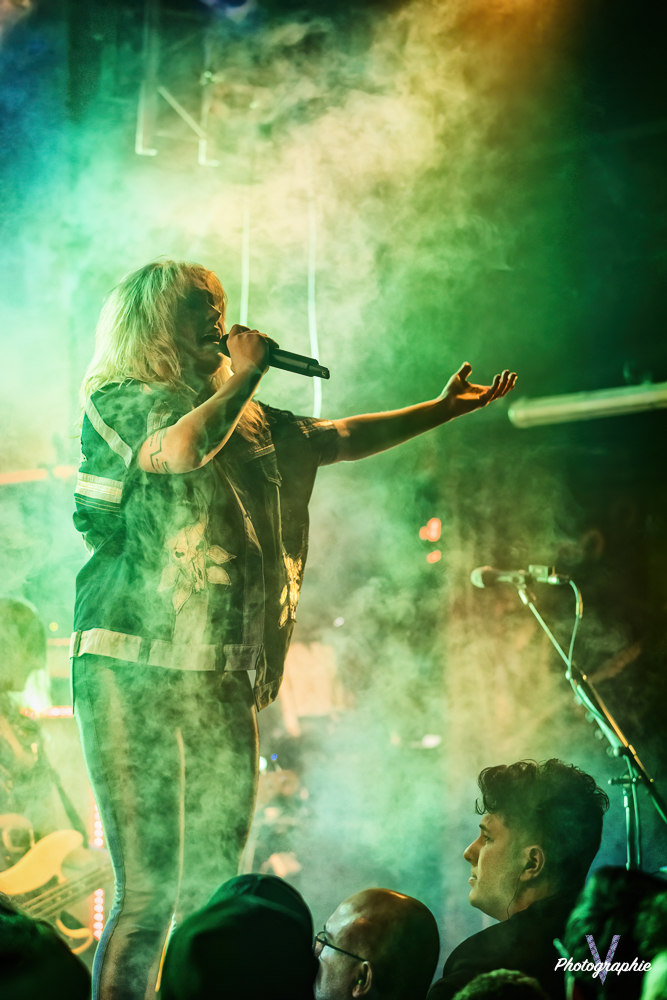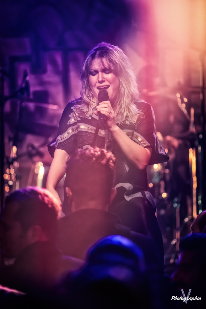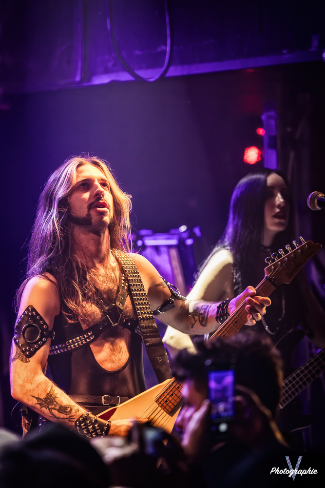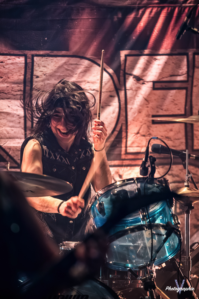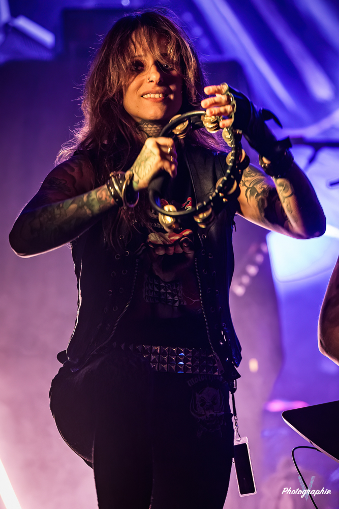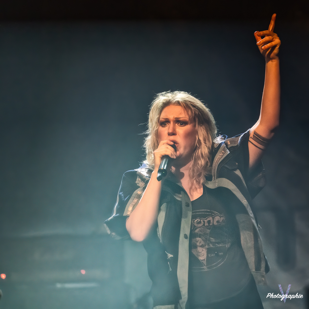 Les mamans vont mettre tout le monde d’accord dès les premières notes. Ce sont bien elles les reines du bal de ce soir. Des trois groupes c’est clairement le plus à l’aise sur scène. Pas de temps mort entre les titres, pas d’hésitation lorsque Linnéa s’adresse au public et des titres qui vont faire mouche à chaque fois. Pourtant on aurait pu avoir un petit doute car ce line up n’est pas si vieux. On se souvient du départ de Guernica qui avait entrainé ensuite le reste du groupe pour en former un nouveau. Filippa se retrouvant toute seule a réussi à recruter dare-dare les nouvelles recrues et elle a plutôt bien choisi parce qu’on a vraiment l’impression qu’elles se connaissent depuis des lustres. On ressent une vrai connivence entre elles sur scène et tout le monde paraît content d’être là. A ce propos, l’annonce de Joan à la batterie comme venant de Lorraine réveille chez le public la fibre patriotique. Elle nous fera un petit solo pour marquer le coup démontrant son savoir-faire. Linnéa Vikström (ex Therion, ex Kamelot) ira prendre un petit bain de foule en allant chanter un titre depuis le bar de Petit Bain avec une bière à la main. Nous aurons également droit à un un titre semi-acoustique pour calmer le jeu et donner un peu de relief au set.