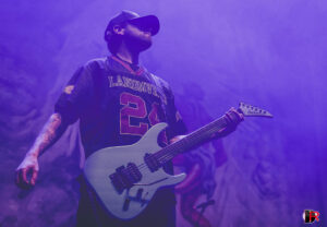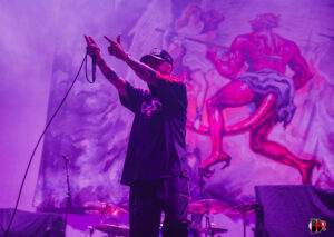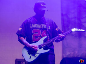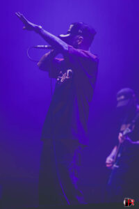 Pour ouvrir cette soirée, c’est le groupe britannique, Guilt Trip qui a été chargé de chauffer la salle. Le groupe de Manchester à l’énergie débordante, prend d’assaut la scène. Avec un backdrop imposant arborant l’art de leur dernier EP Severance, le groupe annonce la couleur en proposant du Metal Hardcore, teinté de Rap, porté par quatre musiciens déchaînés et une bassiste. Les premiers circle pit se forment, et le public a l’air prêt pour la suite de la soirée…