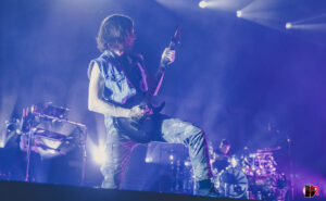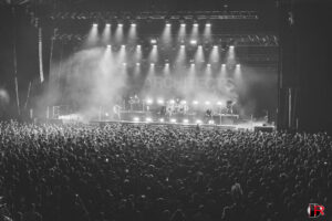 Accompagné par ses 5 musiciens (Dan Searle à la batterie, Alex Edwin Dean à la basse, Adam Christianson et Martyn Evans aux guitares et Ryan Burnett aux claviers), ils ont proposé un live de très bonne augure, plein d’énergie ! On ne compte plus les circle pit, slam et autres moshs qui s’enchaînent dans le public. A noter que malgré sa blessure lors du concert de Lille, le chanteur a paru en excellente forme, n’hésitant pas à donner de sa personne.