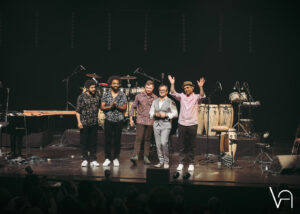 Le décor est planté, la salle copieusement garnie, ne reste donc plus qu’à déguster. Accompagné par des musiciens absolument virtuoses, Joachim Horsley nous offre une proposition musicale qui va crescendo. Très vite, on se surprend à se déhancher sur des musiques plutôt susceptibles d’être écoutées « religieusement » et dans un final chaleureux et enlevé, la salle se lève, danse et chante au rythme des sonorités endiablées!