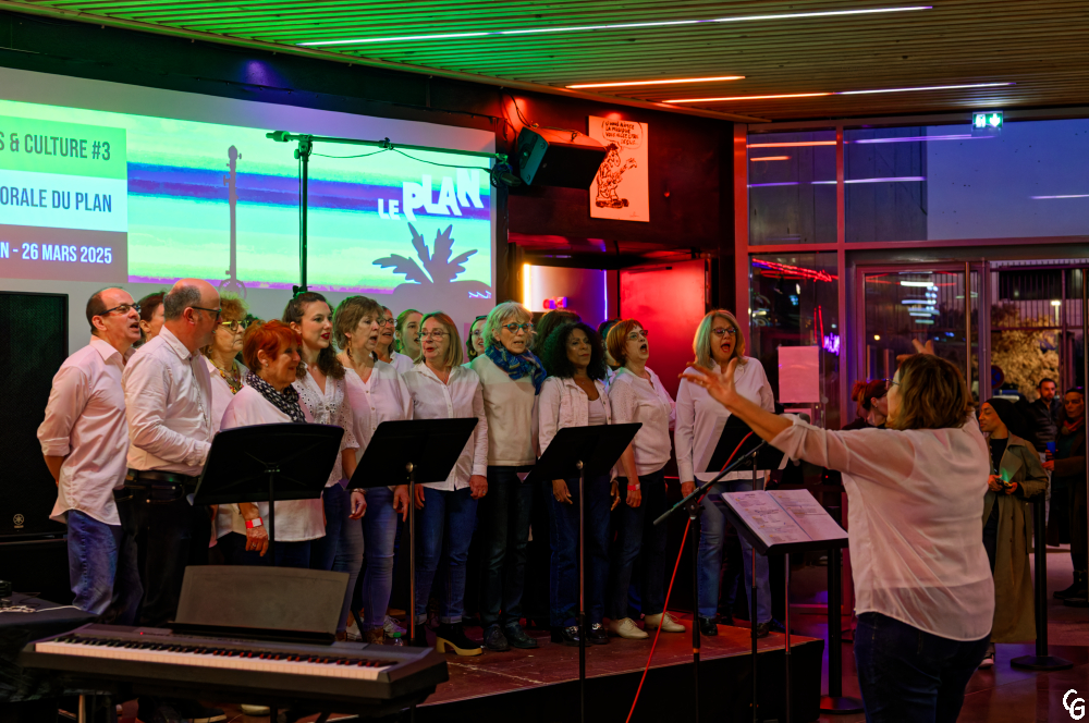 Charlie Gyal et la chorale du plan se sont succédées dans le hall de la Salle de Musiques Actuelles et ont ambiancé les spectateurs au début de la soirée, pendant les courtes pauses et en fin de soirée.
