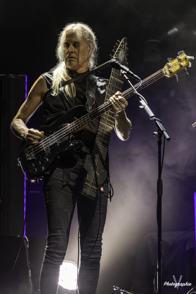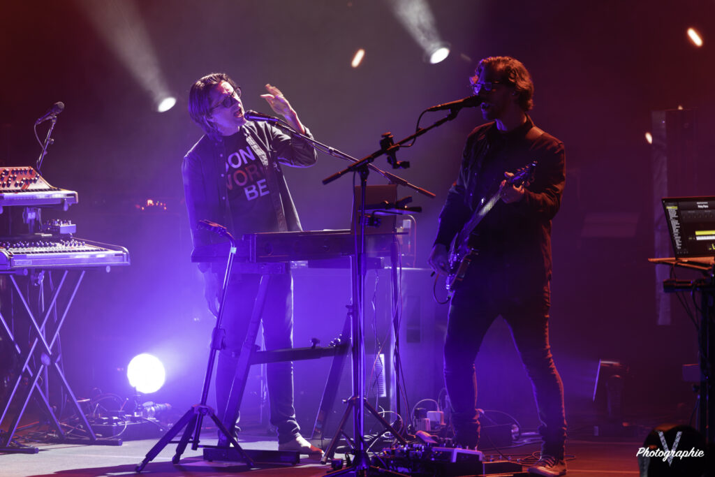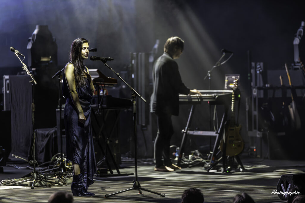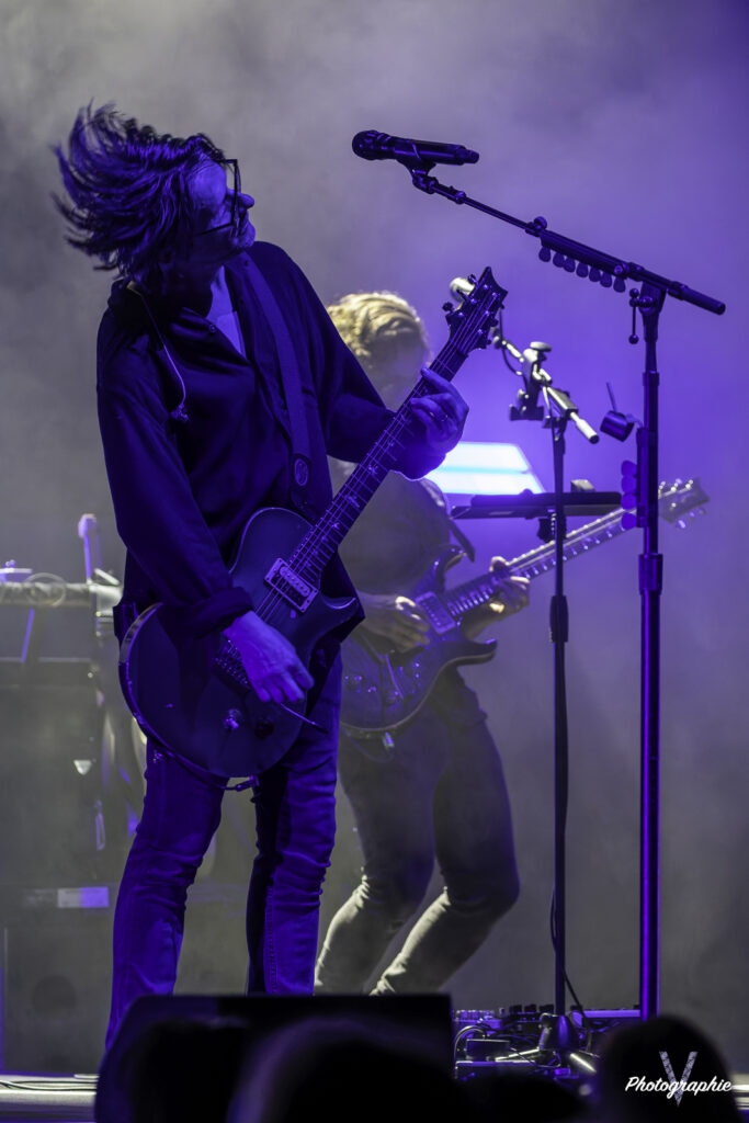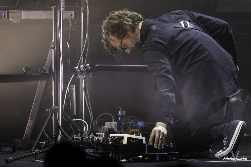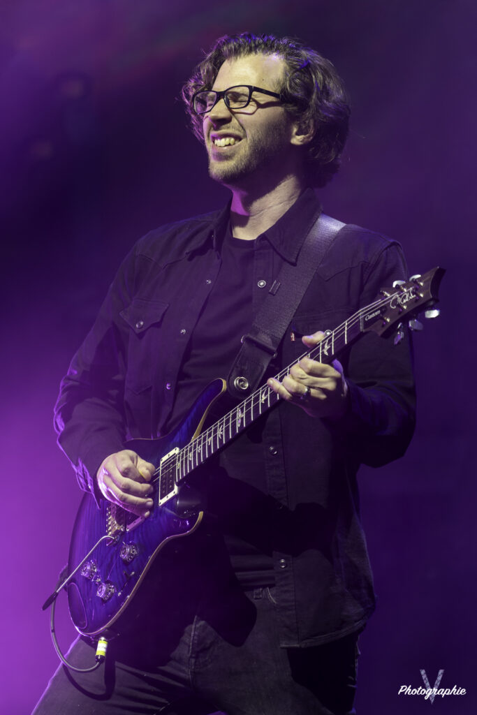 A la reprise pour la seconde partie du spectacle Steven plein d’auto-dérision se moque du côté élitiste de la musique qu’il joue ce soir. Il demande dans un premier temps qui est venu comme accompagnant et n’est pas du tout fan. Quelques mains timides se lèvent et il se veut rassurant en annonçant que le prochain titre ne dure pas plus de 4mn. Il se réclame autant influencé par Pink Floyd que par Prince. Tout au long des deux sets, Steven Wilson va passer de la guitare acoustique à la guitare électrique puis délaisser les six cordes pour s’accorder une récréation sur divers claviers et machines électroniques. Les transitions sont mégas soignées. Mention spéciale au guitariste soliste Randy McStine qui possède un touché incroyable et nous régalera de quelques envolées sans jamais tomber dans l’outrance. Craig Blundell à la batterie n’est pas manchot non plus, son touché oscillant entre pure Rock et Jazz colle parfaitement. Au début du second set, Rotem Wilson, la femme de Steven, donne de la voix avant de repartir en toute discrétion.