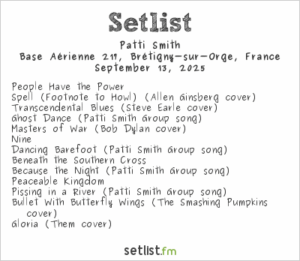 Dernier passage en 2012, ce sont donc les retrouvailles avec la Fête et cette fois-ci en quartet, avec son fils à la guitare. Elle commence son set par un des titres les plus connus People have the power, puis lit un Poème d’Allen Ginsberg en hommage à Gaza et va ensuite revisiter son répertoire Punk Rock avec quelques reprises reprise des Smashing Pumpkins et Bob Dylan. Un moment suspendu dans le temps devant une immense foule, de tous âges, qui l’écoute avec passion et émotion, sous la pluie.