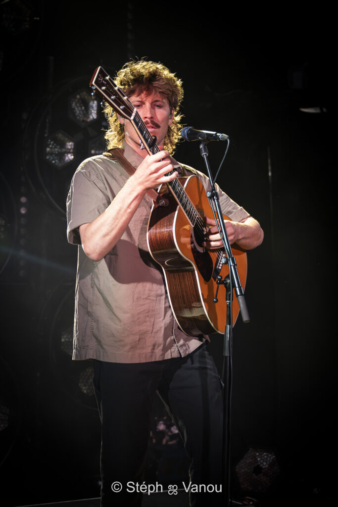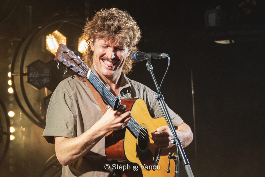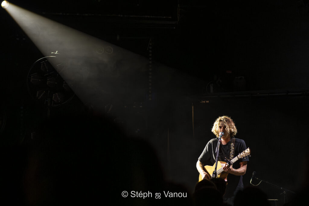 C’est sur la scène du Trabendo à Paris que débutait la soirée avec une première partie du jeune artiste australien Ben Morgan, émergeant sur la scène internationale. Il faisait ses premiers pas en 2022 chantant dans les rues de la côte Est. Il nous berçait par son timbre de voix chaleureux et sa grande tessiture vocale dans un silence admiratif. Il interprétait ses chansons mélancoliques et personnelles avec sa guitare et son saxophone; c’était une véritable échappée. Avant de quitter la scène, Ben nous partageait son envie de revenir en France afin d’y retrouver son public. Et ce n’est pas pour nous déplaire.