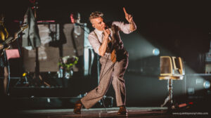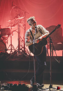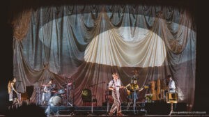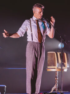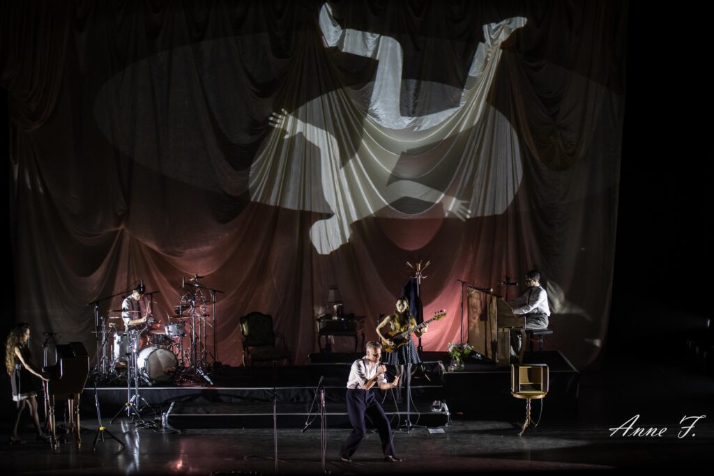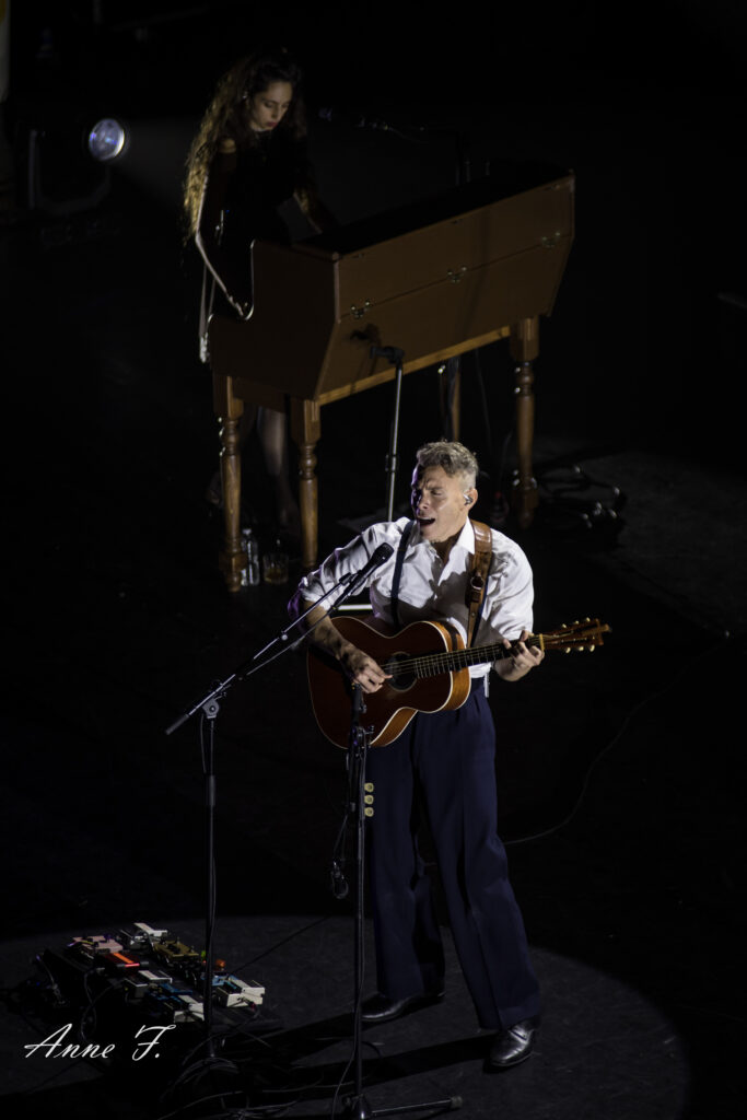 Sur scène – accompagné de Maayan Linik au clavier et à la guitare, Omri Ber aux claviers, Ofer Levi à la batterie, et de la française Julia Richard à la basse – Asaf Avidan nous reçoit presque chez lui : une vieille radio des années 30, un fauteuil, une lampe, une petite table avec une bouteille de whiskey, un porte-manteau. Quelques objets seulement, mais assez pour installer une intimité immédiate — comme un salon scénique qui fait basculer le concert vers le théâtre. Entre élégance rock, assurance bohème et fragilité assumée, Avidan impose une présence qui capte instantanément. Et bien sûr, il y a cette voix — singulière, vertigineuse, fragile et puissante à la fois, capable de ruptures instantanées — qui reste, plus que jamais, sa signature inimitable.