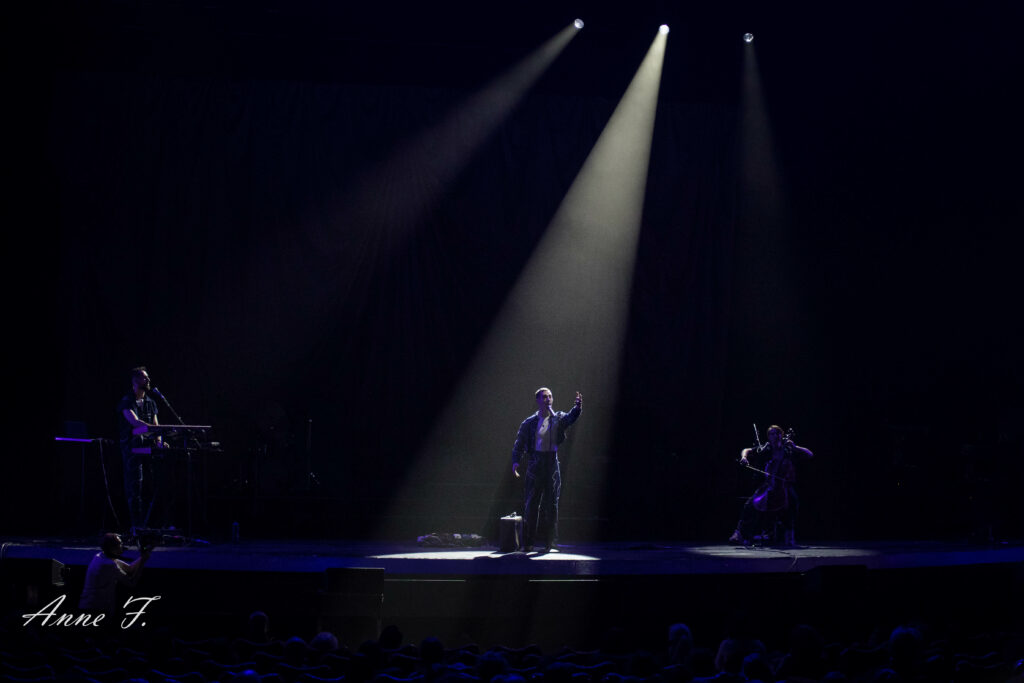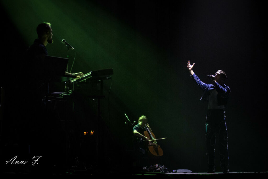A Paris, dans l’écrin du Grand Rex et de sa grande salle dédiée principalement au cinéma mais qui accueille aussi des spectacles, tout rappelle le thème cinématographique de l’album. Le décor de la salle, son arche colorée et son ciel étoilé plongent tout de suite le public dans l’ambiance. Et ce sera à Lémofil d’assurer la première partie ces deux soirées. Entre Rap, Slam et Chanson française, il raconte des histoires avec sincérité et émotion, accompagné de ses deux musiciens, au piano et au violoncelle. D’une ambiance feutrée au début du set, on passe au final à des morceaux plus rythmés. Un moment intense tout en poésie, parfait pour captiver le public déjà arrivé en nombre pour Asaf Avidan.