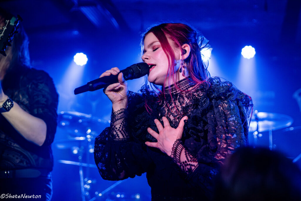 Blackbriar, c’est une douce perle sur un océan d’obscurité. Venue inaugurer la sortie récente de leur dernier album A thousand Little Deaths, la prestation est à saluer dans toute sa globalité. La voix envoûtante de Zora sonne à merveille en live; aussi bien que sur les versions studio, à se demander si la dame possède des pouvoirs divins pour nous en mettre autant plein la vue. Le show, bien que contenu sur une toute petite scène, fonctionne très bien et les musiciens pleins d’entrain font largement partie de l’action avec des guitares bien présentes, un synthé qui a le droit à ses petits moments de gloire et un bassiste qui nous sort carrément sa contrebasse électrique. On voit que le groupe s’éclate en live avec une vraie bonne ambiance et entente entre les membres. Côté setlist, le groupe nous fait part de la quasi intégralité de l’album A thousand Little Deaths, agrémenté de leurs titres phares dont Selkie, Arms of the Ocean ou encore Until Eternity, pour le plus grand bonheur des fans. Le public est largement conquis, et l’on voit des gorges chanter à plein poumons dans les premiers rangs et plus en recul également. Le groupe appelle régulièrement aux interactions et les rapprochement de la chanteuse avec son public en font des moments forts en émotions. L’intensité n’aura fait que monter au cours de la soirée avec l’enchaînement continu des titres. C’est sans aucun doute l’une des meilleures prestations à voir cette année !