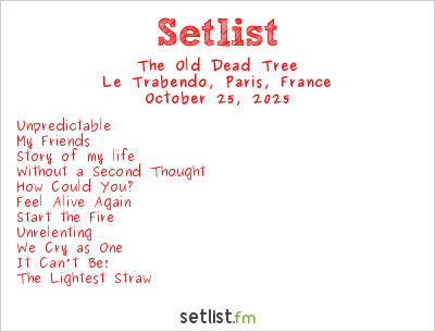 Alors qu’à la base c’était la raison de notre présence à cette petite sauterie, le groupe est déjà en scène à notre arrivée. Heureusement ils ont à peine entamé leur set. The Old Dead Tree va tourner sur ses anciens succès tout en nous présentant une partie de ce qui constitue la relève et il faut avouer que c’est prometteur. Le Trabendo n’est pas une salle réputée pour ses lights et la soirée ne fera pas exception. Grand bien a pris au groupe d’apporter quelques veilleuses pour qu’on puisse prendre nos photos. C’est toujours sympathique d’assister à un concert de TODT. Déjà parce que ça rappelle des souvenirs d’une époque plutôt sympa (en tout cas plus que l’actuelle, oui ça fait vieux cons, mais vous verrez ça vous arrivera aussi) et puis ça vieillit plutôt bien tout ça. Dans le public, c’est plus mature, plus droit, plus grave. Cette reformation fonctionne toujours aussi bien, même si ça fait toujours bizarre de voir Manu sans guitare.